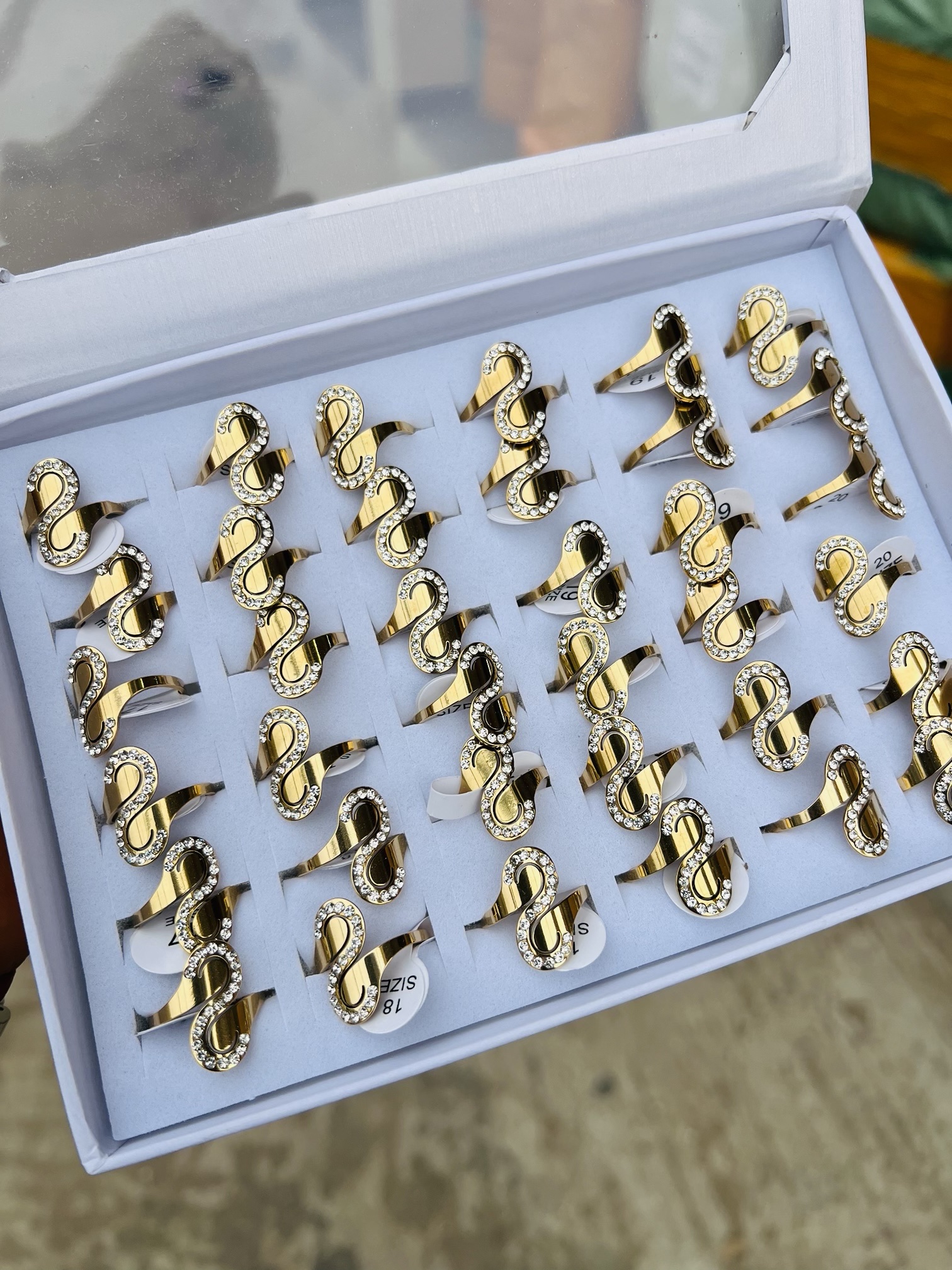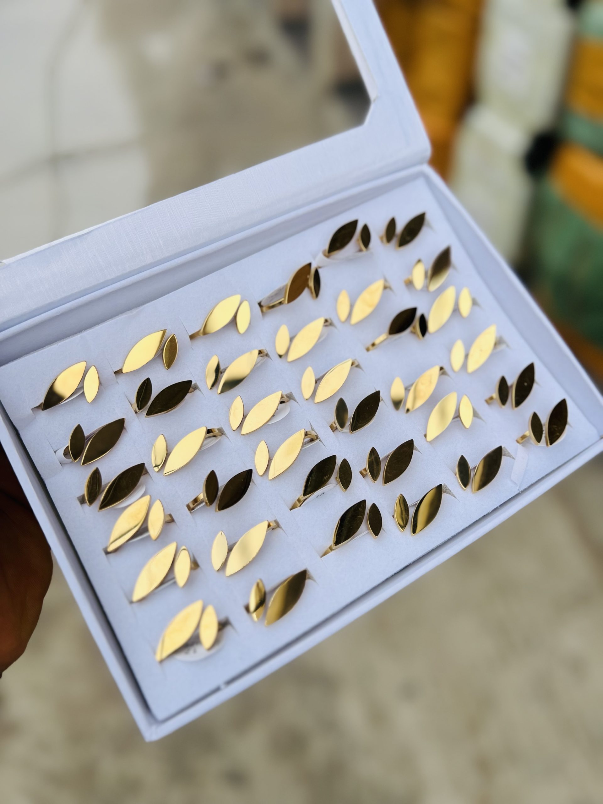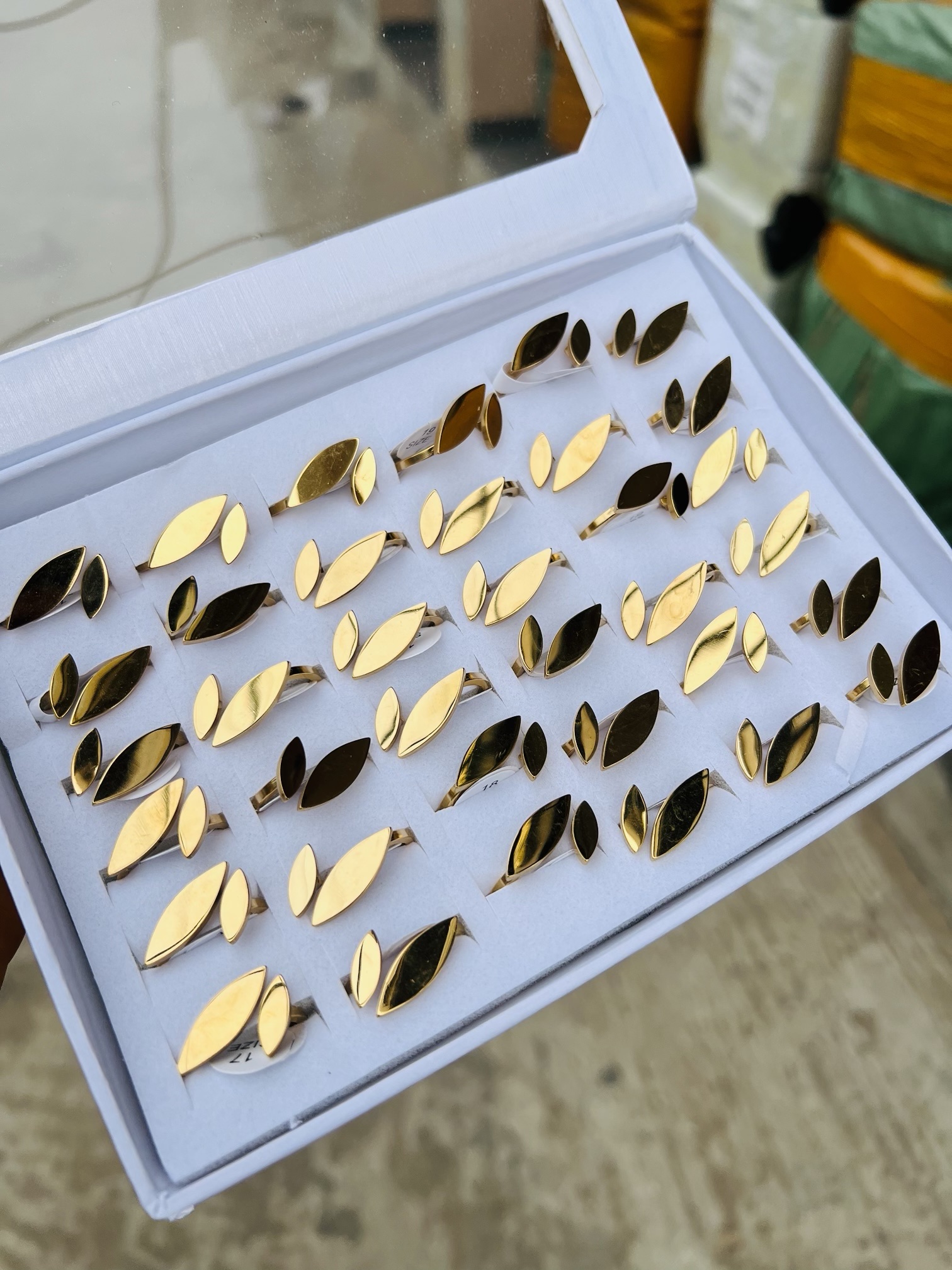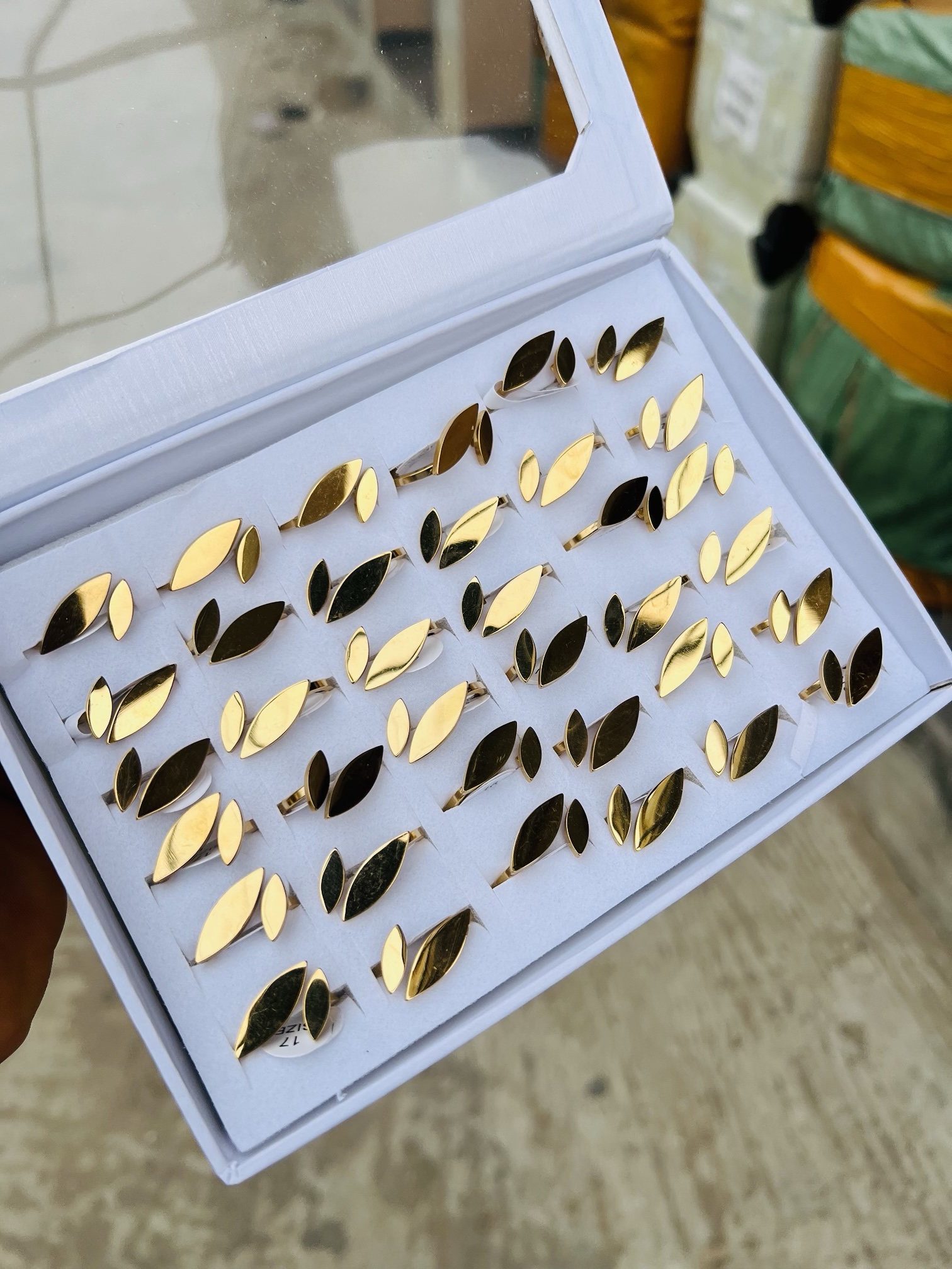 Previous Product Next Product A box of stainless steel rings (36pcs) 015 ₦17,099 Category: Rings 5 in stock A box of stainless steel rings (36pcs) 015 quantity Buy Now Reviews (0) Reviews There are no reviews yet. Be the first to review “A box of stainless steel rings (36pcs) 015” Cancel replyYour email address will not be published. Required fields are marked *Your rating * Rate… Perfect Good Average Not that bad Very poor Your review *Name * Email * Save my name, email, and website in this browser for the next time I comment. Opens in a new window Tweet This Product Opens in a new window Share on Facebook Opens in a new window Pin This Product Opens in a new window Mail This Product Related products Quick View Quick View Moissanite Jewelries, RingsQueen Elizabeth Moissanite Ring ₦70,000 Buy Now Quick View Quick View RingsWedding bands 006 size 10 ₦4,599 Buy Now Quick View Out of Stock Quick View RingsStainless steel ring size 9 ₦2,000 Read more