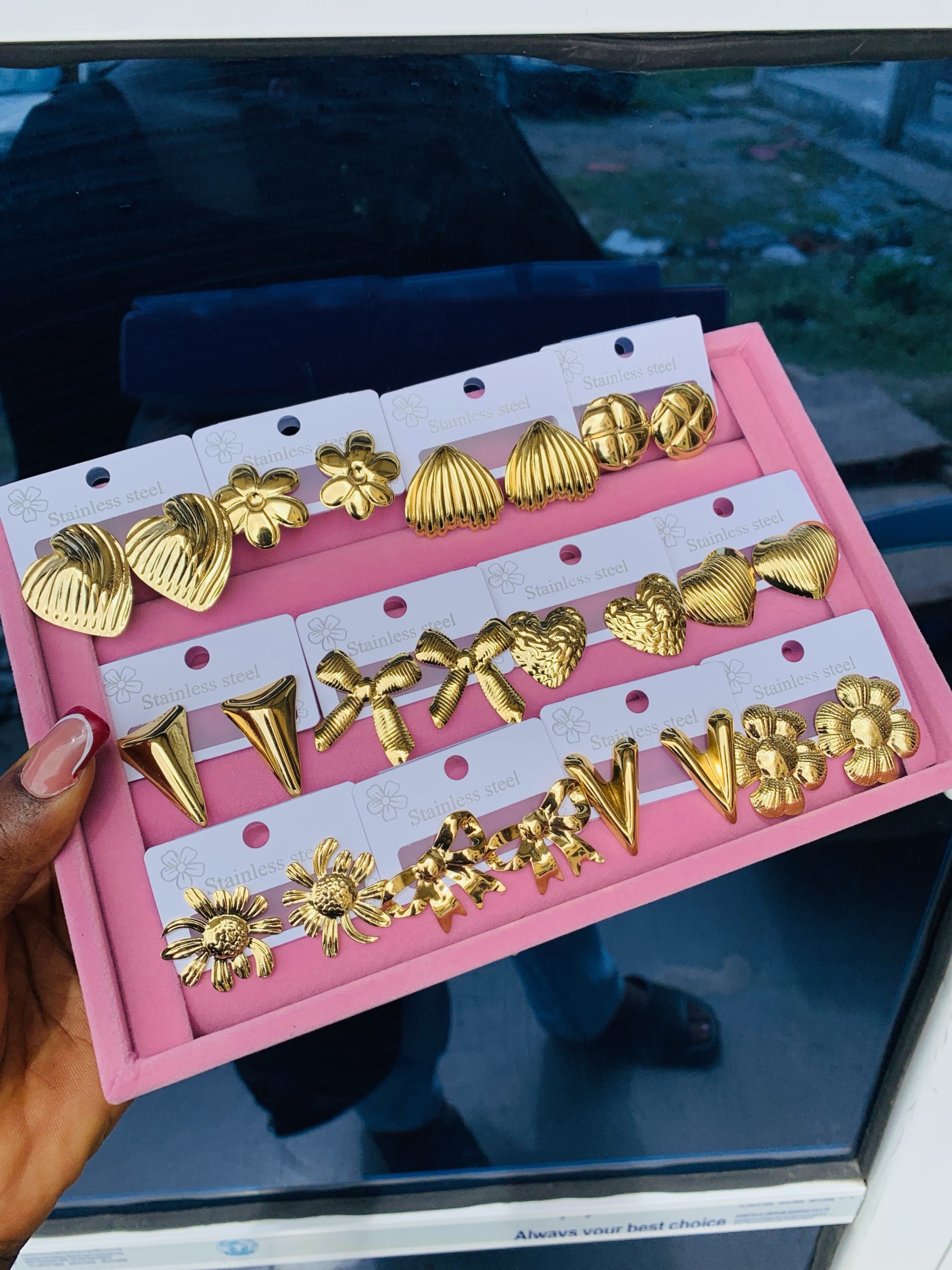 Previous Product Next Product A dozen of gold stainless steel earrings 001 ₦10,000 Category: Earrings 20 in stock A dozen of gold stainless steel earrings 001 quantity Buy Now Reviews (0) Reviews There are no reviews yet. Be the first to review “A dozen of gold stainless steel earrings 001” Cancel replyYour email address will not be published. Required fields are marked *Your rating * Rate… Perfect Good Average Not that bad Very poor Your review *Name * Email * Save my name, email, and website in this browser for the next time I comment. Opens in a new window Tweet This Product Opens in a new window Share on Facebook Opens in a new window Pin This Product Opens in a new window Mail This Product Related products Quick View Quick View Earrings, NecklacesStainless steel gold set 004 ₦1,699 Buy Now Quick View Out of Stock Quick View EarringsKorean statement earring 026 ₦1,500 Read more Quick View Quick View Earrings, NecklacesCherry dainty necklace 003 ₦1,700 Buy Now