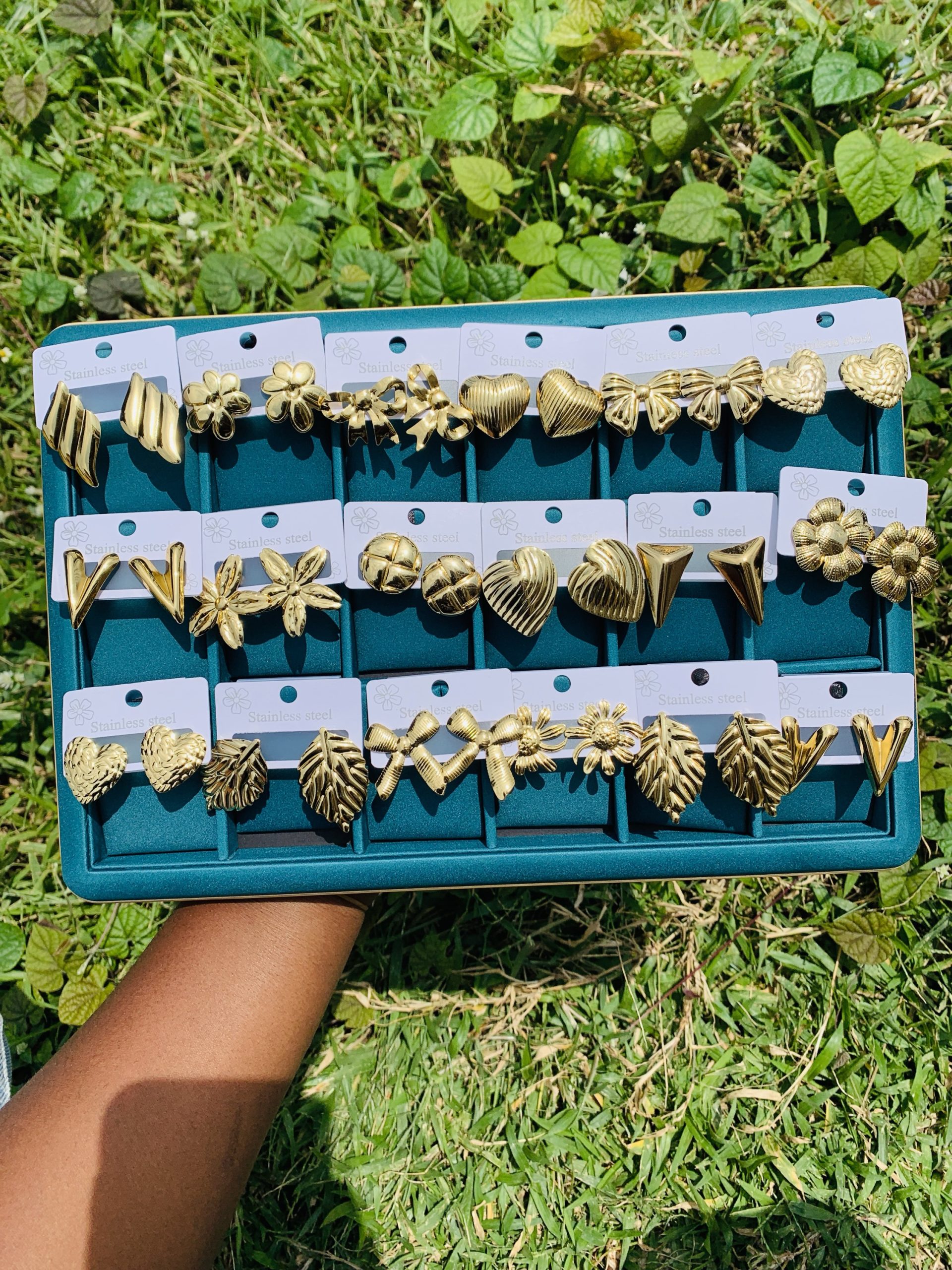 Previous Product Next Product A Dozen of gold steel earrings (12pcs) ₦12,000 Category: Earrings 10 in stock A Dozen of gold steel earrings (12pcs) quantity Buy Now Description Reviews (0) Description Would be mixed for you Reviews There are no reviews yet. Be the first to review “A Dozen of gold steel earrings (12pcs)” Cancel replyYour email address will not be published. Required fields are marked *Your rating * Rate… Perfect Good Average Not that bad Very poor Your review *Name * Email * Save my name, email, and website in this browser for the next time I comment. Opens in a new window Tweet This Product Opens in a new window Share on Facebook Opens in a new window Pin This Product Opens in a new window Mail This Product Related products Quick View Out of Stock Quick View EarringsStainless steel earrings 009 ₦1,000 Read more Quick View Quick View EarringsKorean statement earring 055 ₦1,500 Buy Now Quick View Quick View Earrings, NecklacesStainless steel gold set 002 ₦1,699 Buy Now