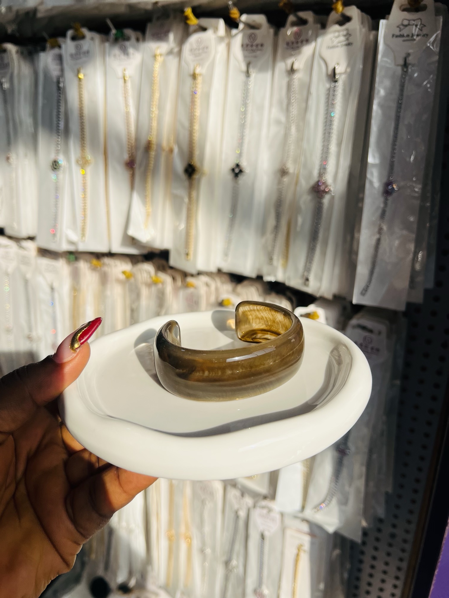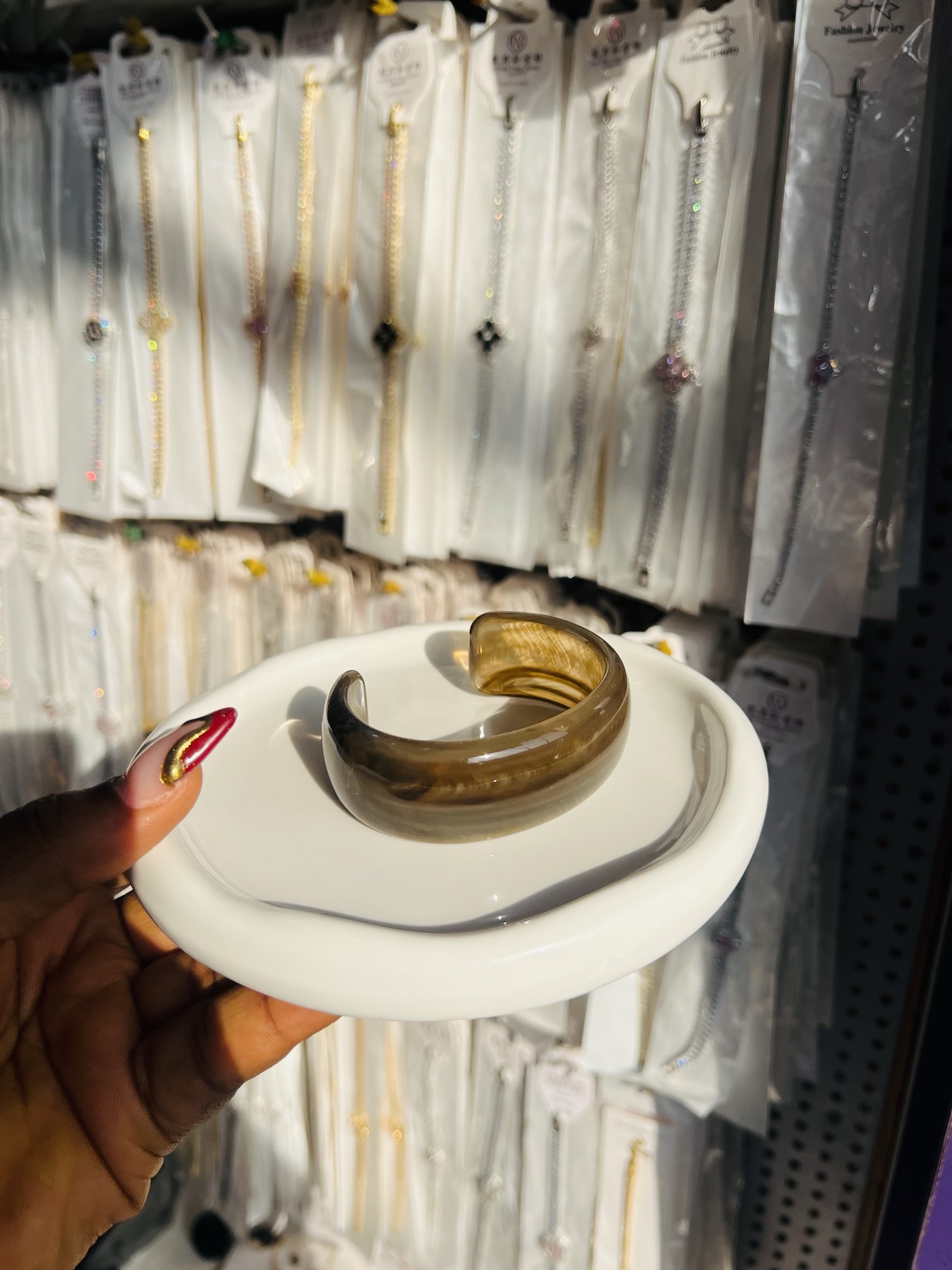 Previous Product Next Product Acrylic chunky bangle 004 ₦1,399 Category: Bracelets Out of stock Reviews (0) Reviews There are no reviews yet. Be the first to review “Acrylic chunky bangle 004” Cancel replyYour email address will not be published. Required fields are marked *Your rating * Rate… Perfect Good Average Not that bad Very poor Your review *Name * Email * Save my name, email, and website in this browser for the next time I comment. Opens in a new window Tweet This Product Opens in a new window Share on Facebook Opens in a new window Pin This Product Opens in a new window Mail This Product Related products Quick View Quick View Moissanite Jewelries, Bracelets10 Circular Moissanite bracelet ₦45,999 Buy Now Quick View Out of Stock Quick View Bracelets, Earrings, NecklacesMD CHORDED OWAMBE SET ₦12,500 Read more Quick View Quick View Bracelets, NecklacesFashion arm cuff 004 ₦1,599 Buy Now