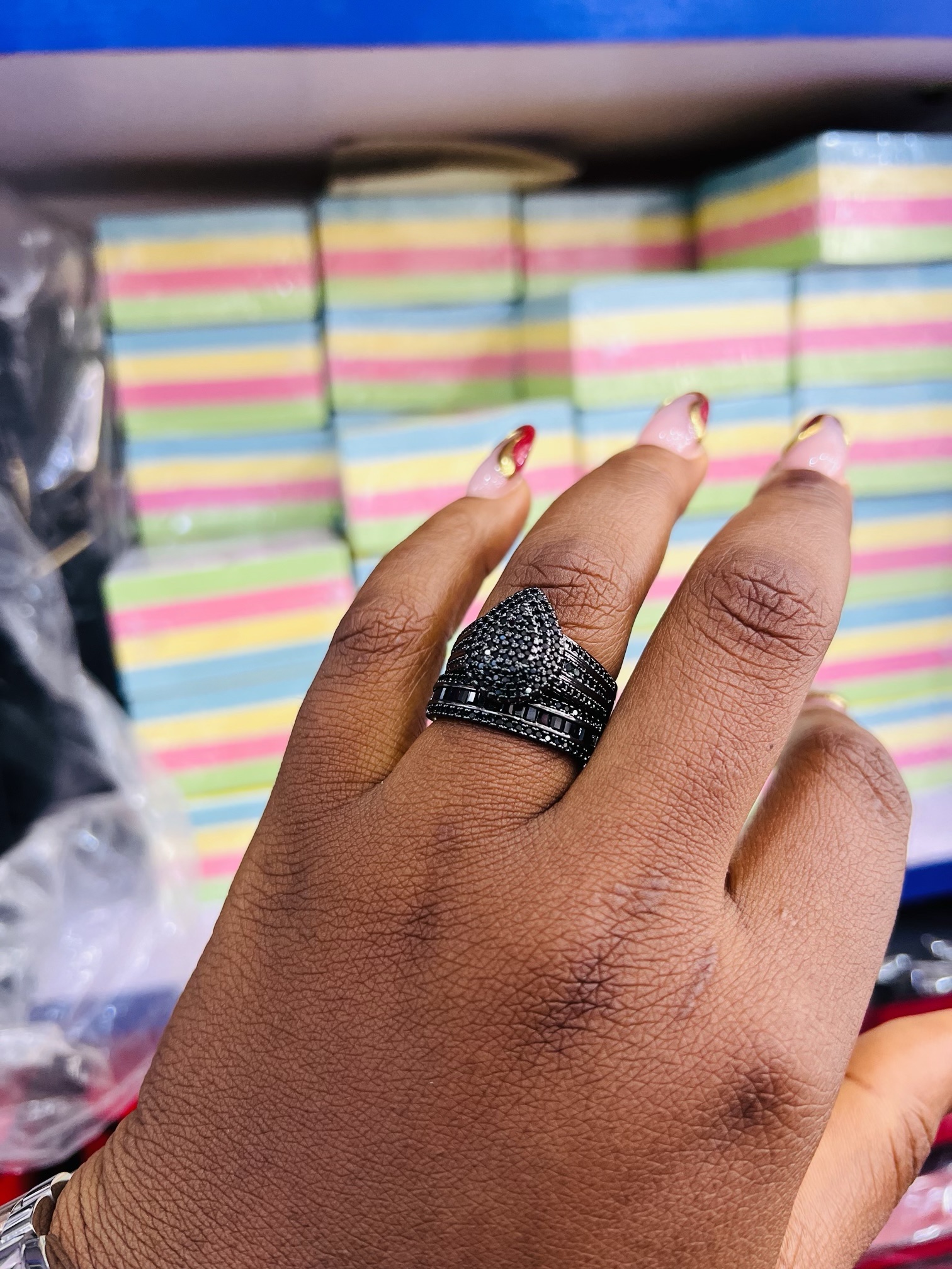 Previous Product Next Product Black wedding ring size 8 ₦13,500 Category: Rings 5 in stock Black wedding ring size 8 quantity Buy Now Reviews (0) Reviews There are no reviews yet. Be the first to review “Black wedding ring size 8” Cancel replyYour email address will not be published. Required fields are marked *Your rating * Rate… Perfect Good Average Not that bad Very poor Your review *Name * Email * Save my name, email, and website in this browser for the next time I comment. Opens in a new window Tweet This Product Opens in a new window Share on Facebook Opens in a new window Pin This Product Opens in a new window Mail This Product Related products Quick View Quick View RingsWild cut oval wedding ring size 10 ₦10,999 Buy Now Quick View Quick View RingsWedding bands 009 size 10 ₦4,599 Buy Now Quick View Quick View RingsXuping ring 010 ₦5,599 Buy Now