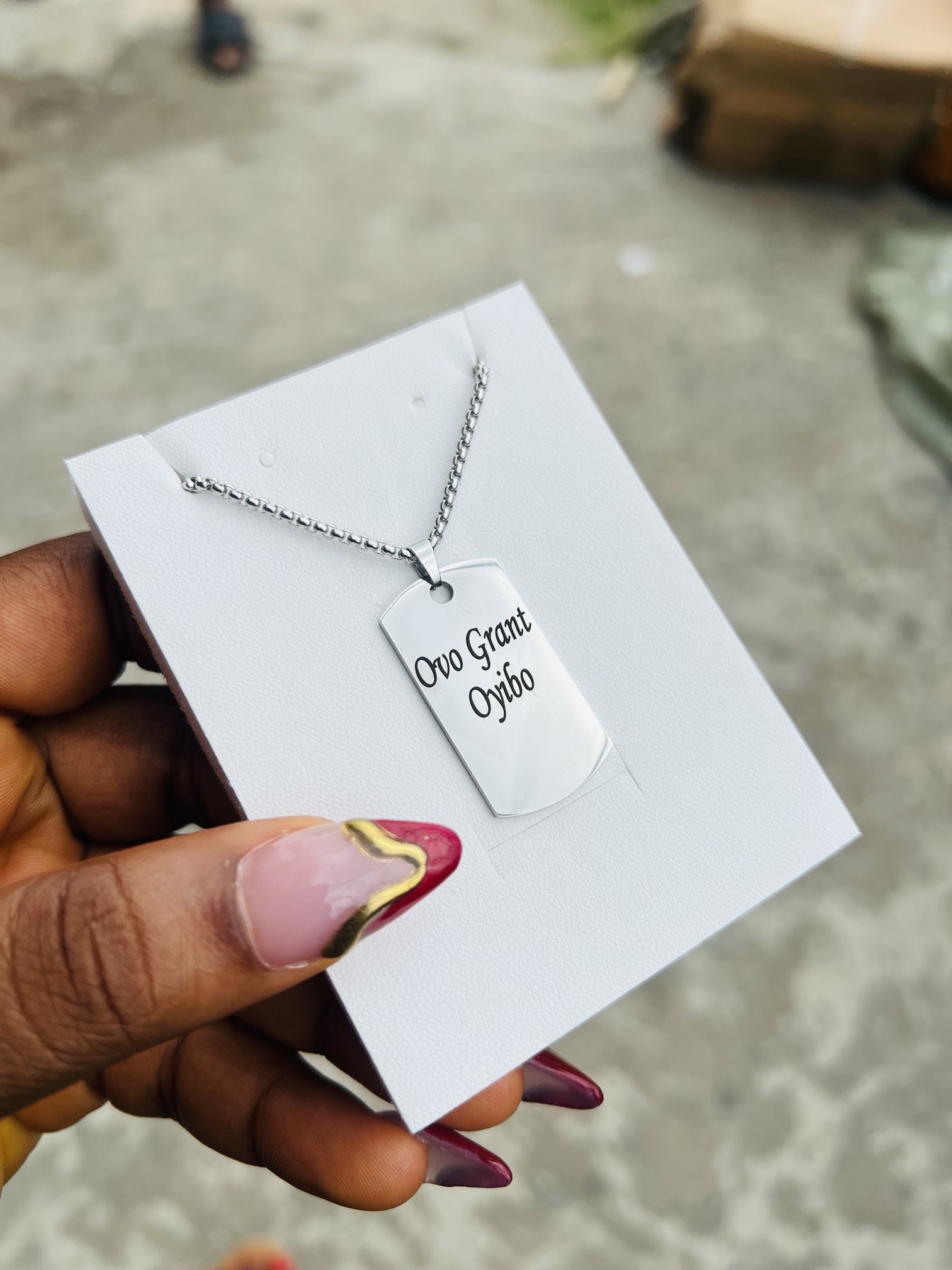 Previous Product Next Product Baby Gold engraved bracelet with crown charms ₦4,500 Category: Customizables Out of stock Description Reviews (0) Description •Hypoallergenic •Doesn’t tarnish nor rust •Pure stainless steel Reviews There are no reviews yet. Be the first to review “Baby Gold engraved bracelet with crown charms” Cancel replyYour email address will not be published. Required fields are marked *Your rating * Rate… Perfect Good Average Not that bad Very poor Your review *Name * Email * Save my name, email, and website in this browser for the next time I comment. Opens in a new window Tweet This Product Opens in a new window Share on Facebook Opens in a new window Pin This Product Opens in a new window Mail This Product Related products Quick View Quick View CustomizablesRolex watch and Barcode bracelet ₦21,500 Buy Now Quick View Quick View CustomizablesEngraved Silver Dog tag necklace ₦4,500 Buy Now Quick View Quick View CustomizablesPresidential rebirth with love engraved bracelet ₦18,000 Buy Now