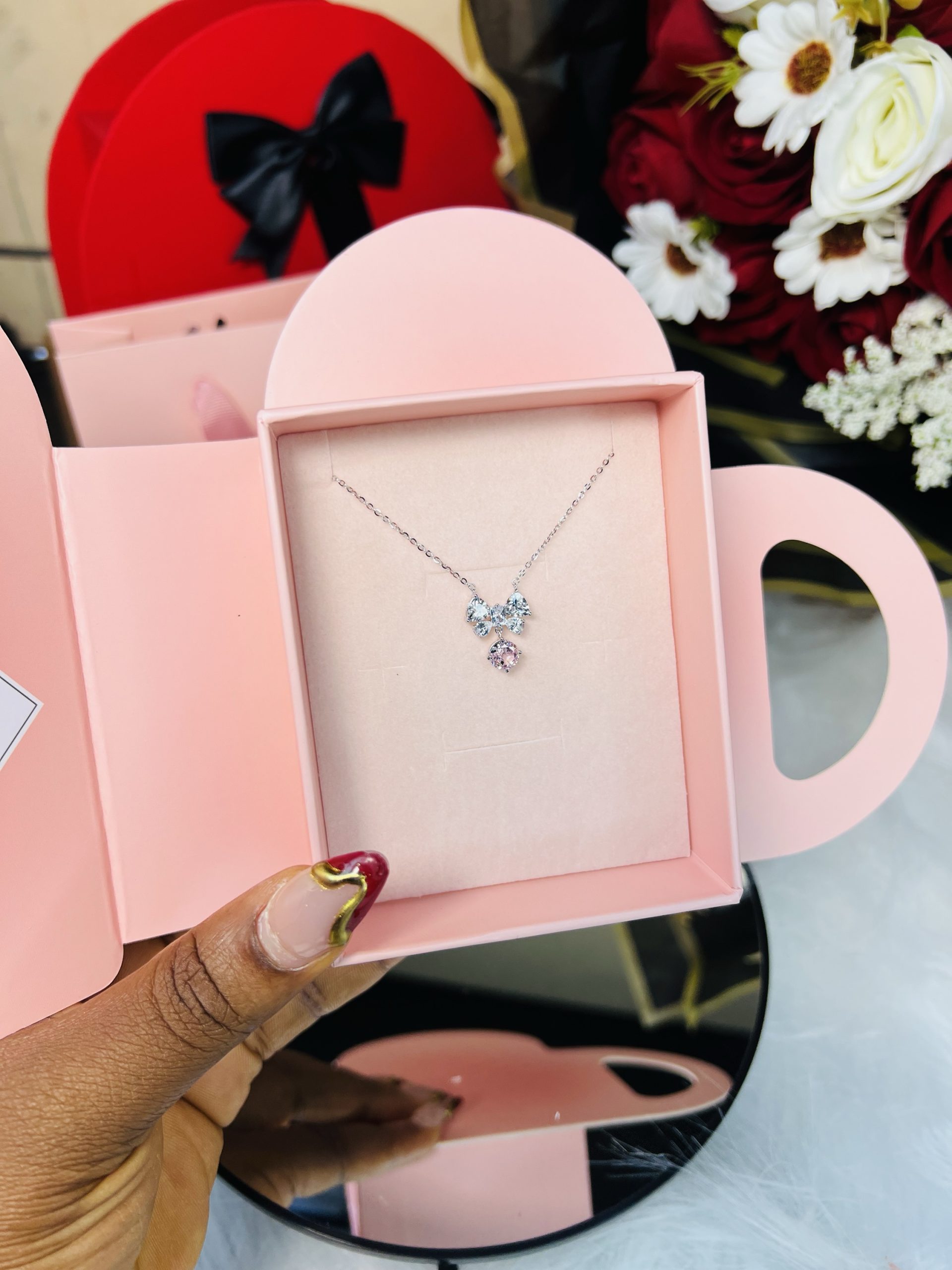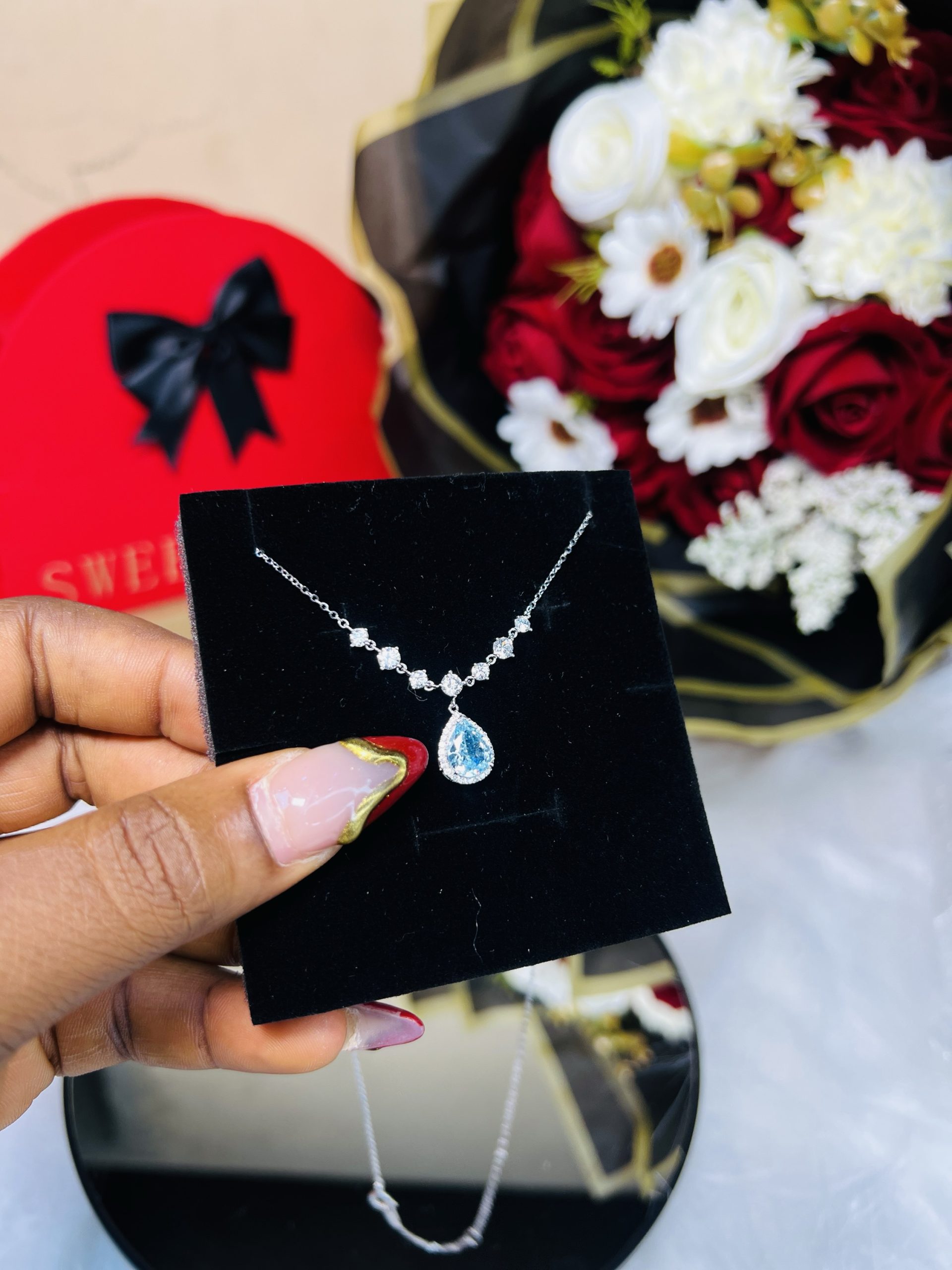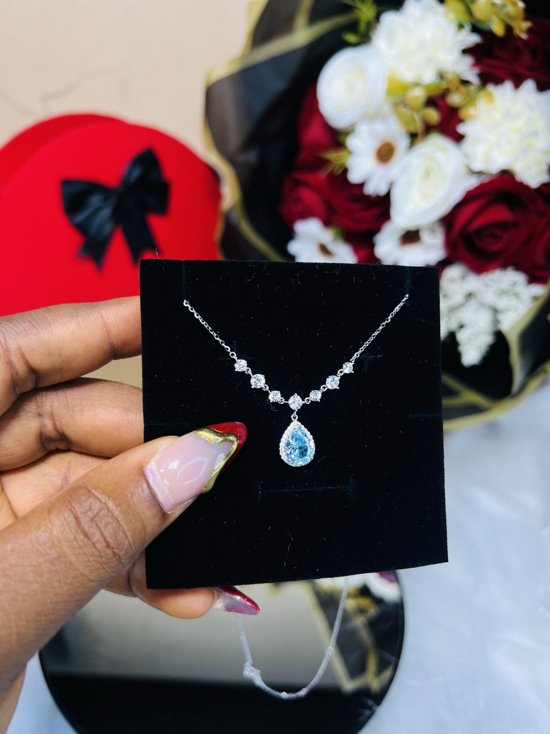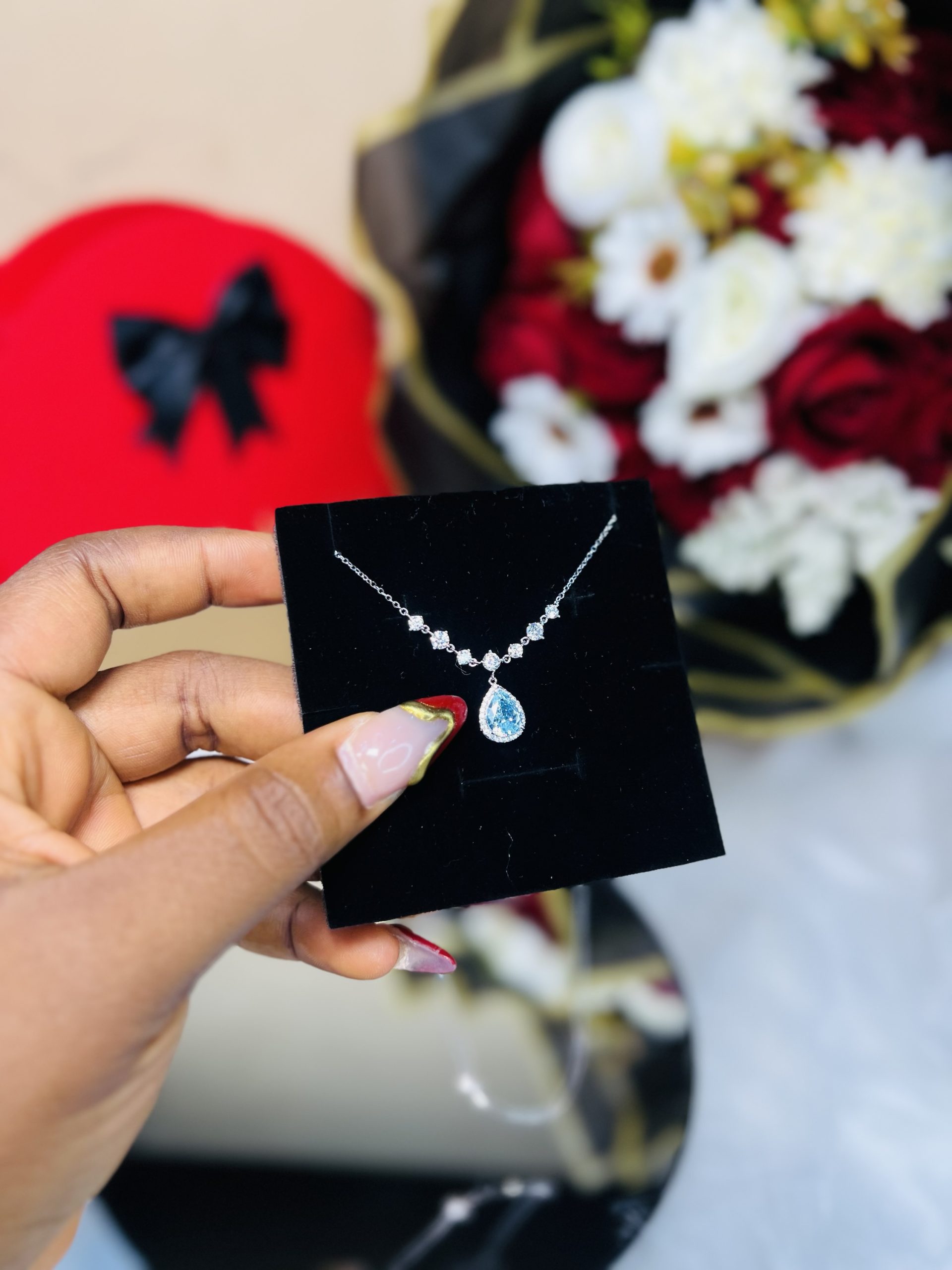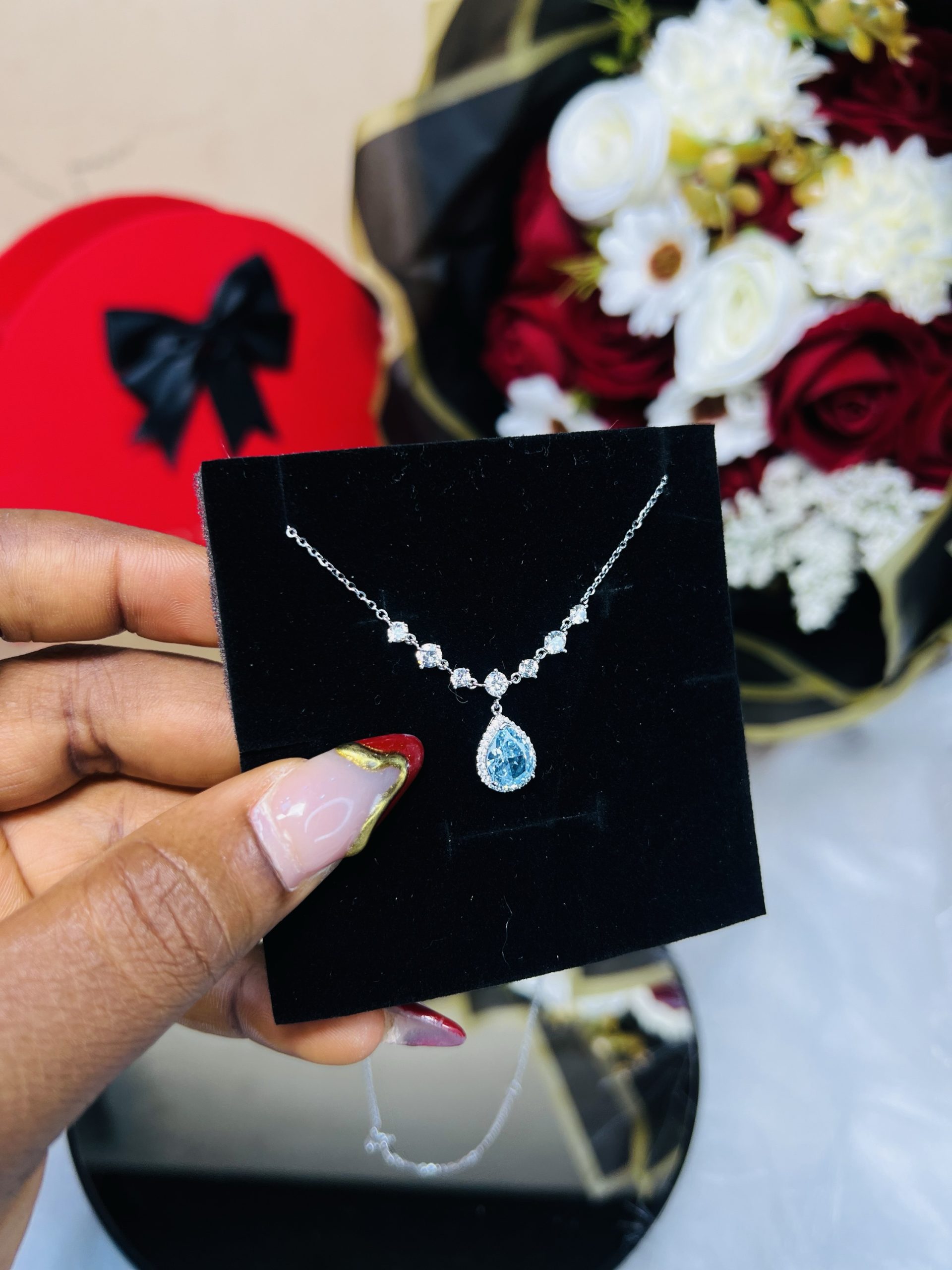 A blue synthetic cubic zirconia pendant set on 92.5% sterling silver, weighing 2.96g.
