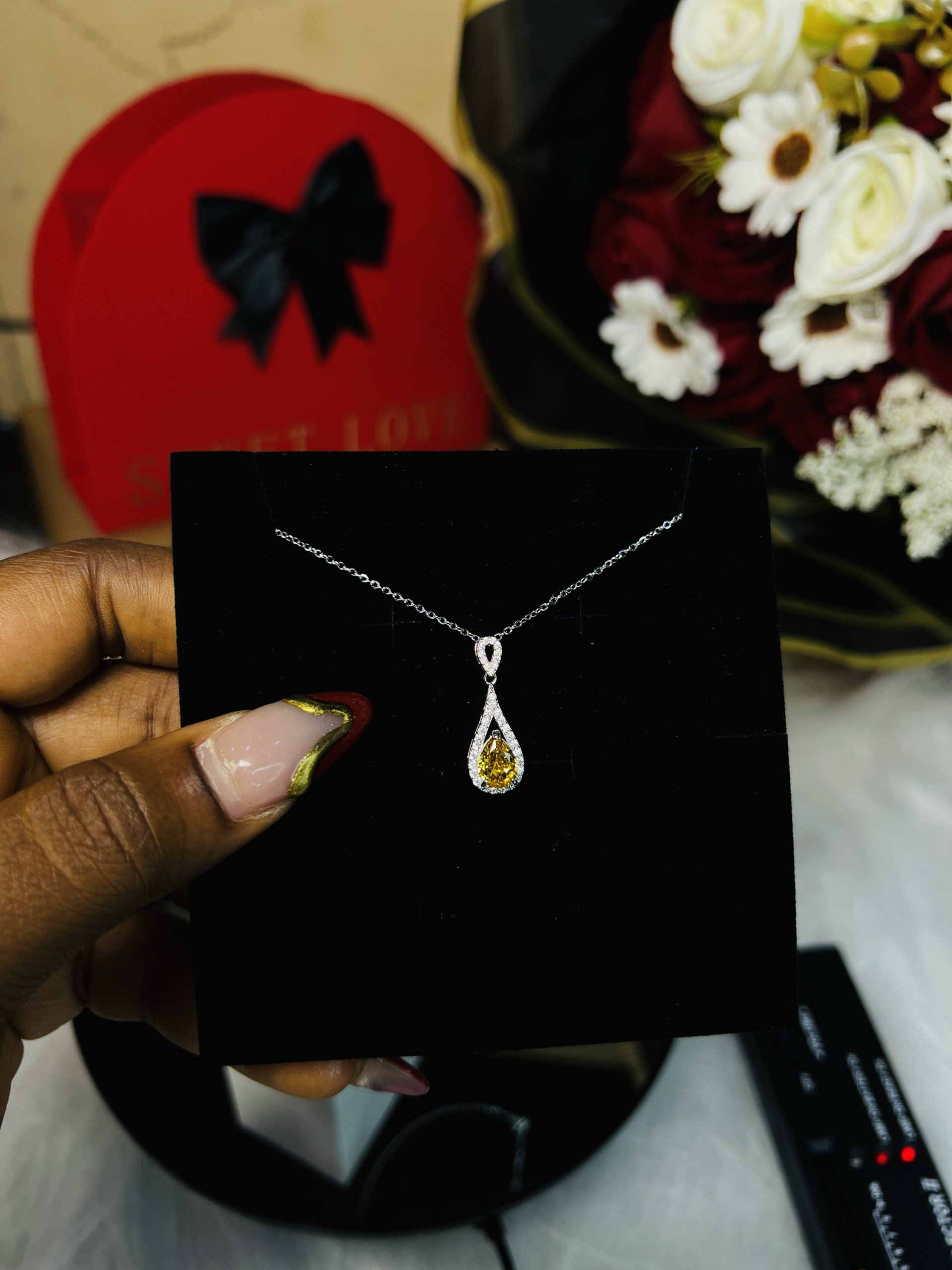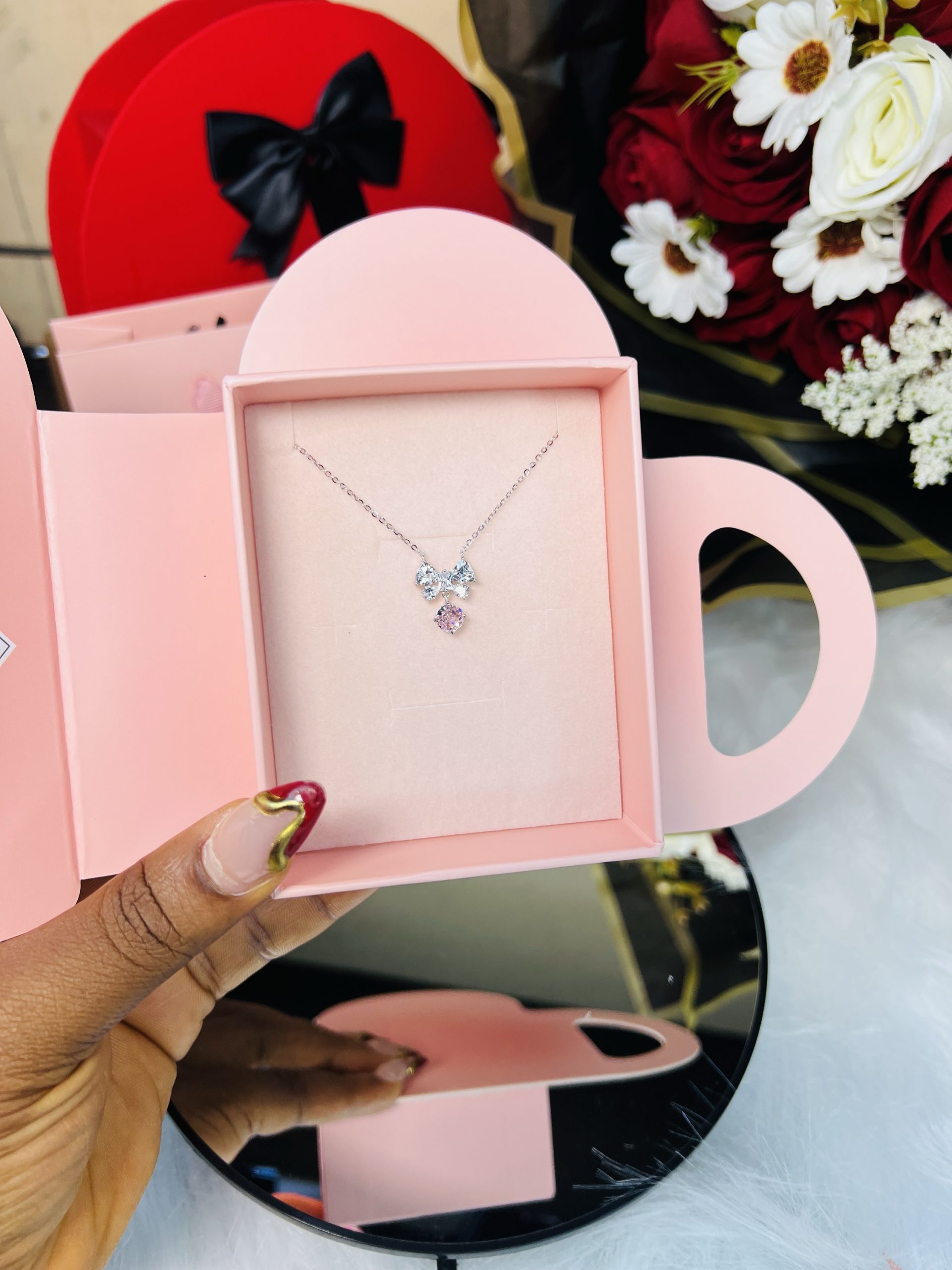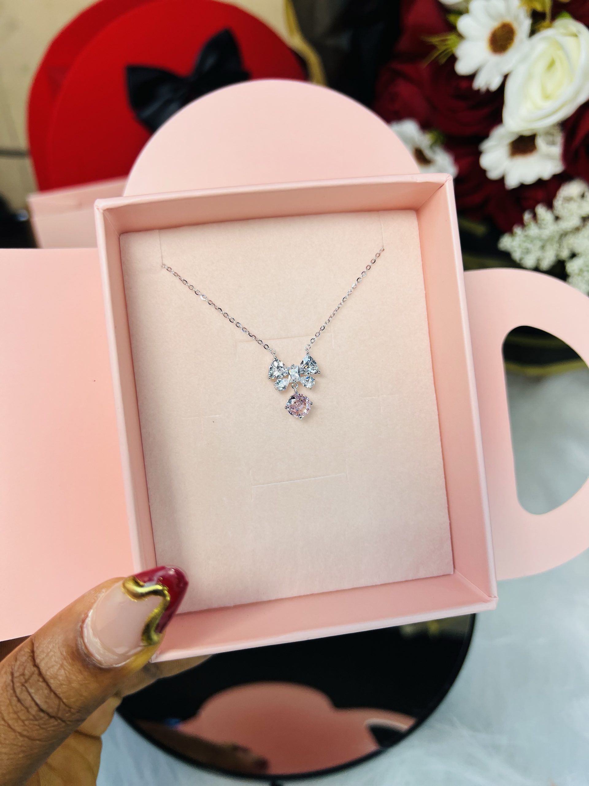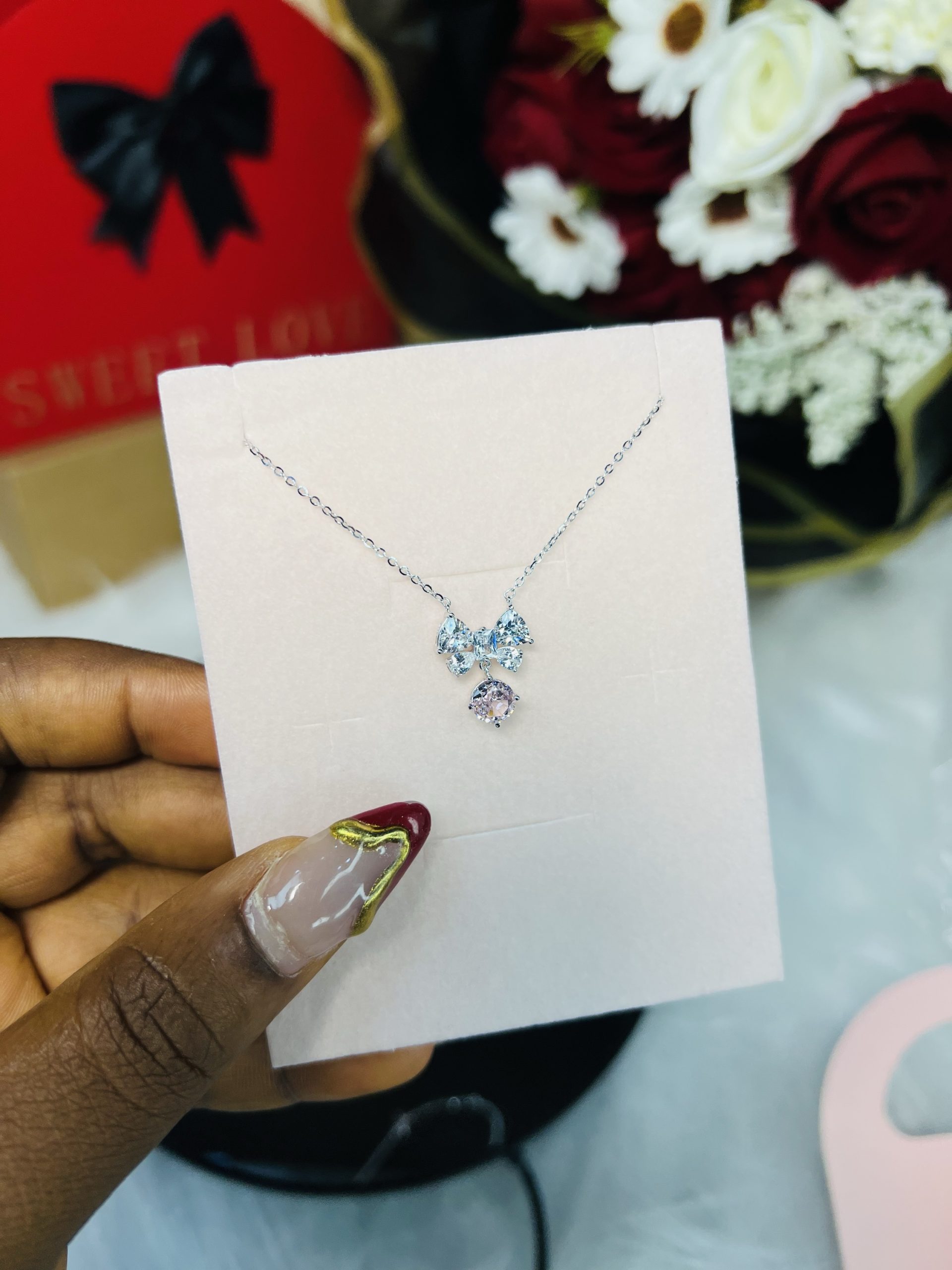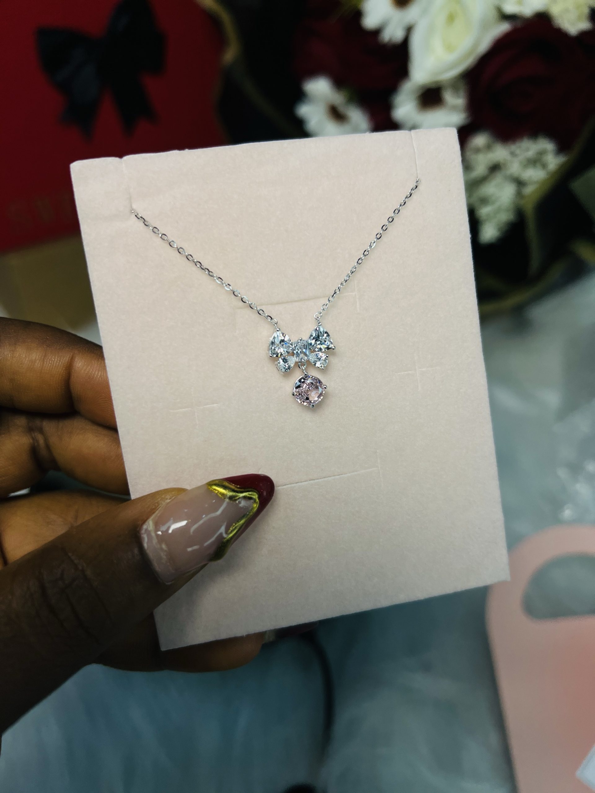 Cz bow tie rhodonite necklace