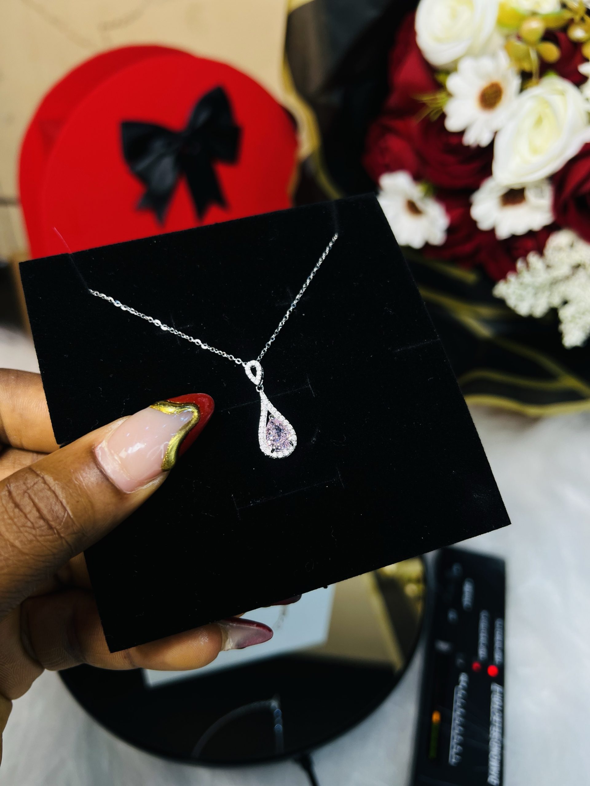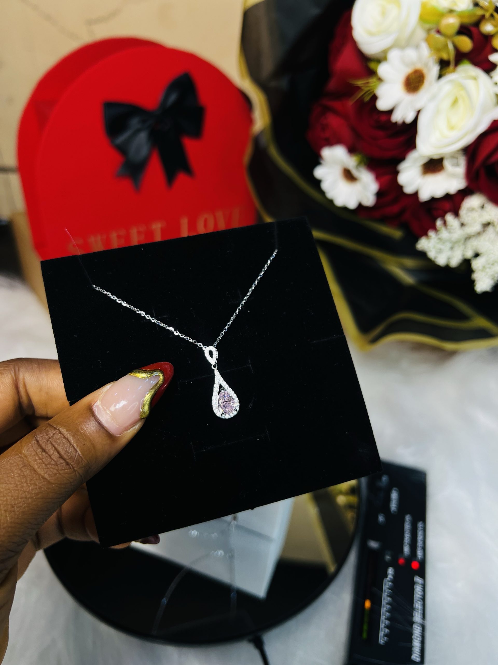 A pink synthetic cubic zirconia pendant set on 92.5% sterling silver, weighing 2.96g.