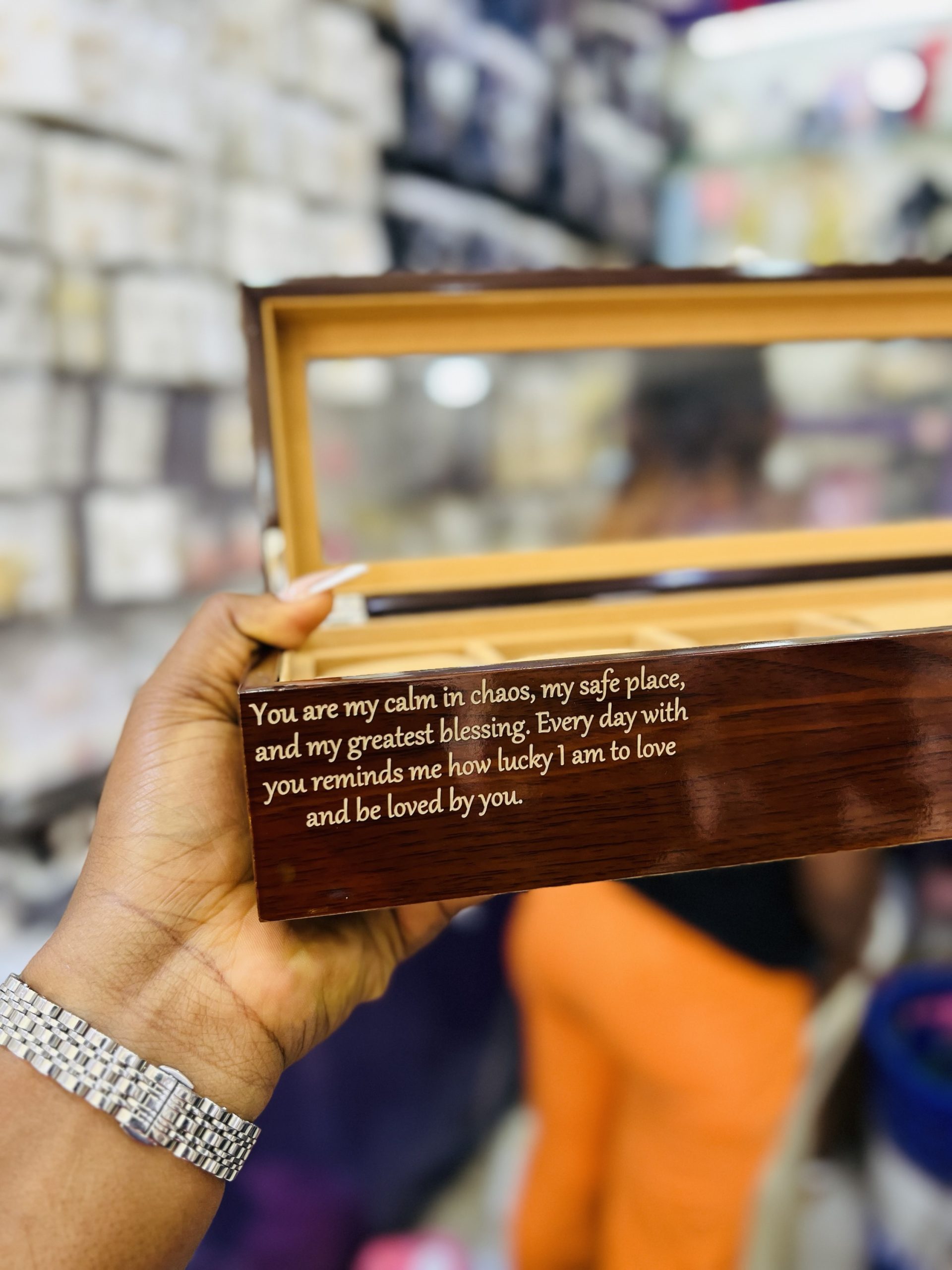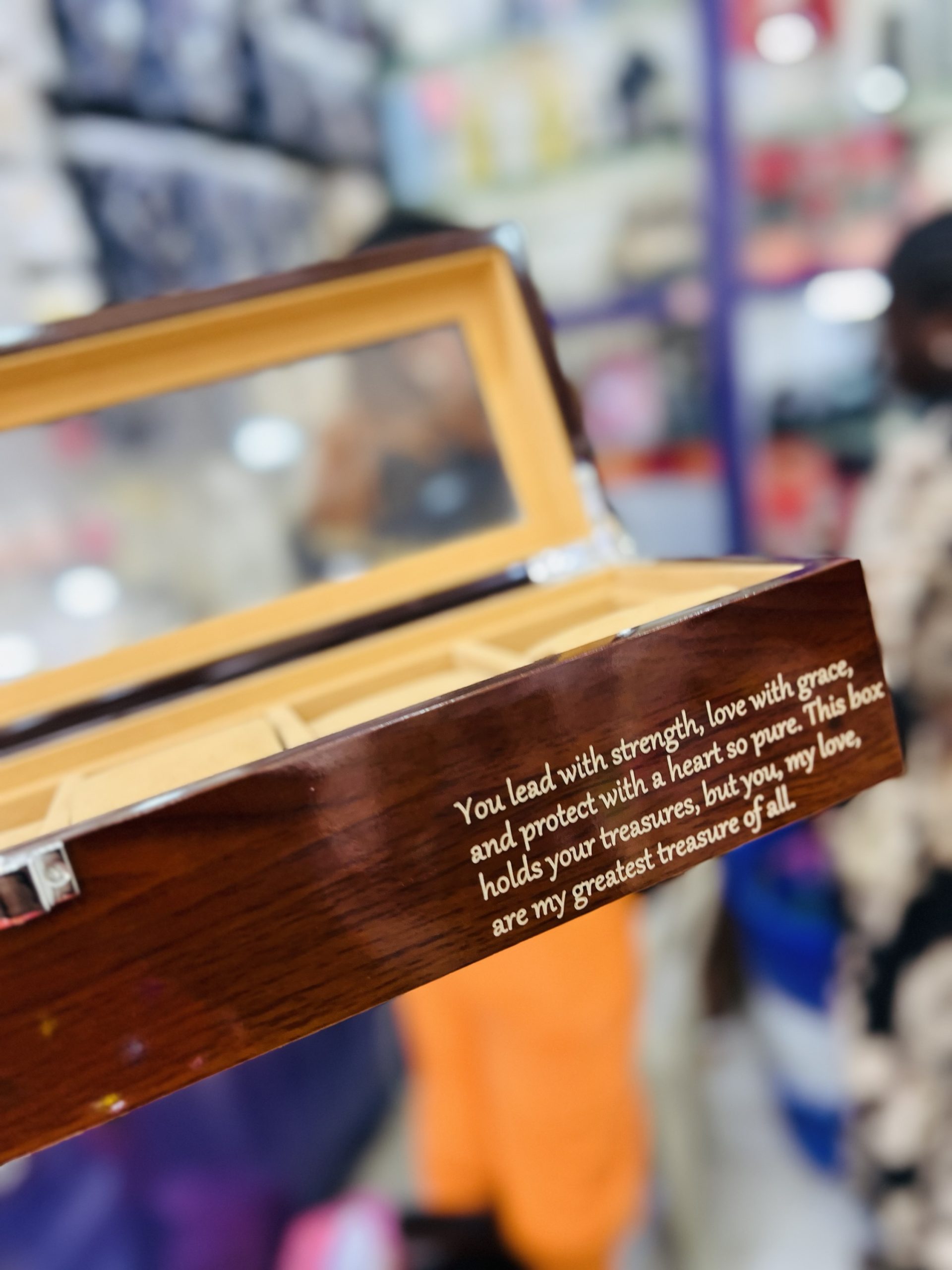 Previous Product Next Product Engraved 6 slot Formica box ₦22,000 Category: Customizables 25 in stock Engraved 6 slot Formica box quantity Buy Now Reviews (0) Reviews There are no reviews yet. Be the first to review “Engraved 6 slot Formica box” Cancel replyYour email address will not be published. Required fields are marked *Your rating * Rate… Perfect Good Average Not that bad Very poor Your review *Name * Email * Save my name, email, and website in this browser for the next time I comment. Opens in a new window Tweet This Product Opens in a new window Share on Facebook Opens in a new window Pin This Product Opens in a new window Mail This Product Related products Quick View Quick View CustomizablesBlack stretchy bracelet ₦6,599 Buy Now Quick View Out of Stock Quick View CustomizablesBaby Gold engraved bracelet with crown charms ₦4,500 Read more Quick View Quick View CustomizablesGold Engraved block necklace ₦4,500 Buy Now