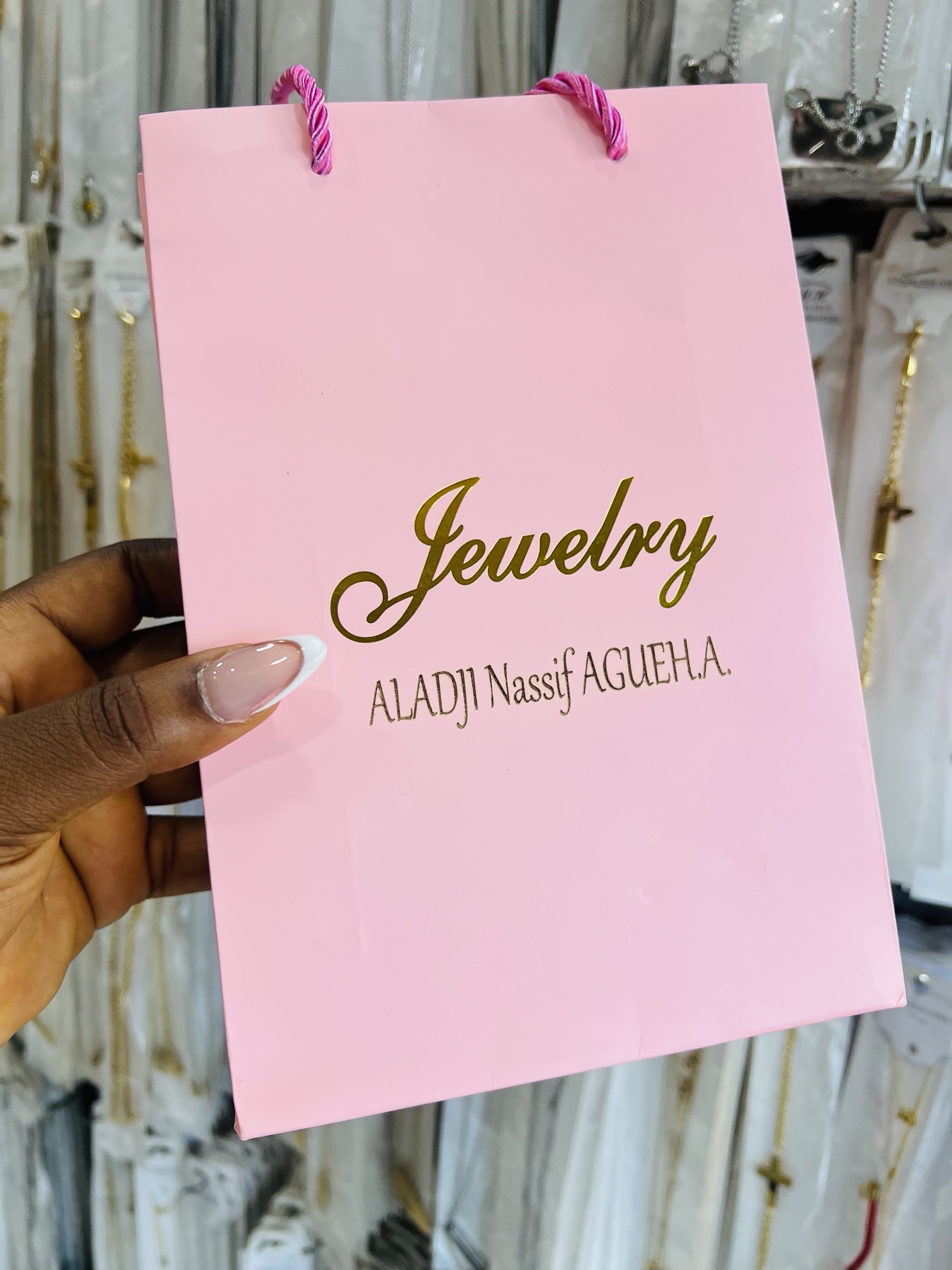 Previous Product Next Product Engraved pink big size jewelry bag ₦3,099 Categories: Customizables, Props and packaging 56 in stock Engraved pink big size jewelry bag quantity Buy Now Reviews (0) Reviews There are no reviews yet. Be the first to review “Engraved pink big size jewelry bag” Cancel replyYour email address will not be published. Required fields are marked *Your rating * Rate… Perfect Good Average Not that bad Very poor Your review *Name * Email * Save my name, email, and website in this browser for the next time I comment. Opens in a new window Tweet This Product Opens in a new window Share on Facebook Opens in a new window Pin This Product Opens in a new window Mail This Product Related products Quick View Quick View CustomizablesSilver heart shaped locket with paper box ₦15,900 Buy Now Quick View Quick View CustomizablesBlack face Casio watch and bracelet no box ₦17,500 Buy Now Quick View Quick View CustomizablesEngraved Silver Dog tag necklace ₦4,500 Buy Now