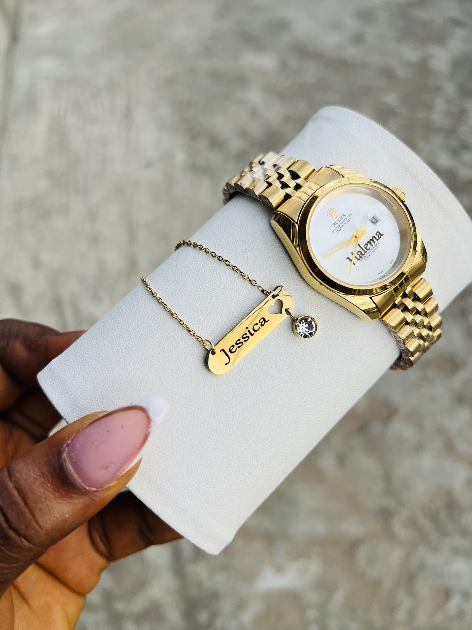 Previous Product Next Product Engraved clear female Rolex combo set ₦24,500 Category: Customizables 24 in stock Engraved clear female Rolex combo set quantity Buy Now Reviews (0) Reviews There are no reviews yet. Be the first to review “Engraved clear female Rolex combo set” Cancel replyYour email address will not be published. Required fields are marked *Your rating * Rate… Perfect Good Average Not that bad Very poor Your review *Name * Email * Save my name, email, and website in this browser for the next time I comment. Opens in a new window Tweet This Product Opens in a new window Share on Facebook Opens in a new window Pin This Product Opens in a new window Mail This Product Related products Quick View Quick View CustomizablesGold flat necklace and bracelet set with box ₦14,900 Buy Now Quick View Quick View CustomizablesStoned square gold dog tag necklace ₦7,500 Buy Now Quick View Quick View CustomizablesGold stretchy bracelet ₦7,500 Buy Now