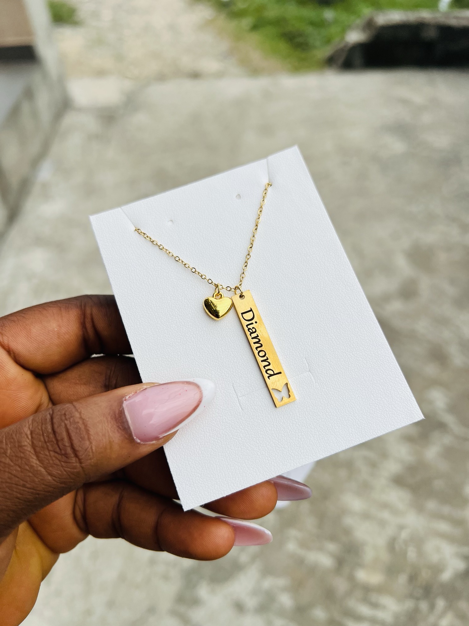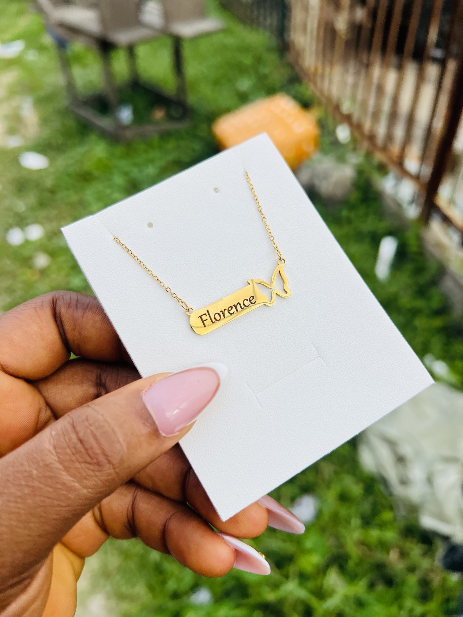Previous Product Next Product Engraved female butterfly necklace ₦6,099 Category: Customizables 99 in stock Engraved female butterfly necklace quantity Buy Now Reviews (0) Reviews There are no reviews yet. Be the first to review “Engraved female butterfly necklace” Cancel replyYour email address will not be published. Required fields are marked *Your rating * Rate… Perfect Good Average Not that bad Very poor Your review *Name * Email * Save my name, email, and website in this browser for the next time I comment. Opens in a new window Tweet This Product Opens in a new window Share on Facebook Opens in a new window Pin This Product Opens in a new window Mail This Product Related products Quick View Quick View Customizables12mm Gold Rolex bracelet ₦7,500 Buy Now Quick View Quick View CustomizablesSilver heart shaped locket with paper box ₦15,900 Buy Now Quick View Quick View CustomizablesSilver stretchy bracelet ₦7,500 Buy Now