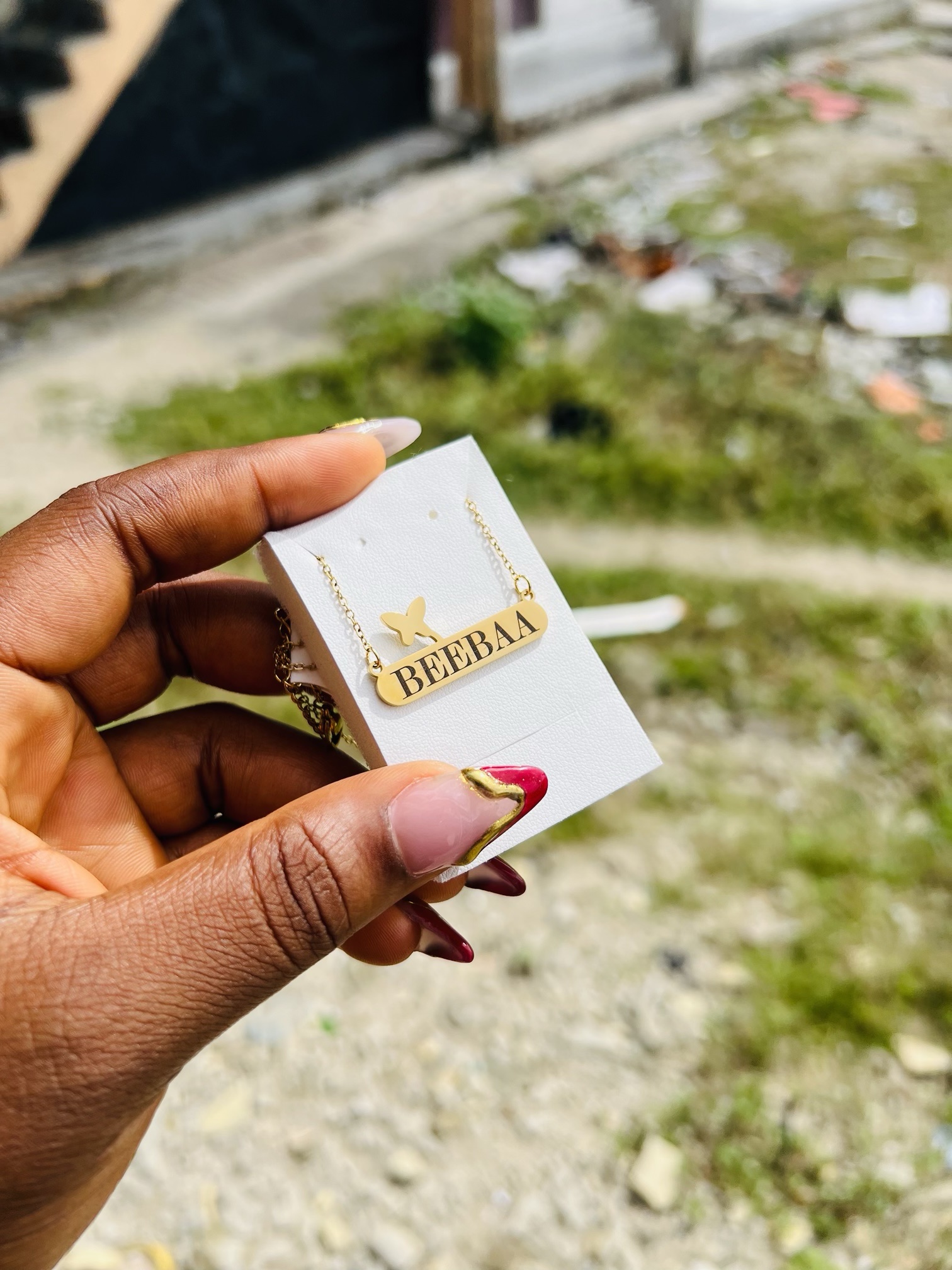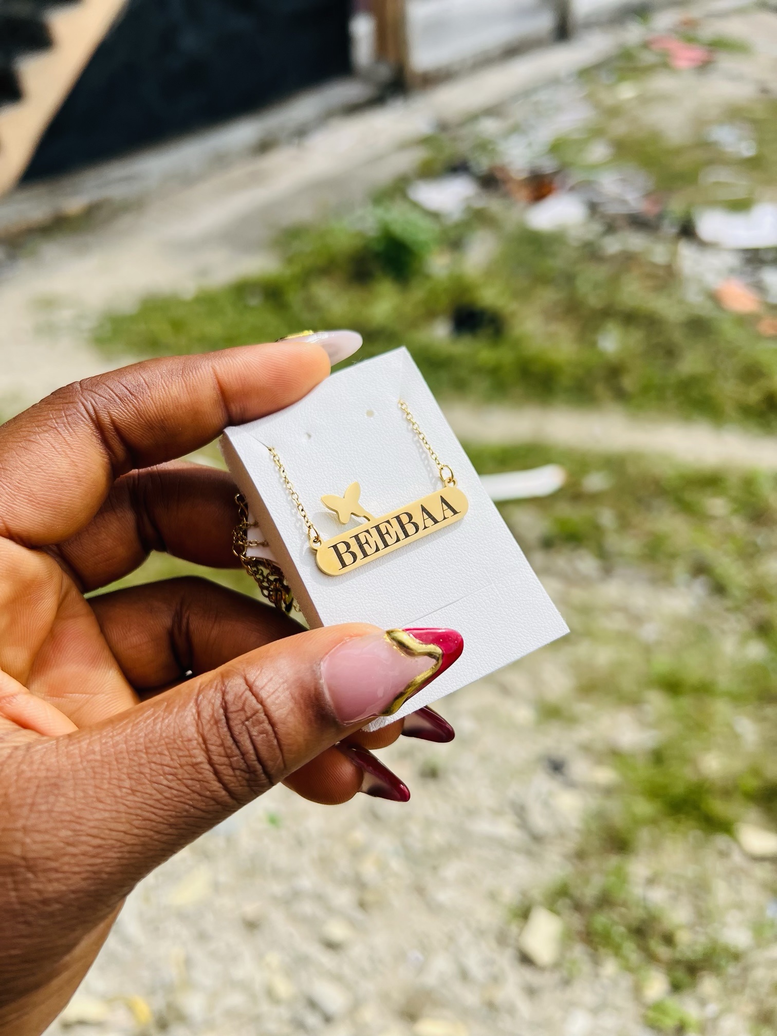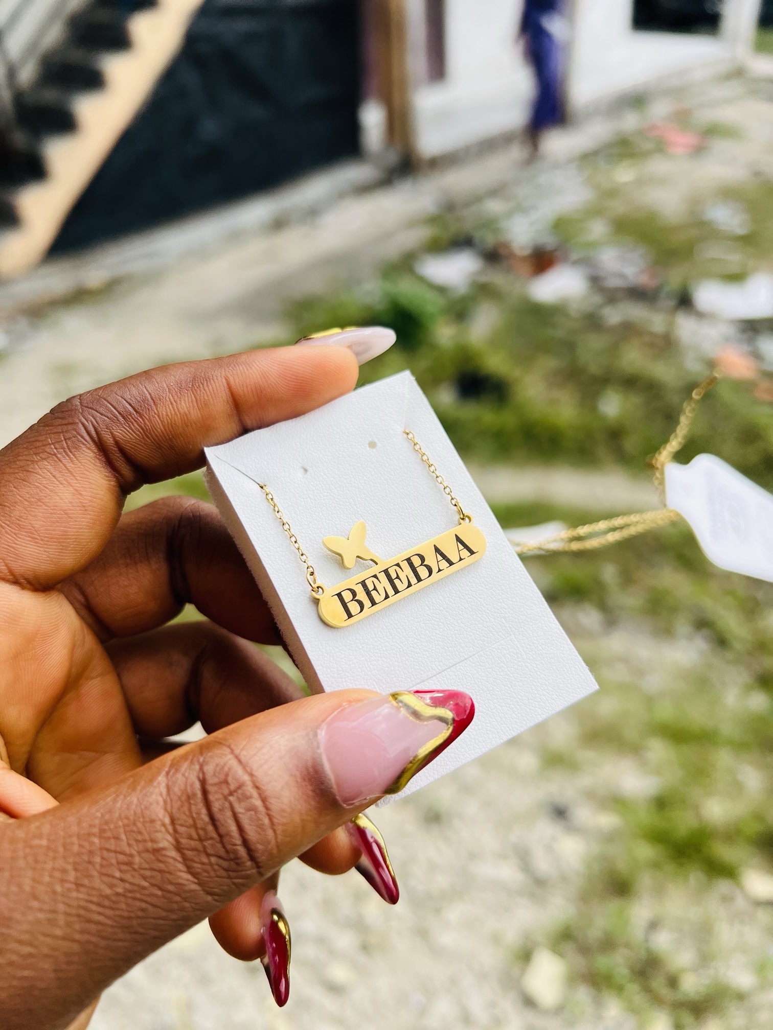Previous Product Next Product Engraved female butterfly necklace ₦4,599 Category: Customizables 54 in stock Engraved female butterfly necklace quantity Buy Now Reviews (0) Reviews There are no reviews yet. Be the first to review “Engraved female butterfly necklace” Cancel replyYour email address will not be published. Required fields are marked *Your rating * Rate… Perfect Good Average Not that bad Very poor Your review *Name * Email * Save my name, email, and website in this browser for the next time I comment. Opens in a new window Tweet This Product Opens in a new window Share on Facebook Opens in a new window Pin This Product Opens in a new window Mail This Product Related products Quick View Quick View CustomizablesSilver circle locket necklace with paper box ₦15,900 Buy Now Quick View Quick View CustomizablesGold flat necklace and bracelet no box ₦11,099 Buy Now Quick View Quick View CustomizablesRolex watch and Barcode bracelet ₦21,500 Buy Now