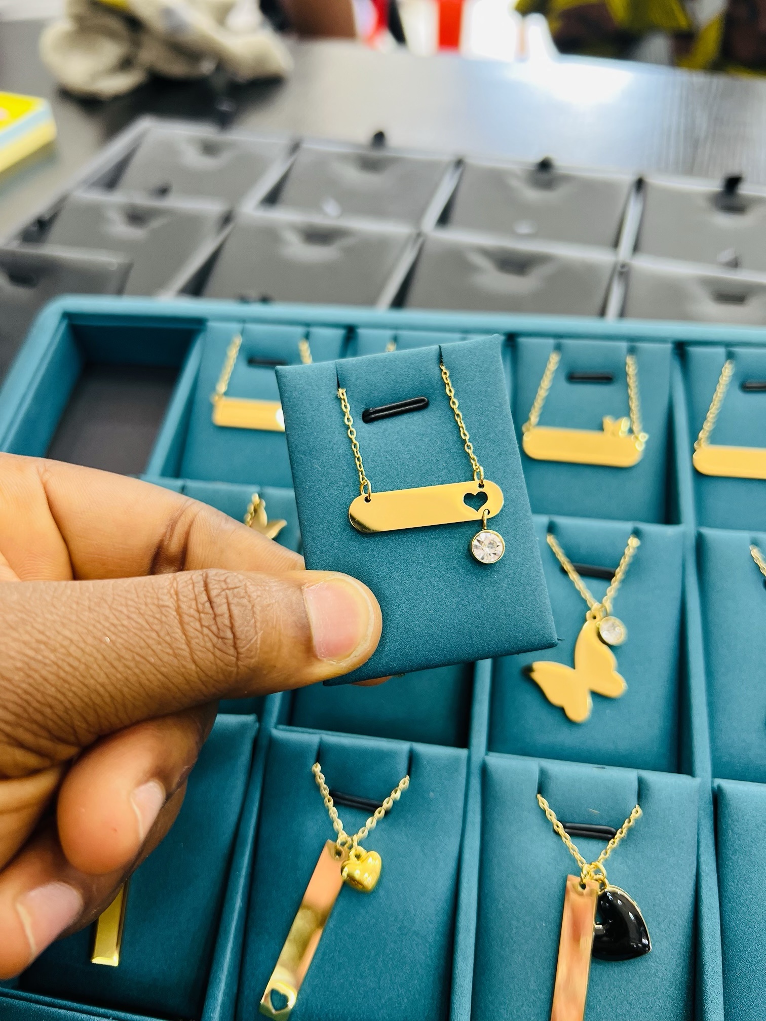 Previous Product Next Product Engraved female flat necklace with gemstone ₦6,099 Category: Customizables 97 in stock Engraved female flat necklace with gemstone quantity Buy Now Reviews (0) Reviews There are no reviews yet. Be the first to review “Engraved female flat necklace with gemstone” Cancel replyYour email address will not be published. Required fields are marked *Your rating * Rate… Perfect Good Average Not that bad Very poor Your review *Name * Email * Save my name, email, and website in this browser for the next time I comment. Opens in a new window Tweet This Product Opens in a new window Share on Facebook Opens in a new window Pin This Product Opens in a new window Mail This Product Related products Quick View Quick View CustomizablesBlack face Casio watch and bracelet no box ₦18,500 Buy Now Quick View Quick View CustomizablesRotating frame stand ₦15,000 Buy Now Quick View Quick View CustomizablesGold gold face Casio watch and bracelet no box ₦18,500 Buy Now