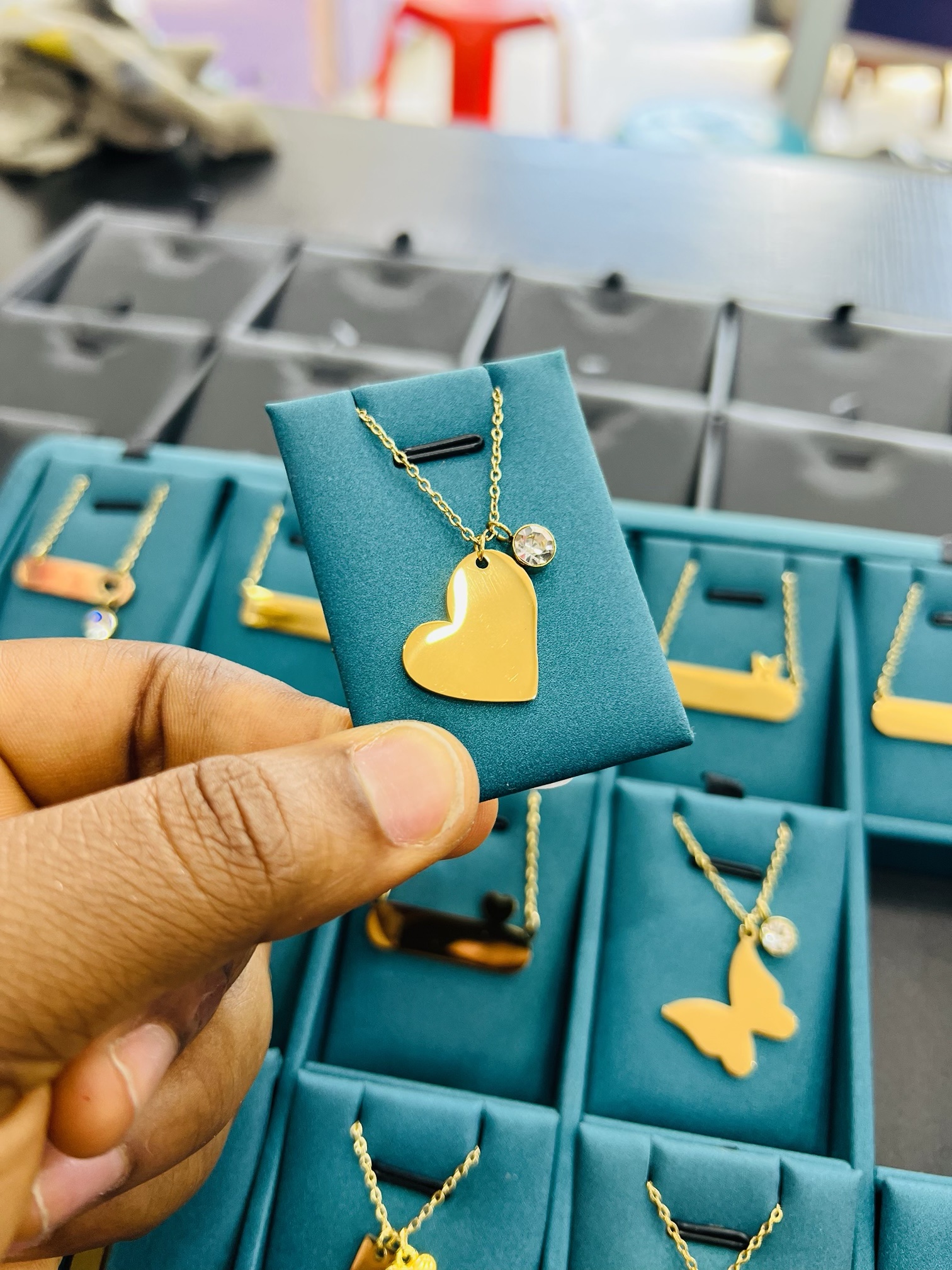 Previous Product Next Product Engraved female heart necklace with gemstone ₦6,099 Category: Customizables 98 in stock Engraved female heart necklace with gemstone quantity Buy Now Reviews (0) Reviews There are no reviews yet. Be the first to review “Engraved female heart necklace with gemstone” Cancel replyYour email address will not be published. Required fields are marked *Your rating * Rate… Perfect Good Average Not that bad Very poor Your review *Name * Email * Save my name, email, and website in this browser for the next time I comment. Opens in a new window Tweet This Product Opens in a new window Share on Facebook Opens in a new window Pin This Product Opens in a new window Mail This Product Related products Quick View Quick View CustomizablesOval necklace and bracelet with love box ₦18,500 Buy Now Quick View Quick View CustomizablesSilver heart shaped locket with paper box ₦15,900 Buy Now Quick View Quick View CustomizablesGold flat necklace and bracelet set with box ₦14,900 Buy Now