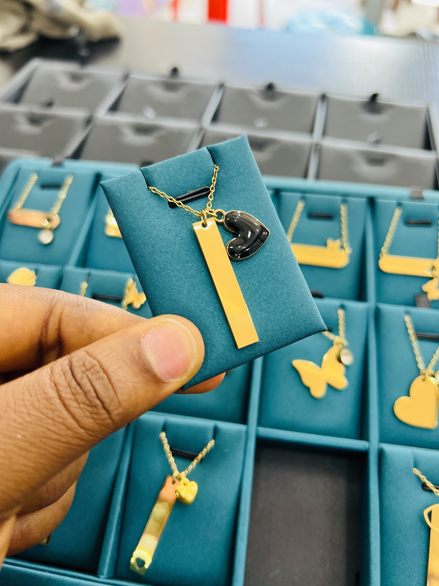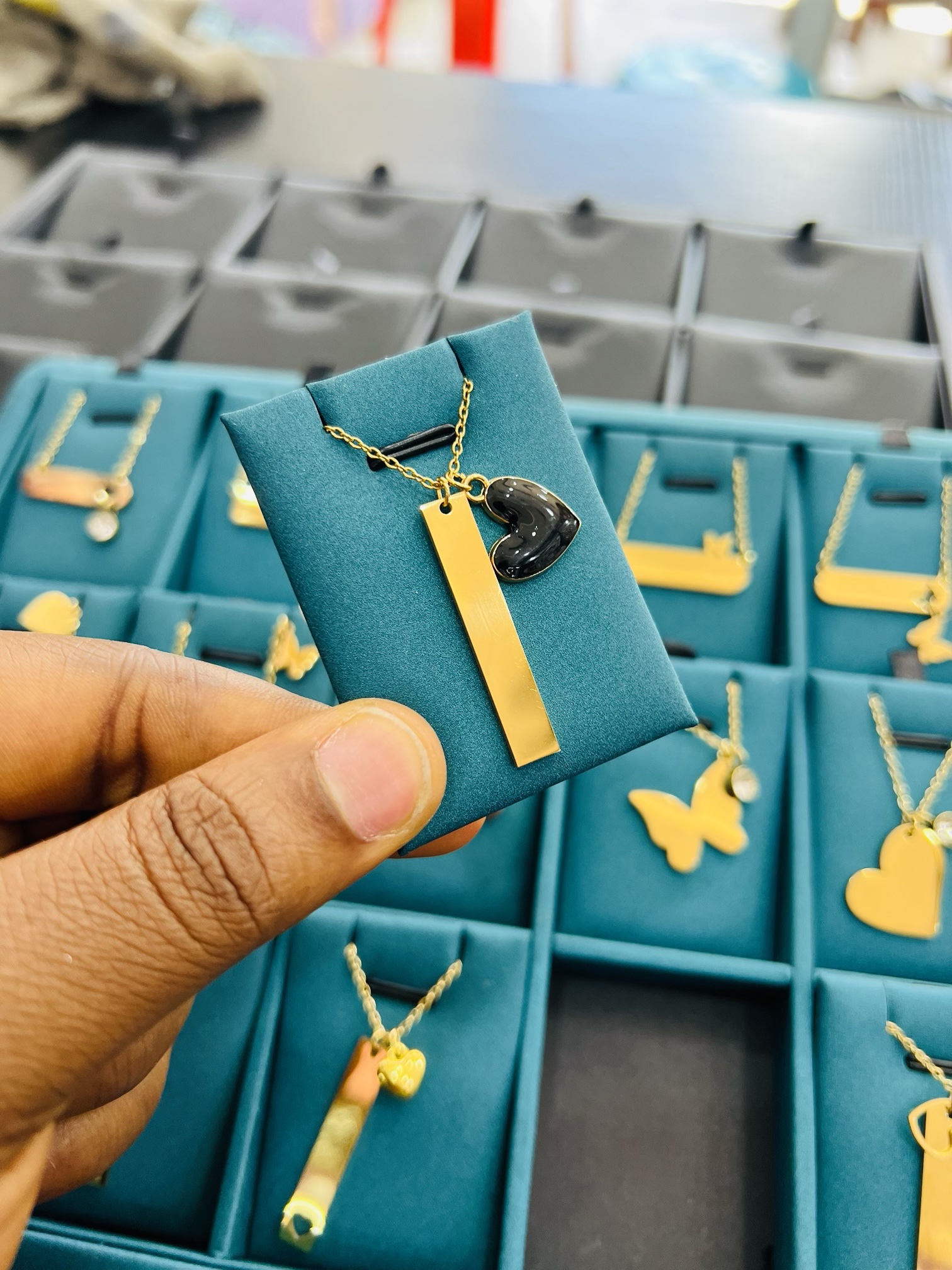 Previous Product Next Product Engraved female necklace with black heart ₦6,099 Category: Customizables 100 in stock Engraved female necklace with black heart quantity Buy Now Reviews (0) Reviews There are no reviews yet. Be the first to review “Engraved female necklace with black heart” Cancel replyYour email address will not be published. Required fields are marked *Your rating * Rate… Perfect Good Average Not that bad Very poor Your review *Name * Email * Save my name, email, and website in this browser for the next time I comment. Opens in a new window Tweet This Product Opens in a new window Share on Facebook Opens in a new window Pin This Product Opens in a new window Mail This Product Related products Quick View Quick View CustomizablesOval necklace and bracelet with love box ₦18,500 Buy Now Quick View Quick View CustomizablesGold stretchy bracelet ₦7,500 Buy Now Quick View Quick View CustomizablesSilver stretchy bracelet ₦7,500 Buy Now