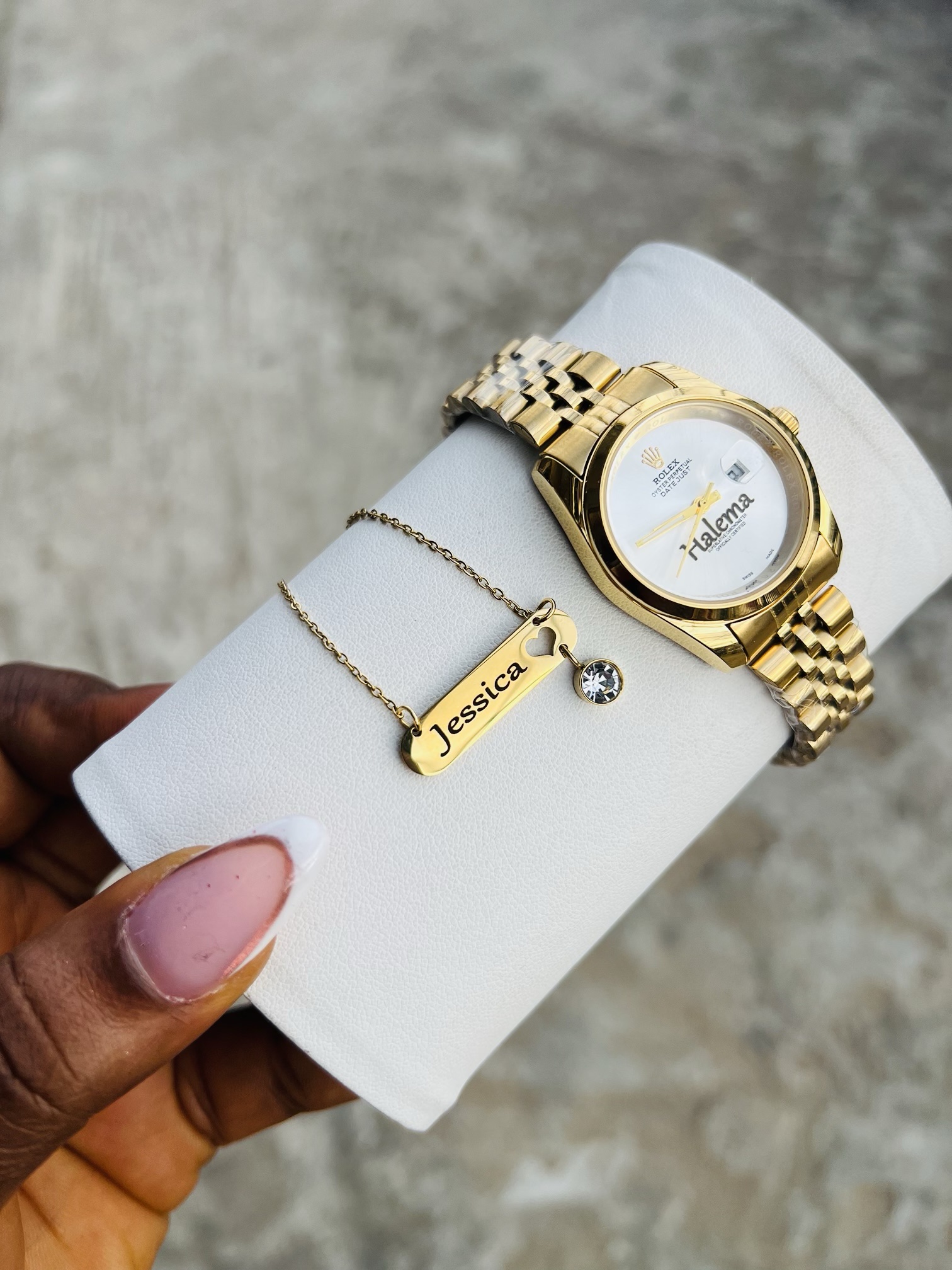 Previous Product Next Product Engraved female Rolex combo set ₦20,599 Category: Customizables 24 in stock Engraved female Rolex combo set quantity Buy Now Reviews (0) Reviews There are no reviews yet. Be the first to review “Engraved female Rolex combo set” Cancel replyYour email address will not be published. Required fields are marked *Your rating * Rate… Perfect Good Average Not that bad Very poor Your review *Name * Email * Save my name, email, and website in this browser for the next time I comment. Opens in a new window Tweet This Product Opens in a new window Share on Facebook Opens in a new window Pin This Product Opens in a new window Mail This Product Related products Quick View Quick View CustomizablesBlack Casio watch X Rose box ₦14,500 Buy Now Quick View Quick View CustomizablesStoned round engraved necklace ₦7,500 Buy Now Quick View Quick View CustomizablesGold gold face Casio watch and bracelet no box ₦18,500 Buy Now