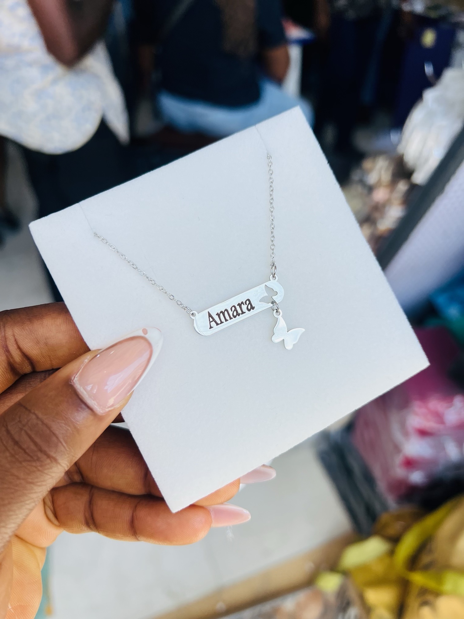 Previous Product Next Product Engraved female silver butterfly dropping necklace ₦6,099 Category: Customizables Out of stock Reviews (0) Reviews There are no reviews yet. Be the first to review “Engraved female silver butterfly dropping necklace” Cancel replyYour email address will not be published. Required fields are marked *Your rating * Rate… Perfect Good Average Not that bad Very poor Your review *Name * Email * Save my name, email, and website in this browser for the next time I comment. Opens in a new window Tweet This Product Opens in a new window Share on Facebook Opens in a new window Pin This Product Opens in a new window Mail This Product Related products Quick View Quick View CustomizablesGold heart shape locket with paper box ₦15,900 Buy Now Quick View Quick View CustomizablesEngraved female gold infinity necklace ₦4,500 Rated 5.00 out of 5Buy Now Quick View Quick View CustomizablesSilver circle locket necklace with paper box ₦15,900 Buy Now