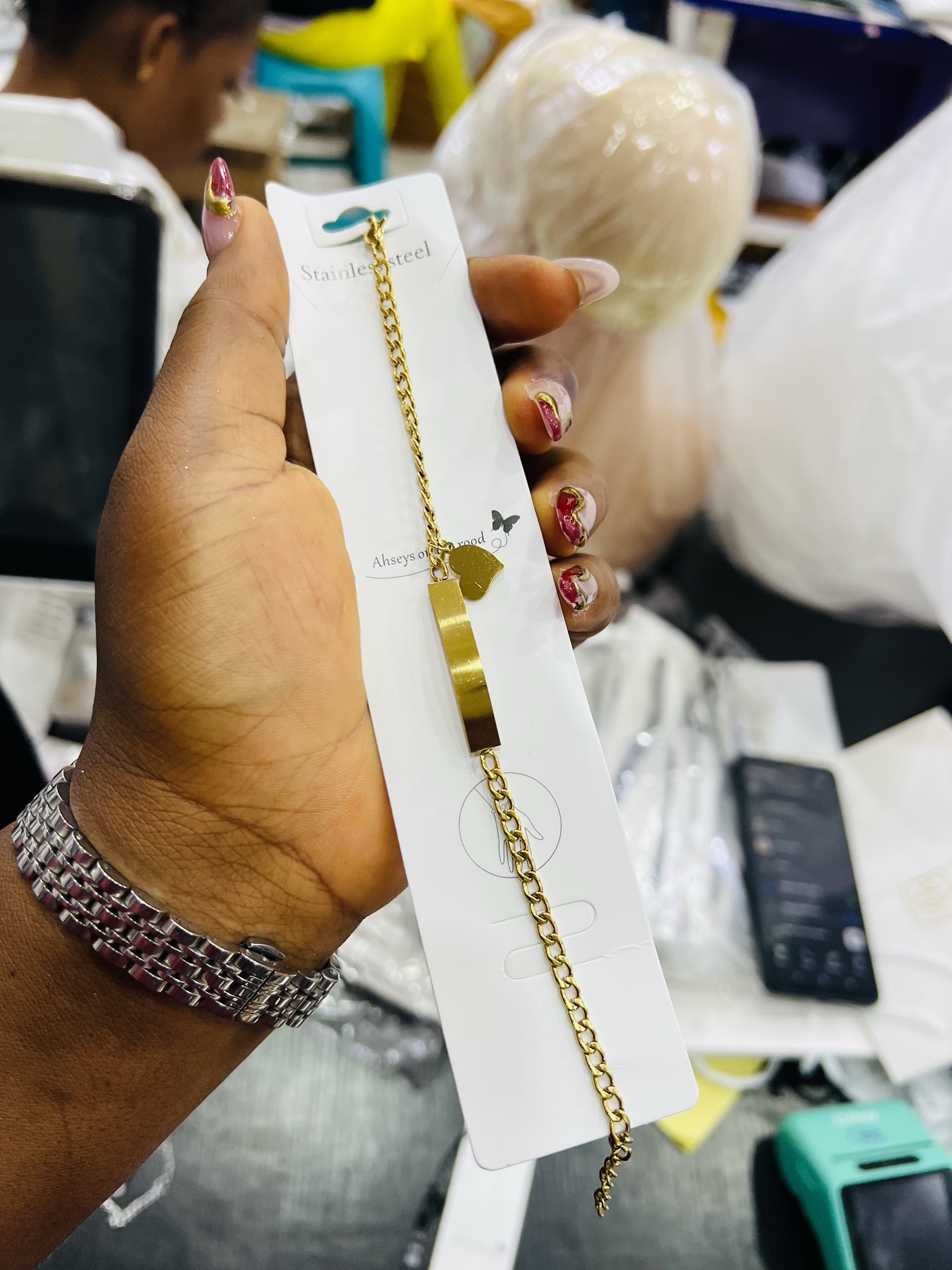 Previous Product Next Product Engraved gold unique bracelet ₦6,000 Category: Customizables 7 in stock Engraved gold unique bracelet quantity Buy Now Reviews (0) Reviews There are no reviews yet. Be the first to review “Engraved gold unique bracelet” Cancel replyYour email address will not be published. Required fields are marked *Your rating * Rate… Perfect Good Average Not that bad Very poor Your review *Name * Email * Save my name, email, and website in this browser for the next time I comment. Opens in a new window Tweet This Product Opens in a new window Share on Facebook Opens in a new window Pin This Product Opens in a new window Mail This Product Related products Quick View Quick View CustomizablesPresidential rebirth with love engraved bracelet ₦18,000 Buy Now Quick View Quick View CustomizablesGold heart shape locket with paper box ₦15,900 Buy Now Quick View Quick View CustomizablesBlack oval engraved necklace ₦6,000 Buy Now