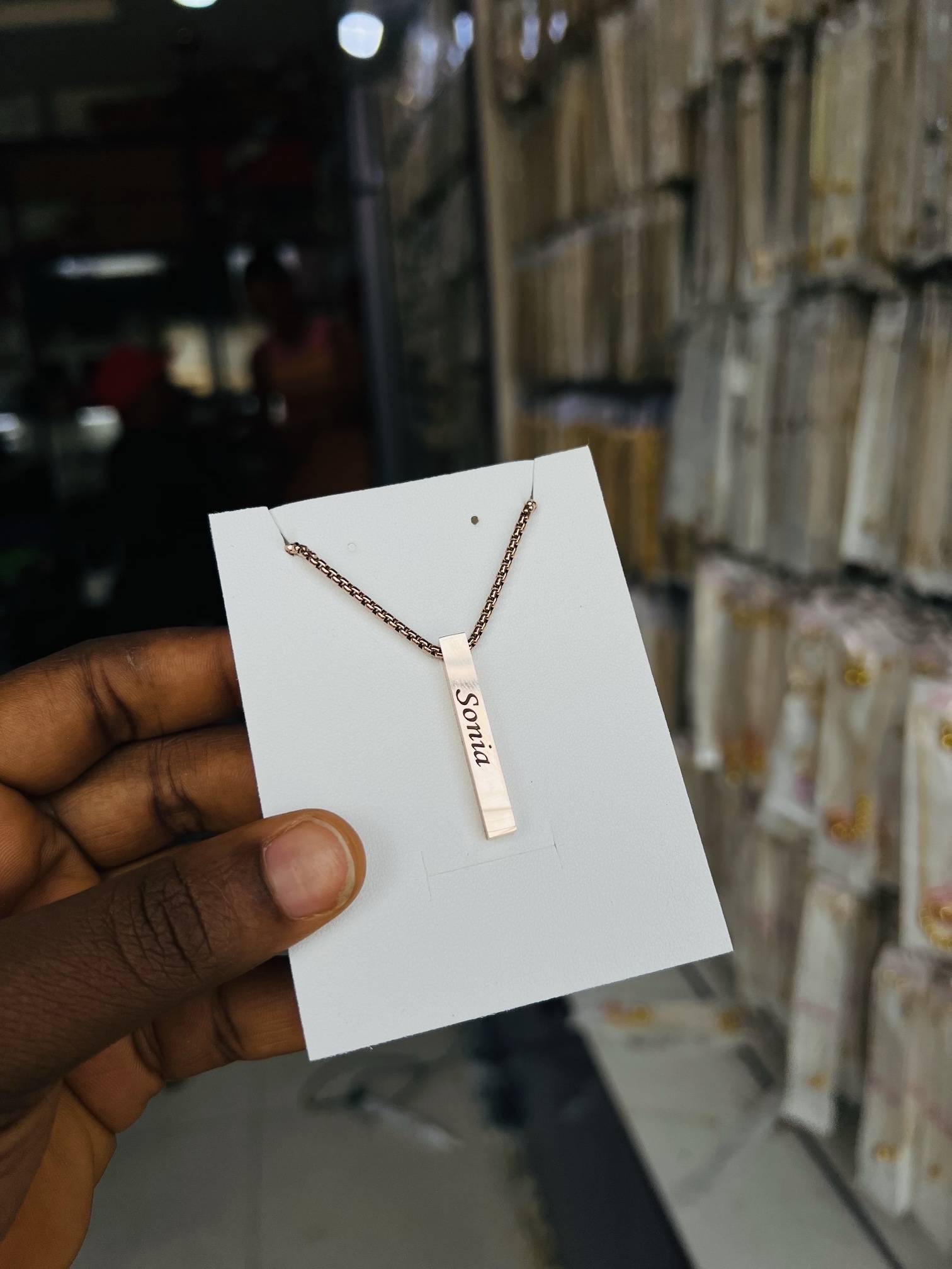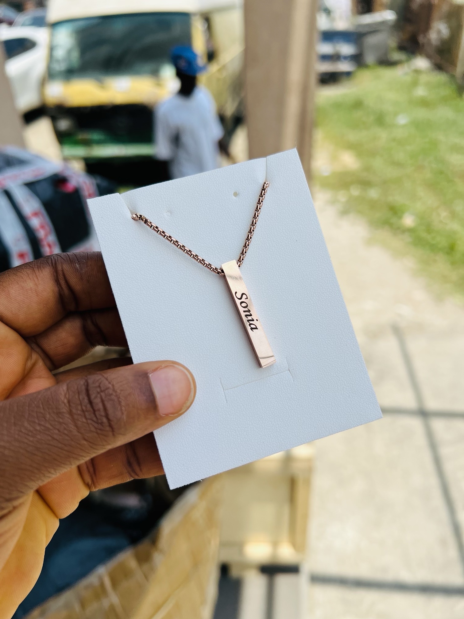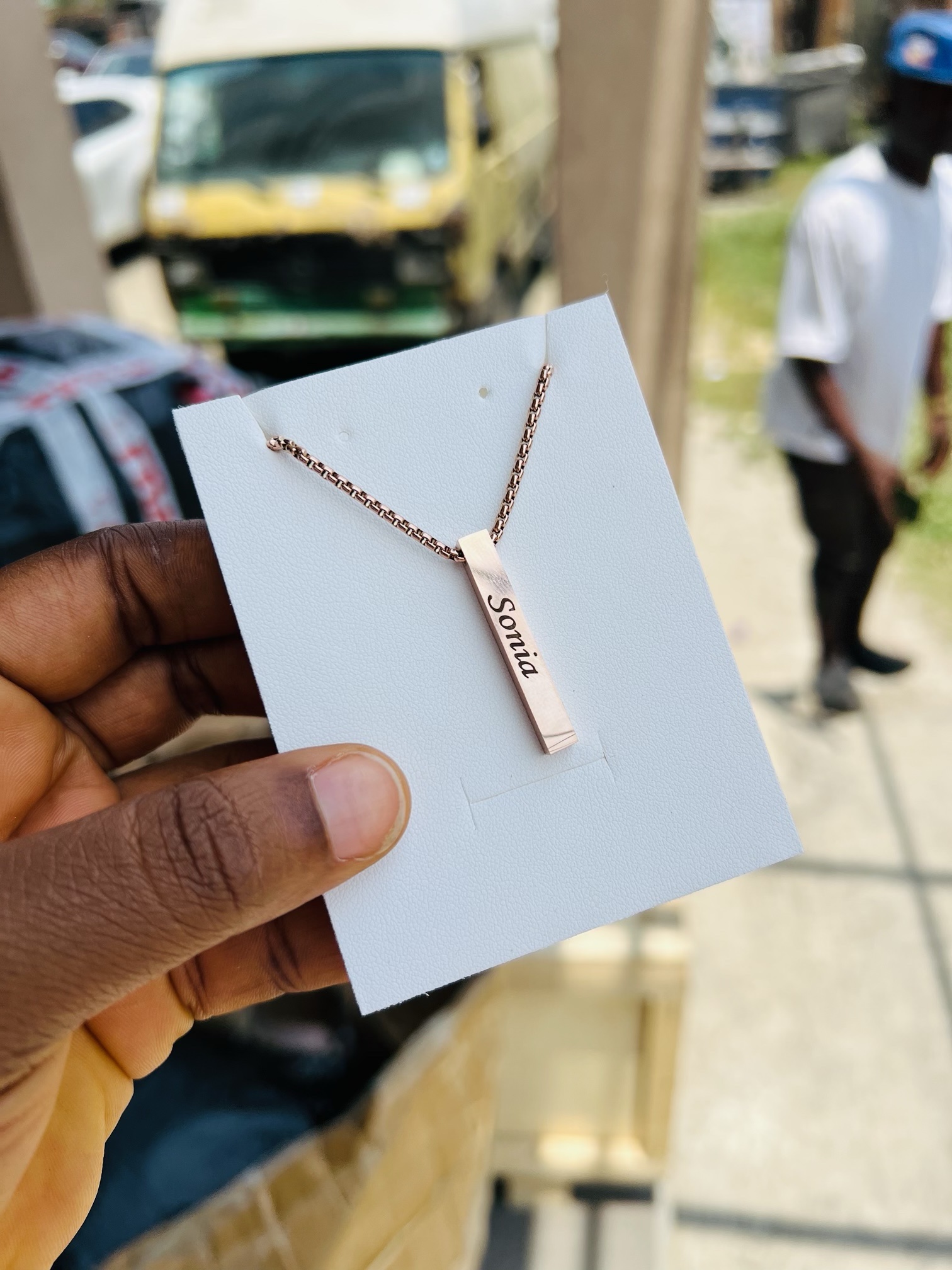 Previous Product Next Product Engraved Rose gold block necklace ₦4,599 Category: Customizables 36 in stock Engraved Rose gold block necklace quantity Buy Now Reviews (0) Reviews There are no reviews yet. Be the first to review “Engraved Rose gold block necklace” Cancel replyYour email address will not be published. Required fields are marked *Your rating * Rate… Perfect Good Average Not that bad Very poor Your review *Name * Email * Save my name, email, and website in this browser for the next time I comment. Opens in a new window Tweet This Product Opens in a new window Share on Facebook Opens in a new window Pin This Product Opens in a new window Mail This Product Related products Quick View Quick View CustomizablesCriss cross engraved black combo ₦14,099 Buy Now Quick View Quick View CustomizablesEngraved Silver Dog tag necklace ₦4,500 Buy Now Quick View Quick View CustomizablesBlack mini Cuban bracelet ₦4,500 Buy Now