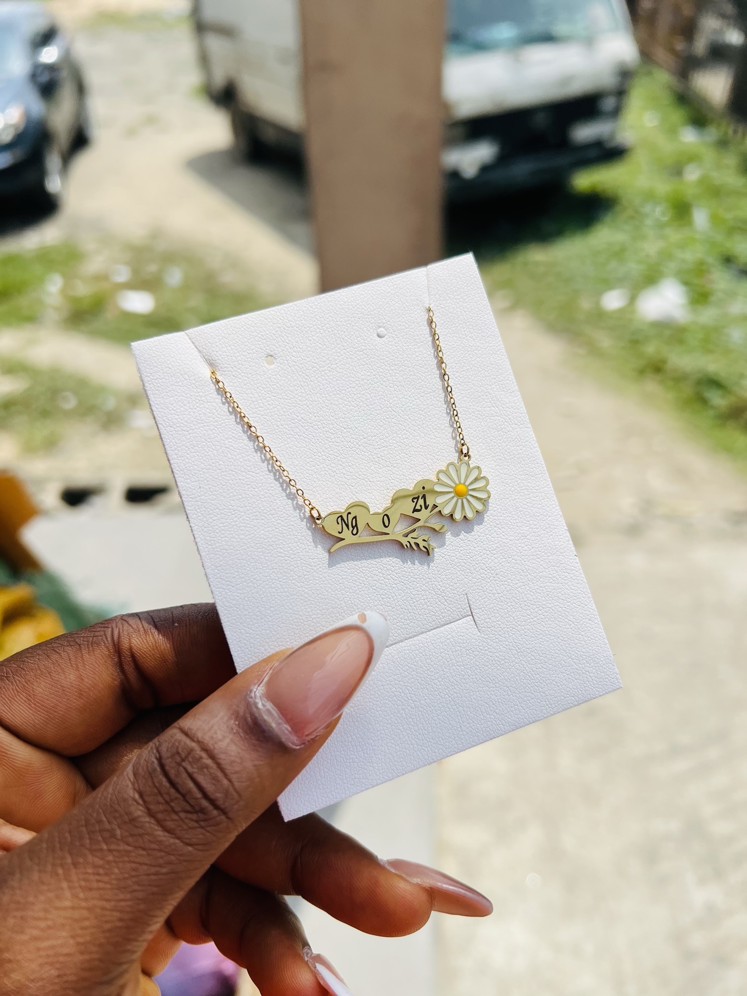 Previous Product Next Product Engraved sunflower necklace ₦6,500 Category: Customizables 30 in stock Engraved sunflower necklace quantity Buy Now Reviews (0) Reviews There are no reviews yet. Be the first to review “Engraved sunflower necklace” Cancel replyYour email address will not be published. Required fields are marked *Your rating * Rate… Perfect Good Average Not that bad Very poor Your review *Name * Email * Save my name, email, and website in this browser for the next time I comment. Opens in a new window Tweet This Product Opens in a new window Share on Facebook Opens in a new window Pin This Product Opens in a new window Mail This Product Related products Quick View Quick View CustomizablesGold Engraved block necklace ₦4,500 Buy Now Quick View Quick View CustomizablesBlack stretchy bracelet ₦6,599 Buy Now Quick View Out of Stock Quick View CustomizablesBaby Gold engraved bracelet with crown charms ₦4,500 Read more
