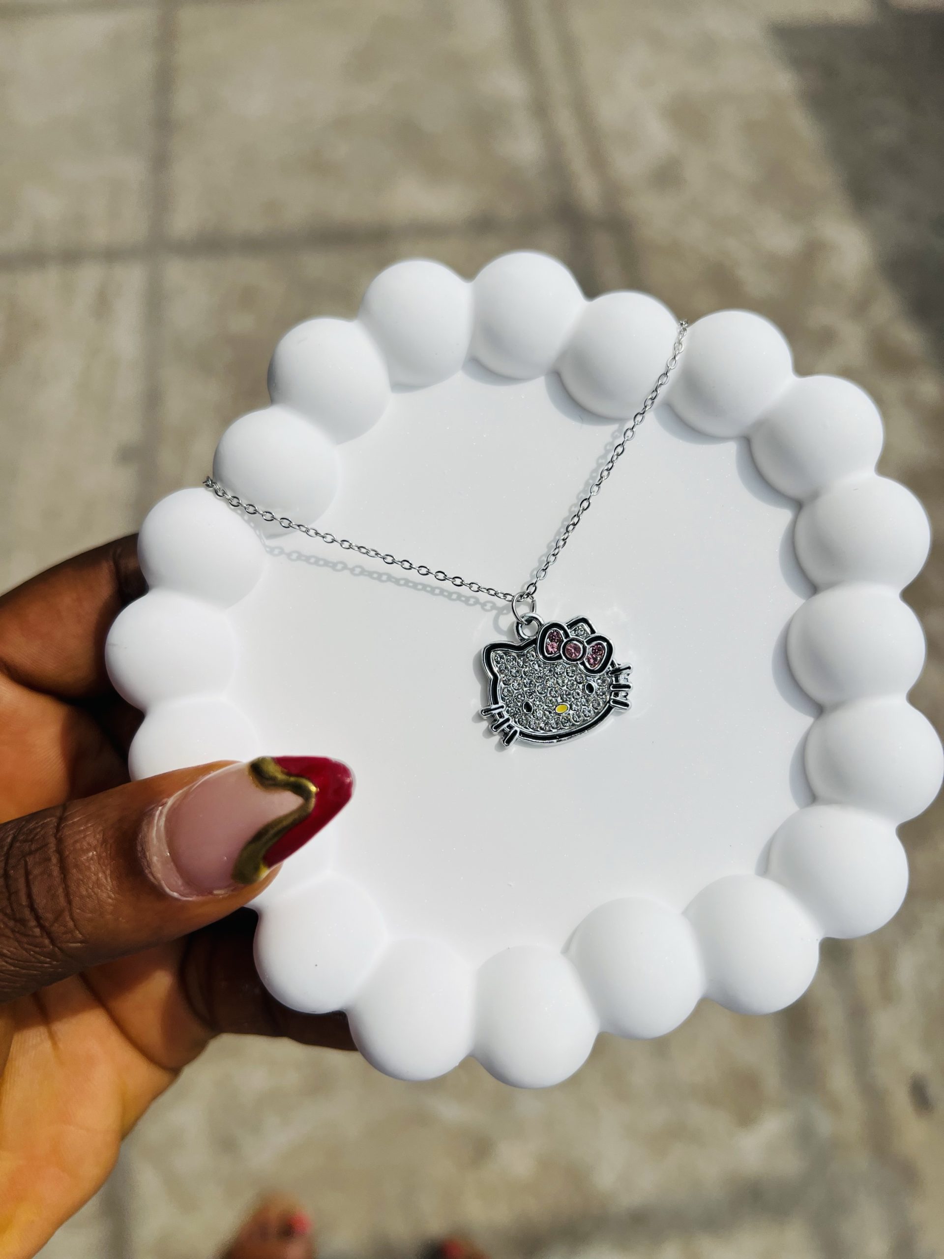 Previous Product Next Product Hello kitty silver necklace ₦1,399 Category: Necklaces 5 in stock Hello kitty silver necklace quantity Buy Now Reviews (0) Reviews There are no reviews yet. Be the first to review “Hello kitty silver necklace” Cancel replyYour email address will not be published. Required fields are marked *Your rating * Rate… Perfect Good Average Not that bad Very poor Your review *Name * Email * Save my name, email, and website in this browser for the next time I comment. Opens in a new window Tweet This Product Opens in a new window Share on Facebook Opens in a new window Pin This Product Opens in a new window Mail This Product Related products Quick View Quick View NecklacesCZ QUALITY TENNIS NECKLACE ₦5,500 Buy Now Quick View Quick View NecklacesTennis gold necklace 016 ₦3,099 Buy Now Quick View Quick View NecklacesTennis gold necklace 012 ₦3,099 Buy Now