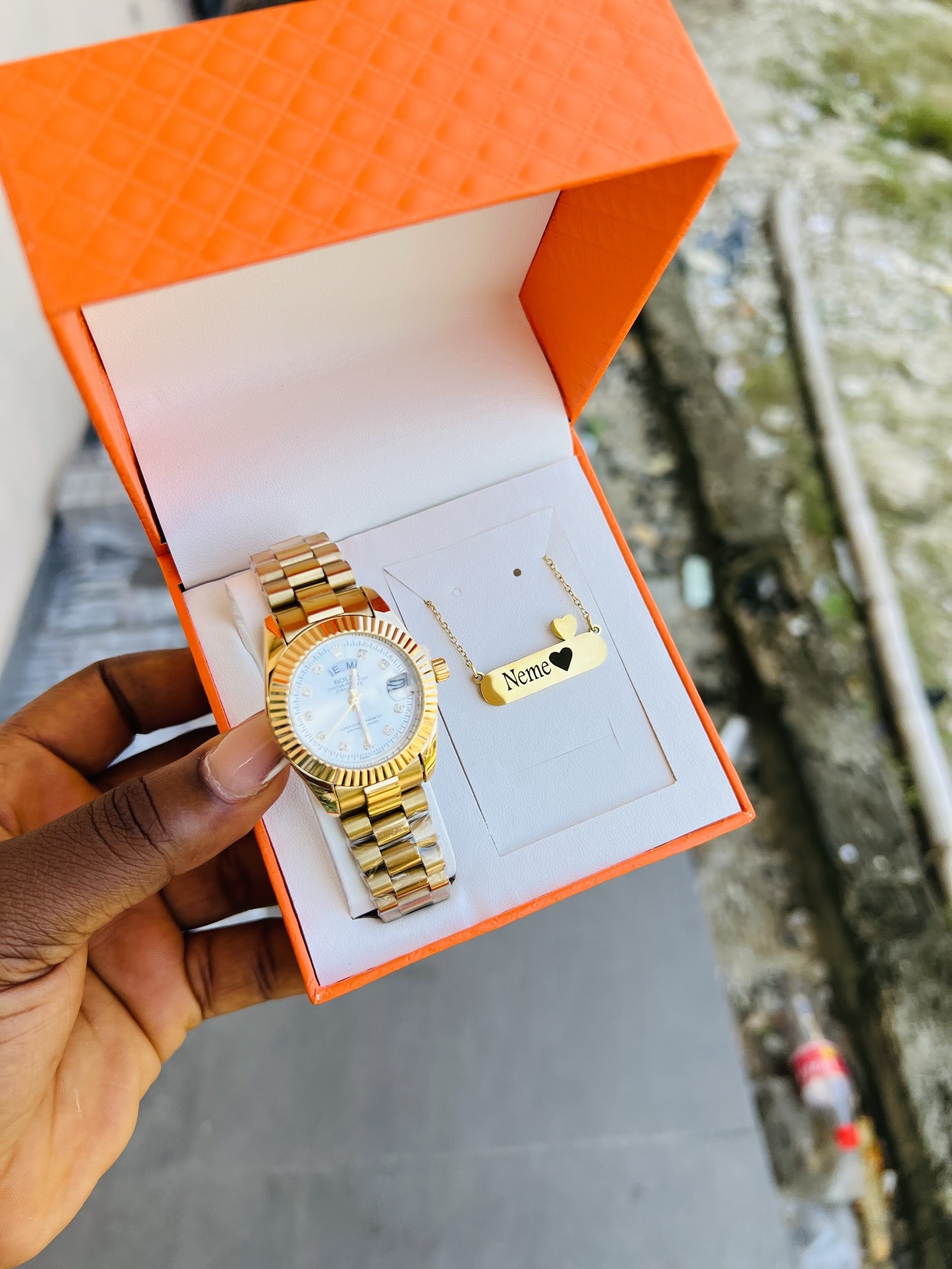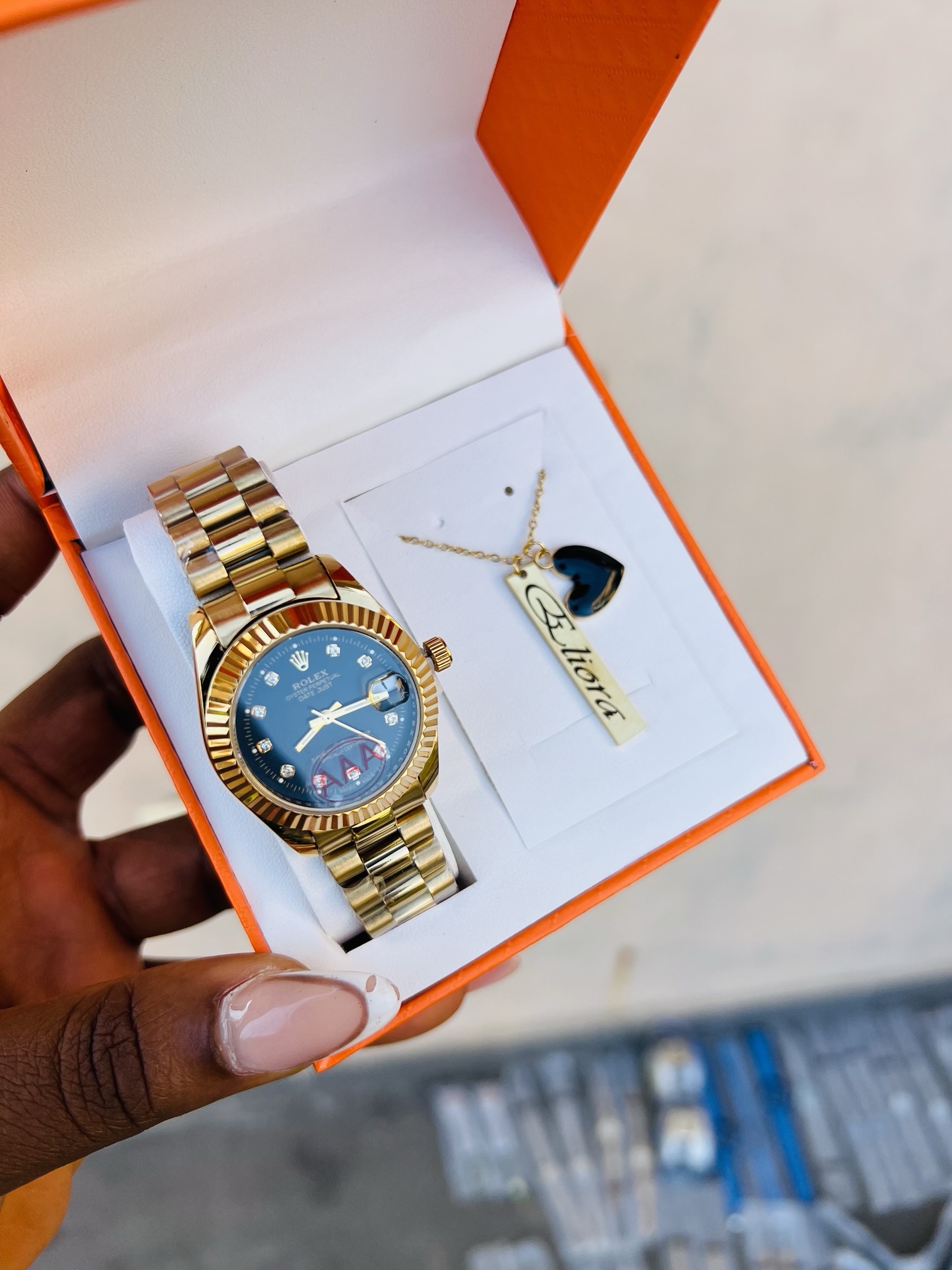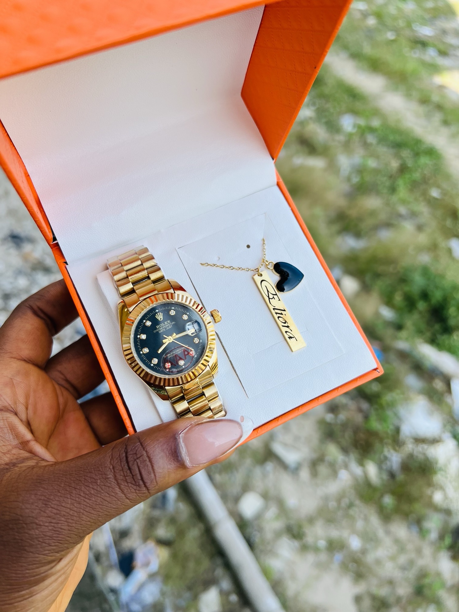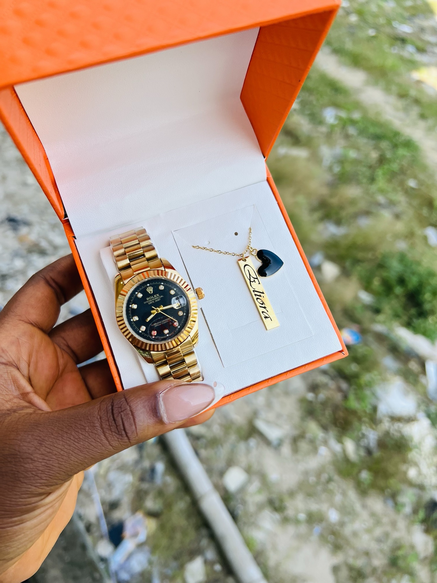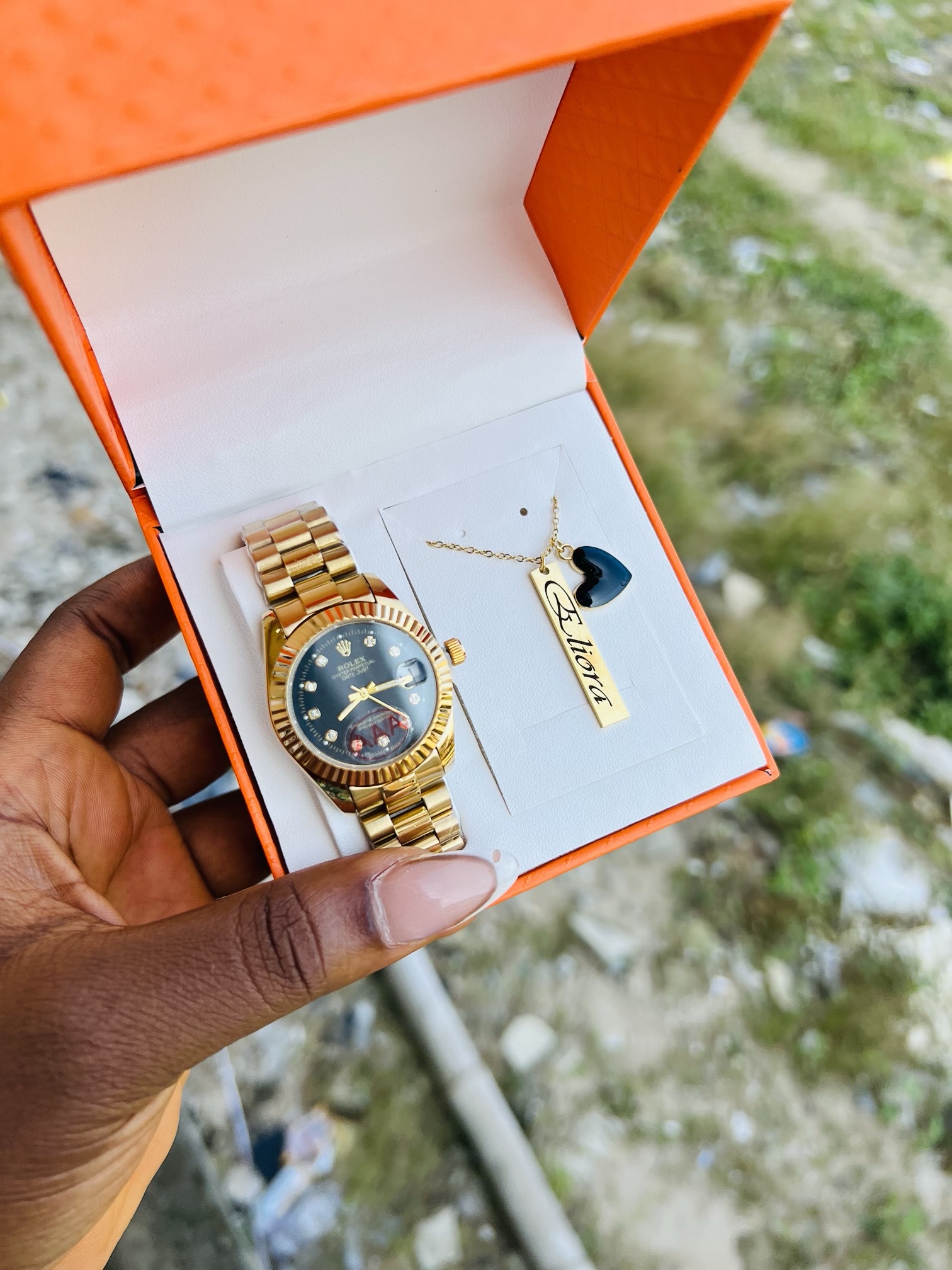 Previous Product Next Product Engraved Rolex black face combo with exact box ₦22,500 Category: Customizables 10 in stock Engraved Rolex black face combo with exact box quantity Buy Now Reviews (0) Reviews There are no reviews yet. Be the first to review “Engraved Rolex black face combo with exact box” Cancel replyYour email address will not be published. Required fields are marked *Your rating * Rate… Perfect Good Average Not that bad Very poor Your review *Name * Email * Save my name, email, and website in this browser for the next time I comment. Opens in a new window Tweet This Product Opens in a new window Share on Facebook Opens in a new window Pin This Product Opens in a new window Mail This Product Related products Quick View Quick View CustomizablesRolex watch and Barcode bracelet ₦21,500 Buy Now Quick View Quick View CustomizablesGold flat necklace and bracelet no box ₦11,099 Buy Now Quick View Out of Stock Quick View CustomizablesGold circle locket with paper box ₦15,900 Read more