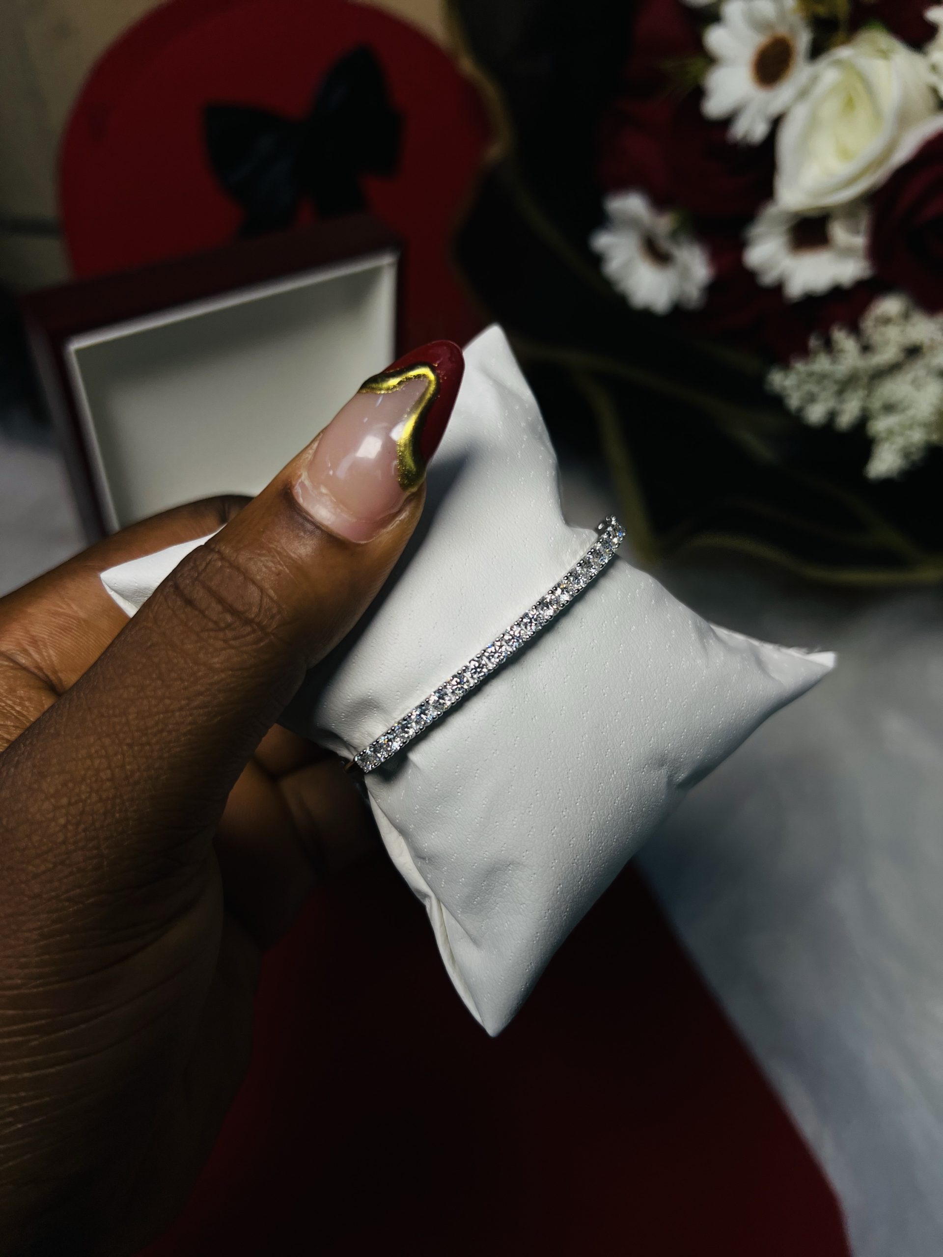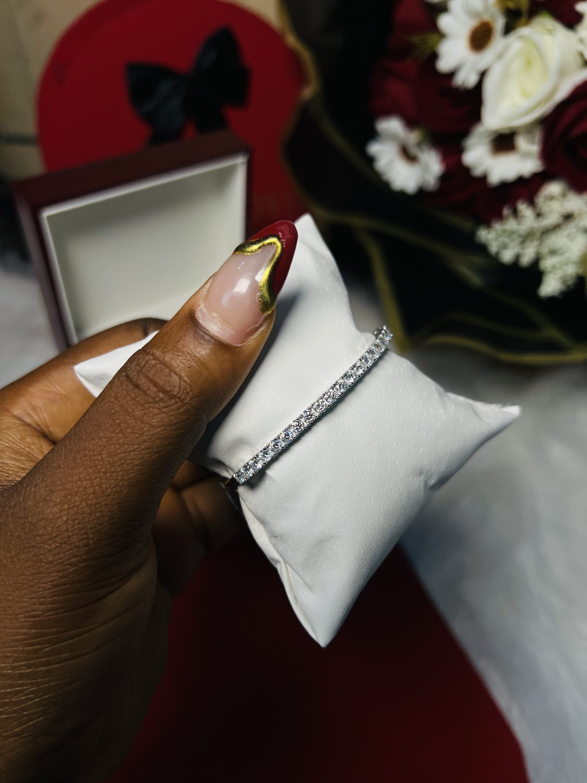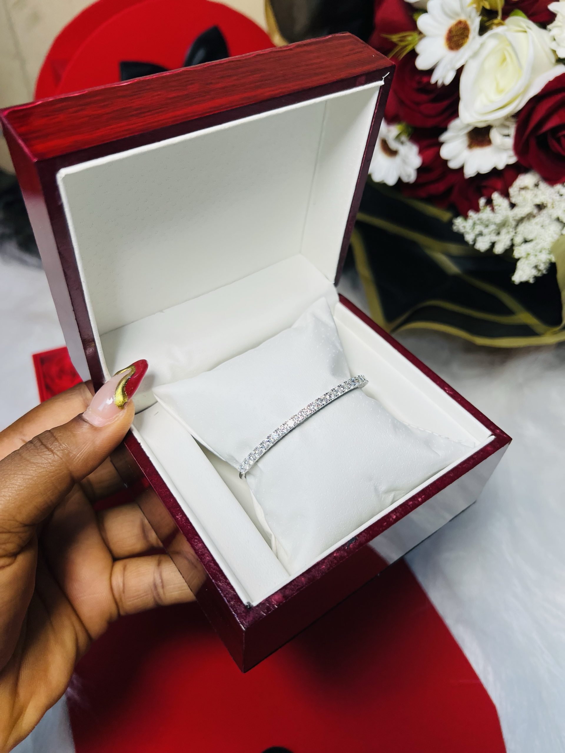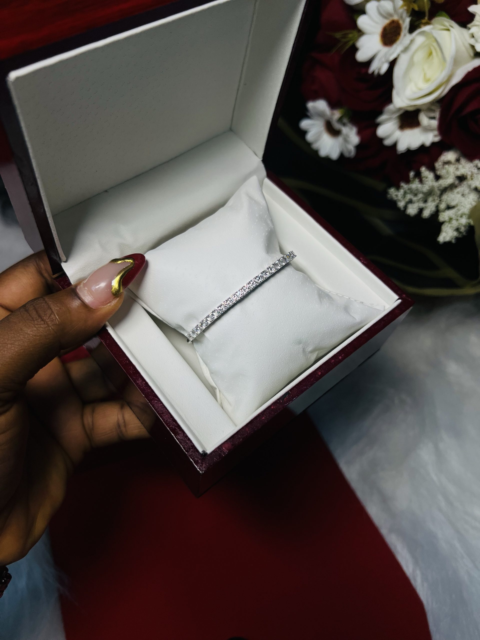 This is a certified synthetic moissanite bracelet made with 925 silver, weighing 6.46g.