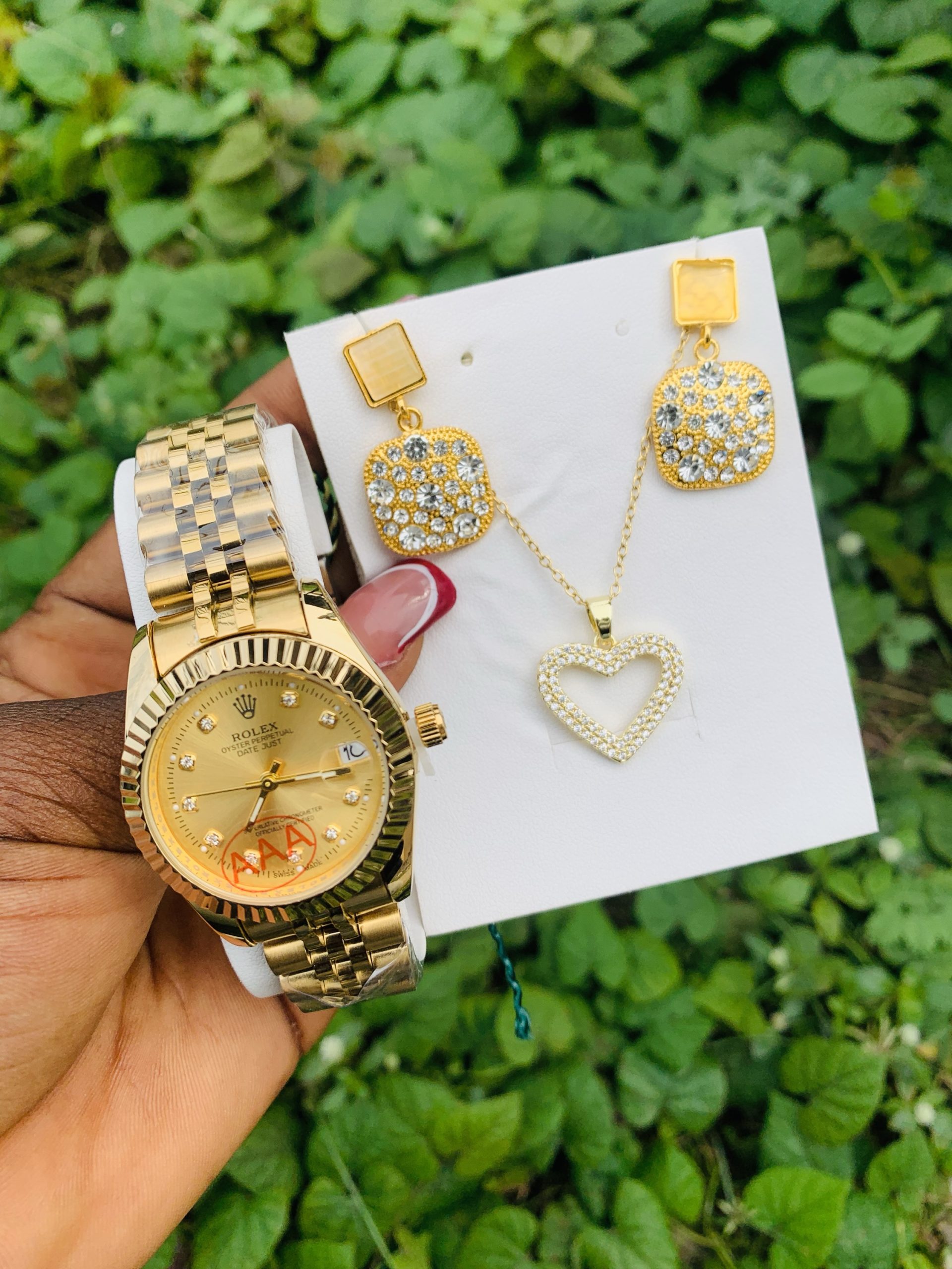 Previous Product Next Product Rolex oyster plain watch combo ₦13,000 Categories: Earrings, Necklaces, Watches 12 in stock Rolex oyster plain watch combo quantity Buy Now Reviews (0) Reviews There are no reviews yet. Be the first to review “Rolex oyster plain watch combo” Cancel replyYour email address will not be published. Required fields are marked *Your rating * Rate… Perfect Good Average Not that bad Very poor Your review *Name * Email * Save my name, email, and website in this browser for the next time I comment. Opens in a new window Tweet This Product Opens in a new window Share on Facebook Opens in a new window Pin This Product Opens in a new window Mail This Product Related products Quick View Quick View Earrings, NecklacesLuxury steel gold set comes with exact box 017 ₦2,500 Buy Now Quick View Quick View Bracelets, Earrings, Necklaces, RingsMD SILVER LUXURY OWAMBE SET ₦18,000 Buy Now Quick View Quick View Earrings, NecklacesCherry dainty necklace 004 ₦1,700 Buy Now