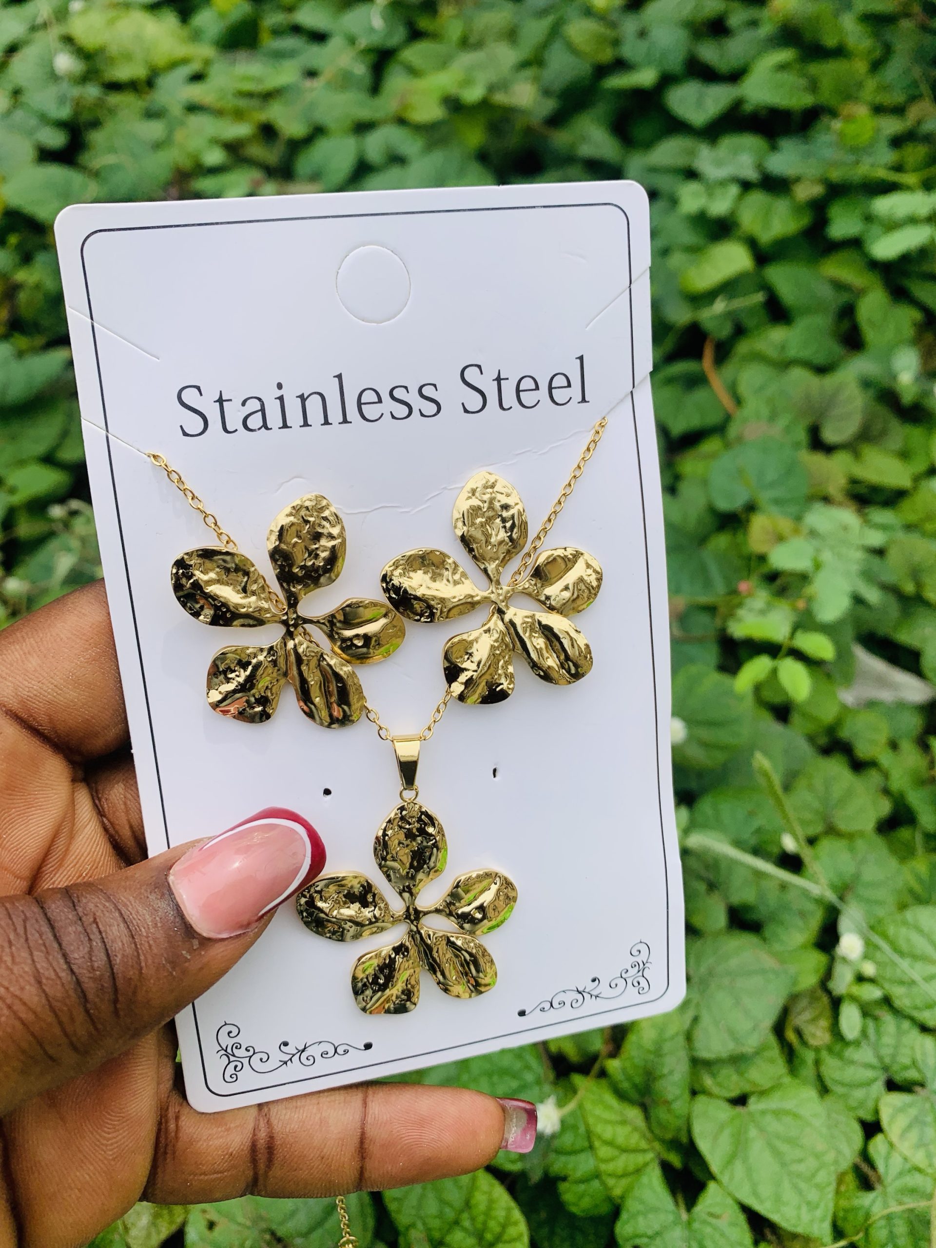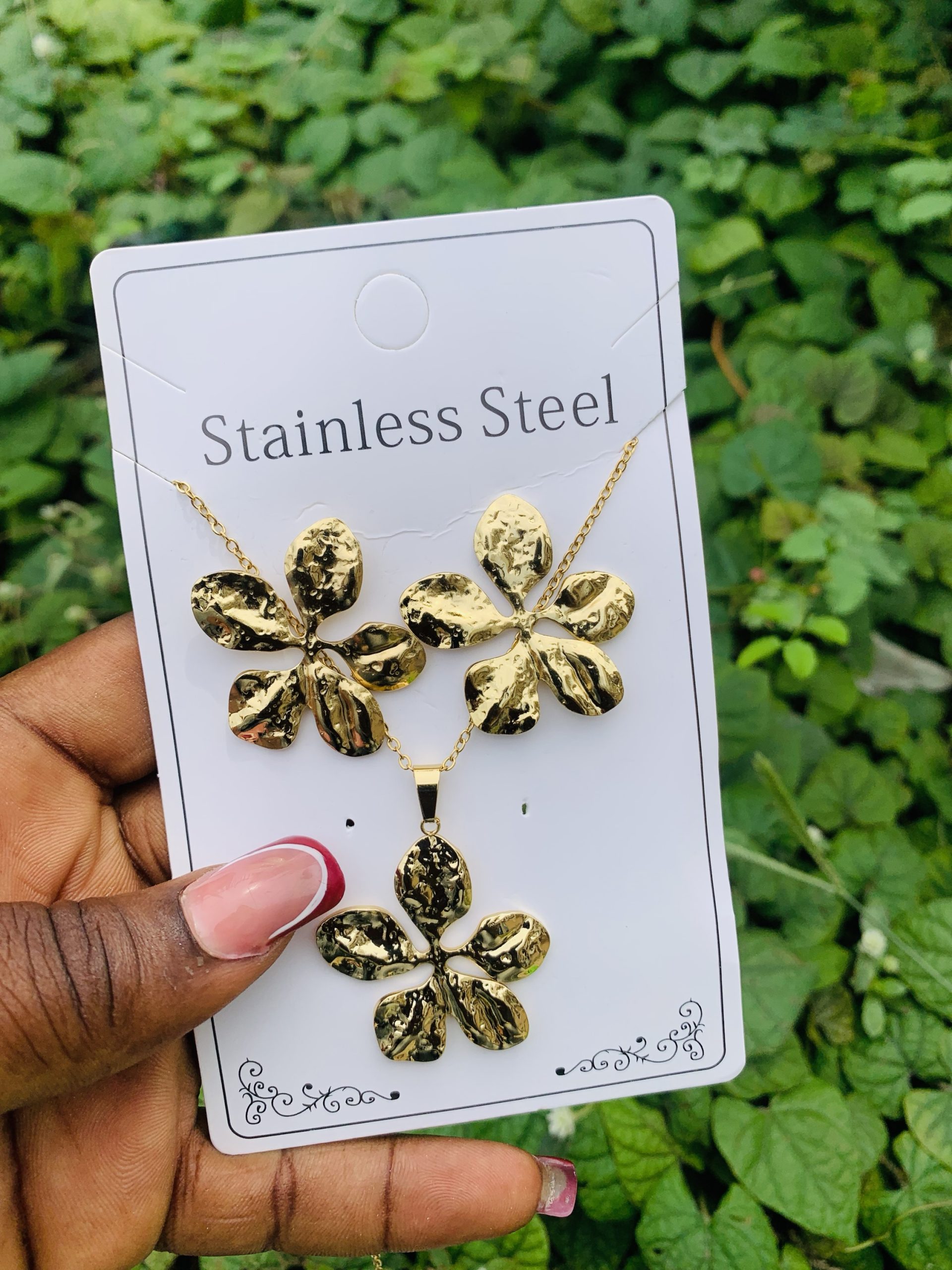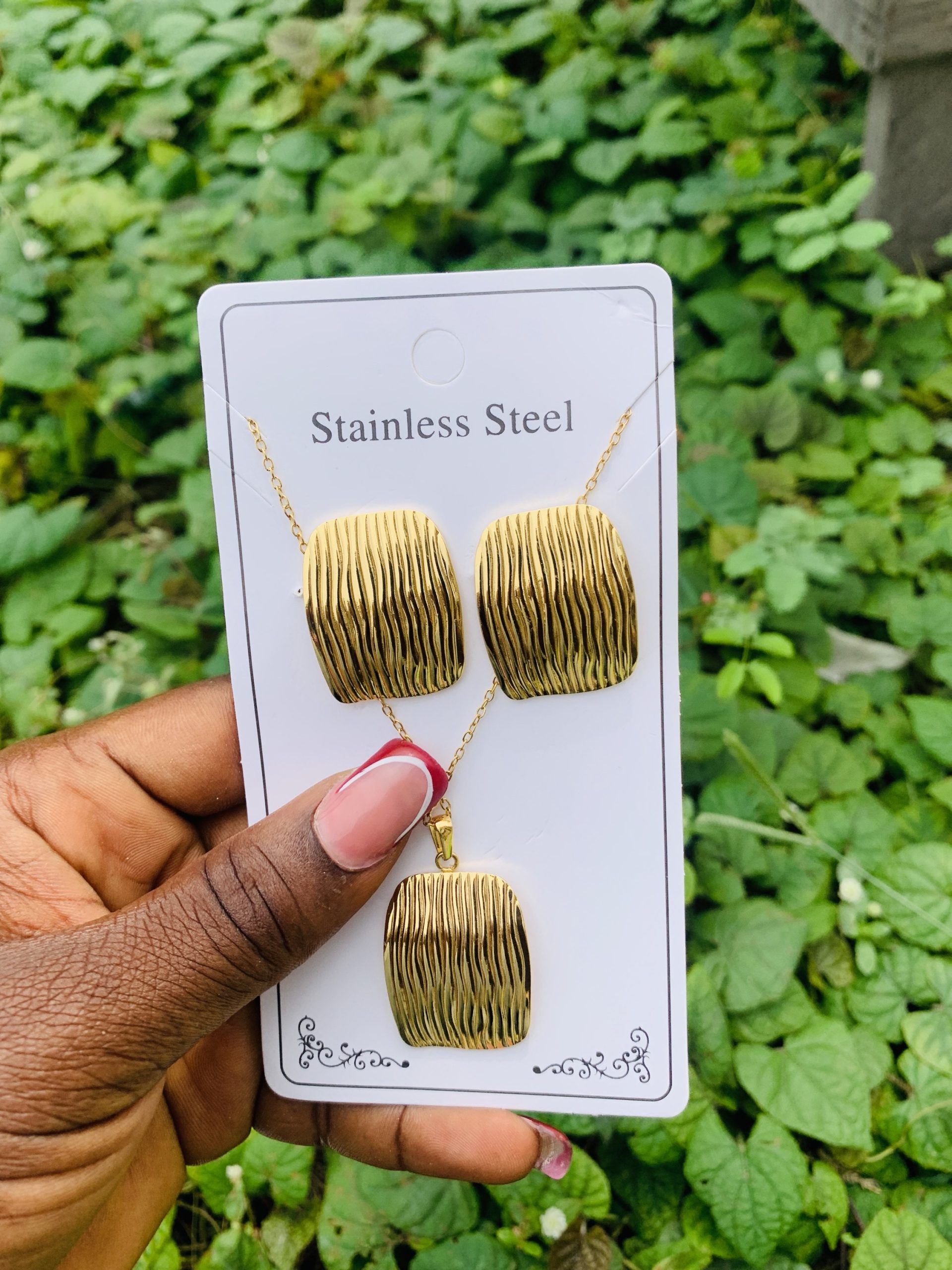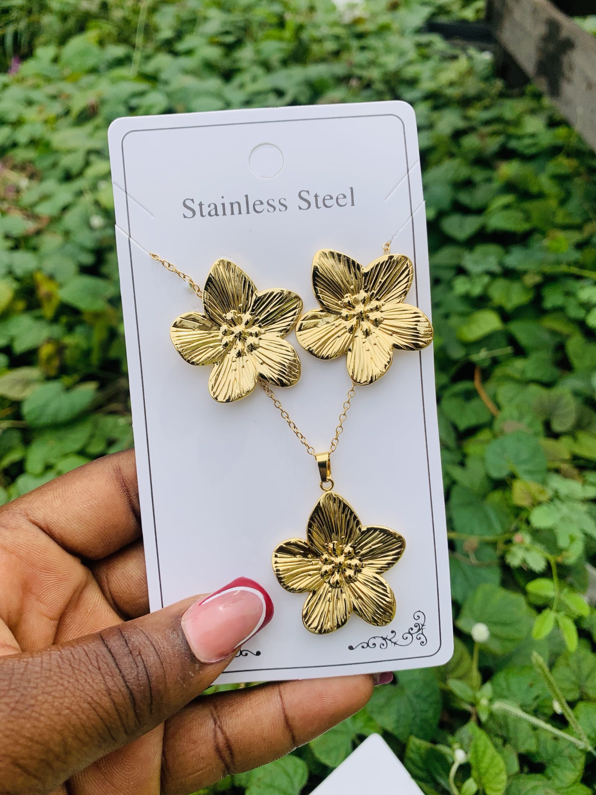 Previous Product Next Product Stainless steel gold set 004 ₦1,500 Categories: Earrings, Necklaces 12 in stock Stainless steel gold set 004 quantity Buy Now Reviews (0) Reviews There are no reviews yet. Be the first to review “Stainless steel gold set 004” Cancel replyYour email address will not be published. Required fields are marked *Your rating * Rate… Perfect Good Average Not that bad Very poor Your review *Name * Email * Save my name, email, and website in this browser for the next time I comment. Opens in a new window Tweet This Product Opens in a new window Share on Facebook Opens in a new window Pin This Product Opens in a new window Mail This Product Related products Quick View Quick View Earrings, NecklacesYM COMBO 5 ball gold set ₦3,000 Buy Now Quick View Quick View Earrings, NecklacesStainless steel gold set 020 ₦1,699 Buy Now Quick View Out of Stock Quick View EarringsKorean statement earring 026 ₦1,500 Read more