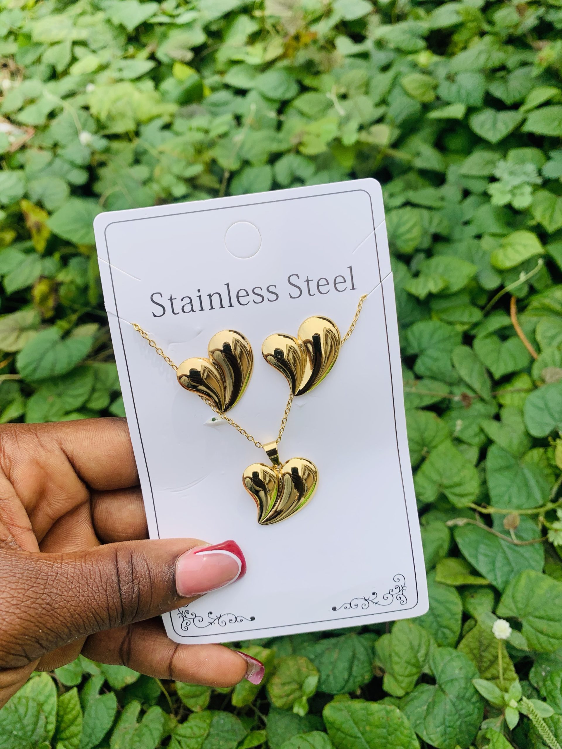 Previous Product Next Product Stainless steel gold set 009 ₦1,500 Categories: Earrings, Necklaces 11 in stock Stainless steel gold set 009 quantity Buy Now Reviews (0) Reviews There are no reviews yet. Be the first to review “Stainless steel gold set 009” Cancel replyYour email address will not be published. Required fields are marked *Your rating * Rate… Perfect Good Average Not that bad Very poor Your review *Name * Email * Save my name, email, and website in this browser for the next time I comment. Opens in a new window Tweet This Product Opens in a new window Share on Facebook Opens in a new window Pin This Product Opens in a new window Mail This Product Related products Quick View Quick View Bracelets, Earrings, Necklaces, RingsMD SILVER LUXURY OWAMBE SET ₦18,000 Buy Now Quick View Quick View Earrings, NecklacesYM PARTY COMBO SET OWAMBE STYLE ₦4,000 Buy Now Quick View Quick View Earrings, NecklacesLuxury steel gold set comes with exact box 004 ₦2,500 Buy Now