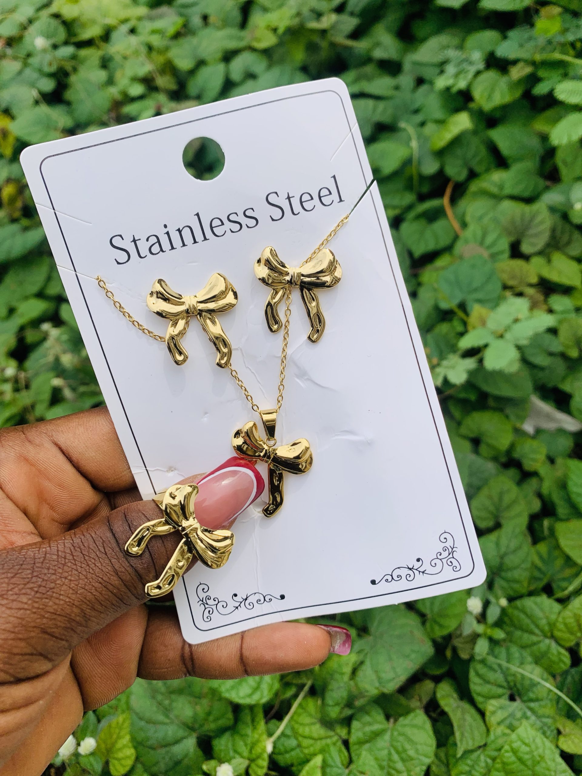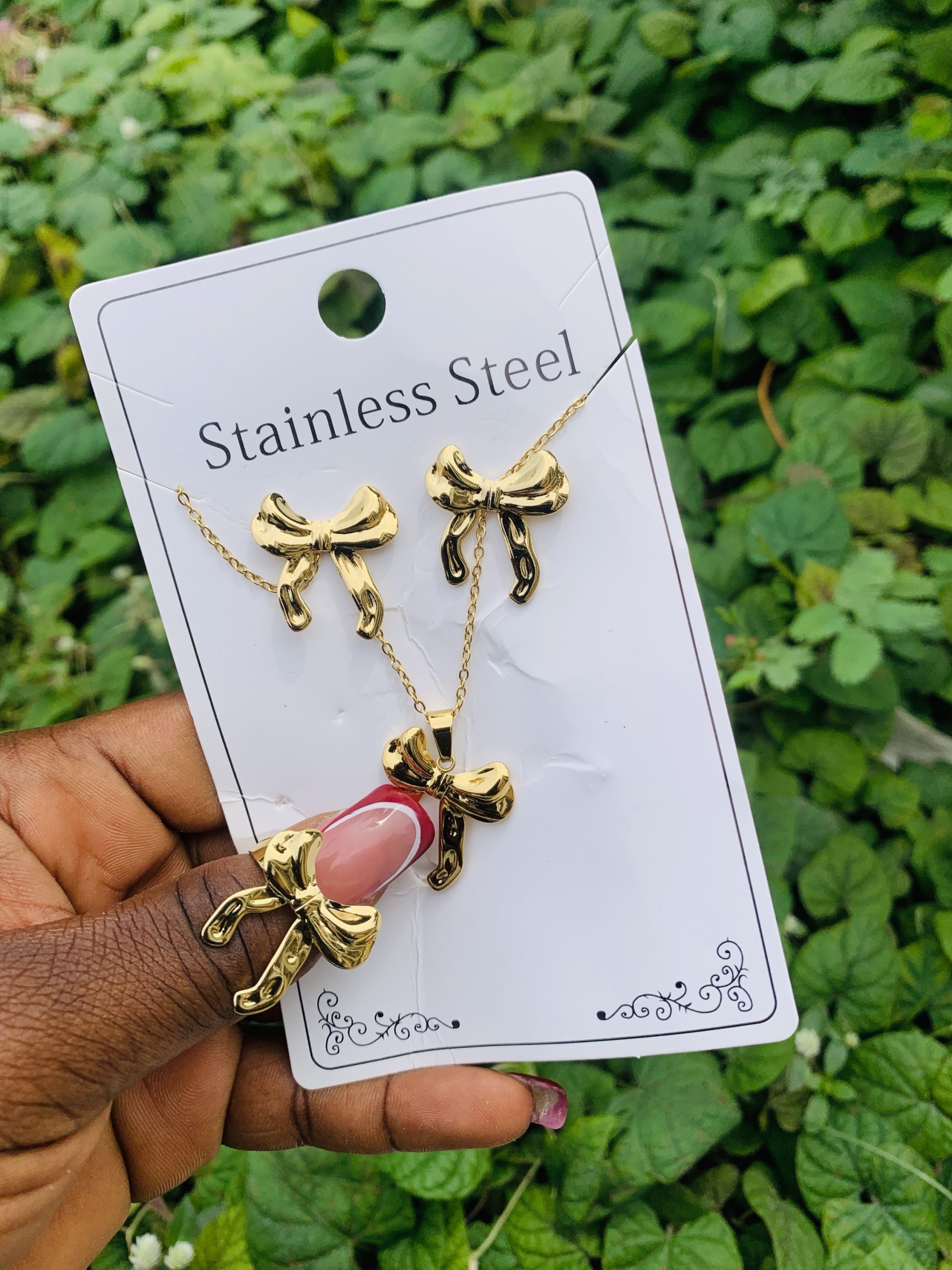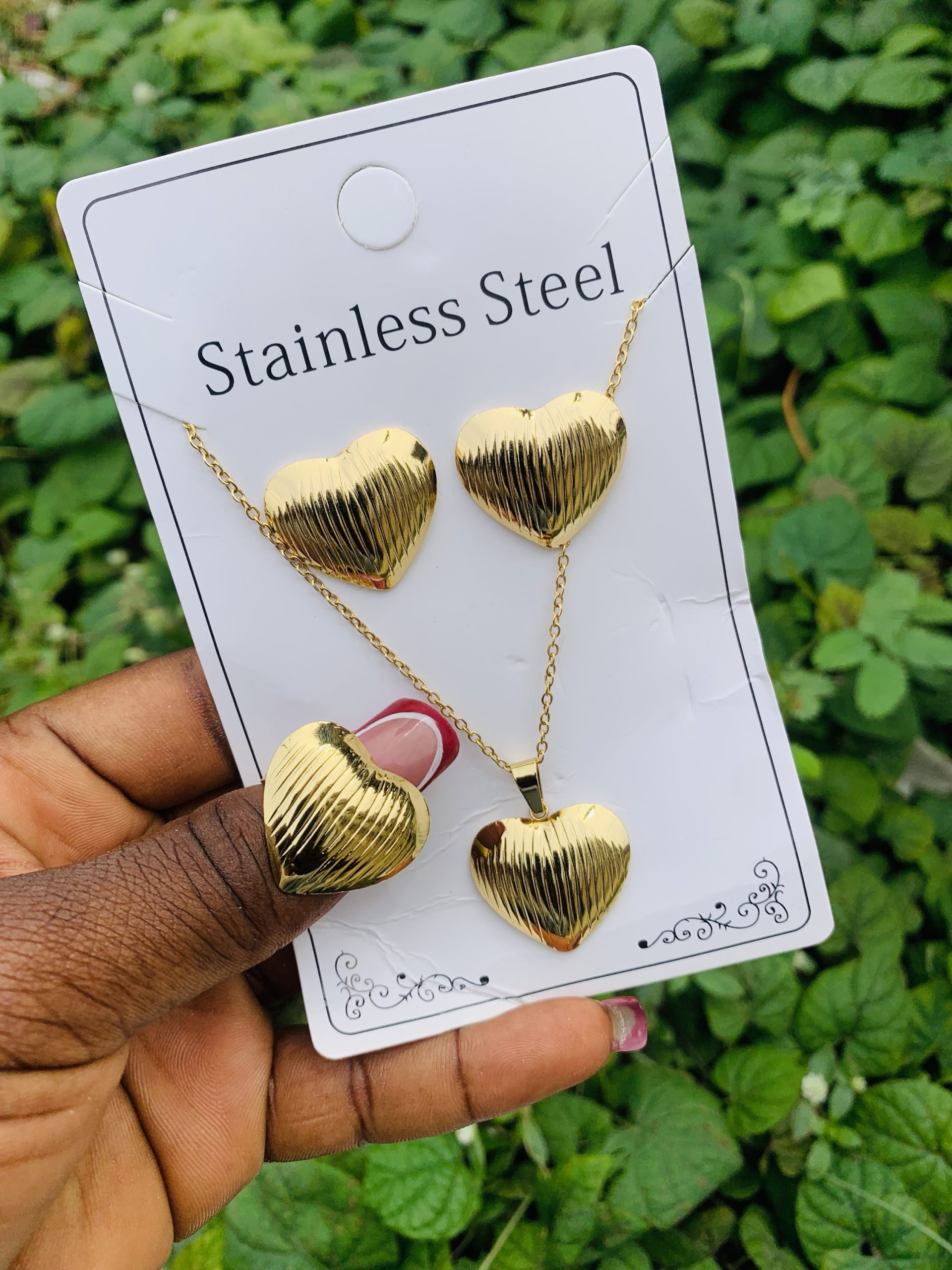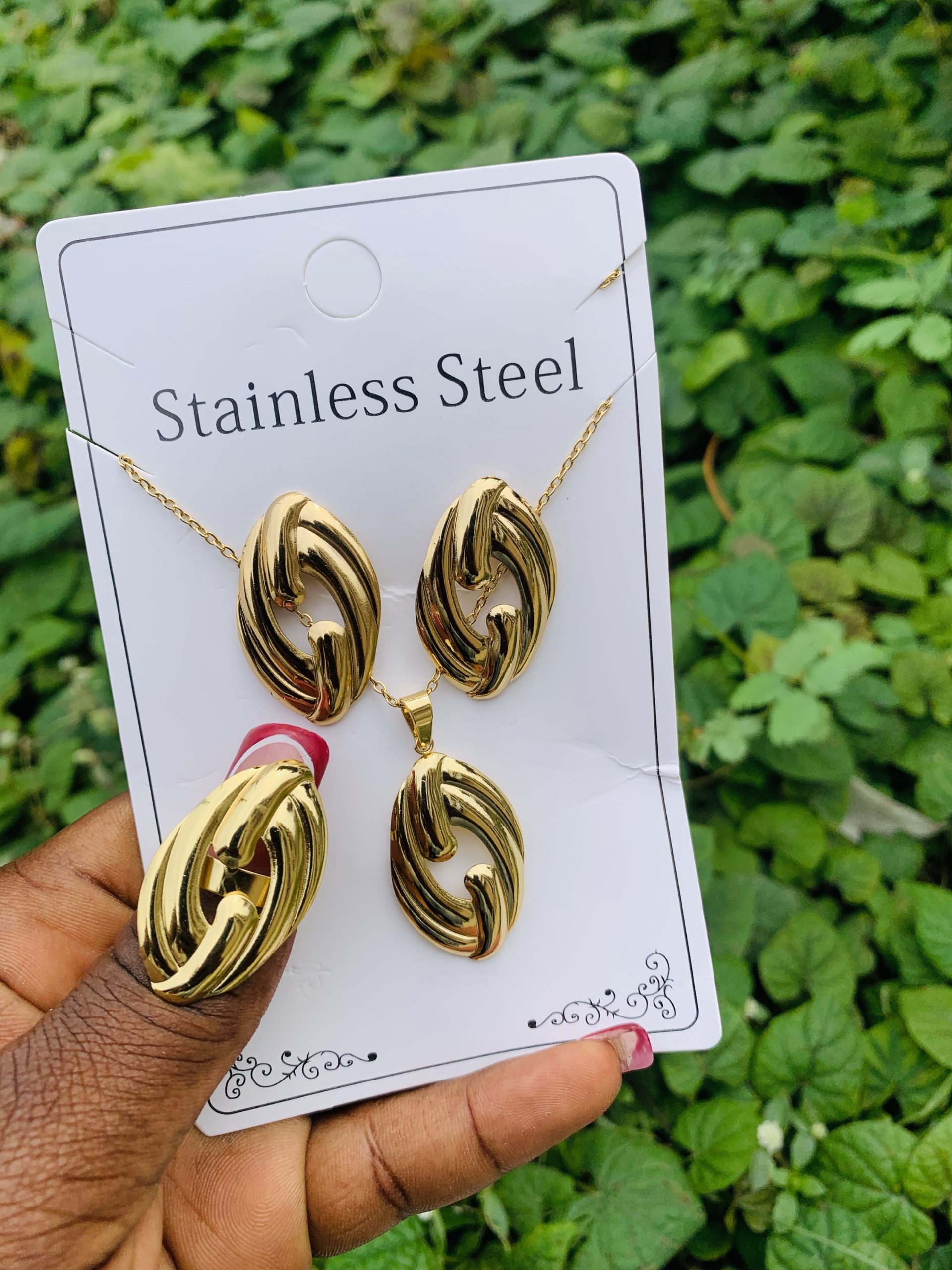 Previous Product Next Product Stainless steel gold set 018 ₦1,600 Categories: Earrings, Necklaces, Rings 10 in stock Stainless steel gold set 018 quantity Buy Now Reviews (0) Reviews There are no reviews yet. Be the first to review “Stainless steel gold set 018” Cancel replyYour email address will not be published. Required fields are marked *Your rating * Rate… Perfect Good Average Not that bad Very poor Your review *Name * Email * Save my name, email, and website in this browser for the next time I comment. Opens in a new window Tweet This Product Opens in a new window Share on Facebook Opens in a new window Pin This Product Opens in a new window Mail This Product Related products Quick View Quick View Earrings, NecklacesLuxury steel gold set comes in exact box 006 ₦2,500 Buy Now Quick View Quick View Earrings, NecklacesLuxury steel gold set comes with exact box 017 ₦2,500 Buy Now Quick View Quick View Earrings, NecklacesStainless steel gold set 018 ₦1,699 Buy Now