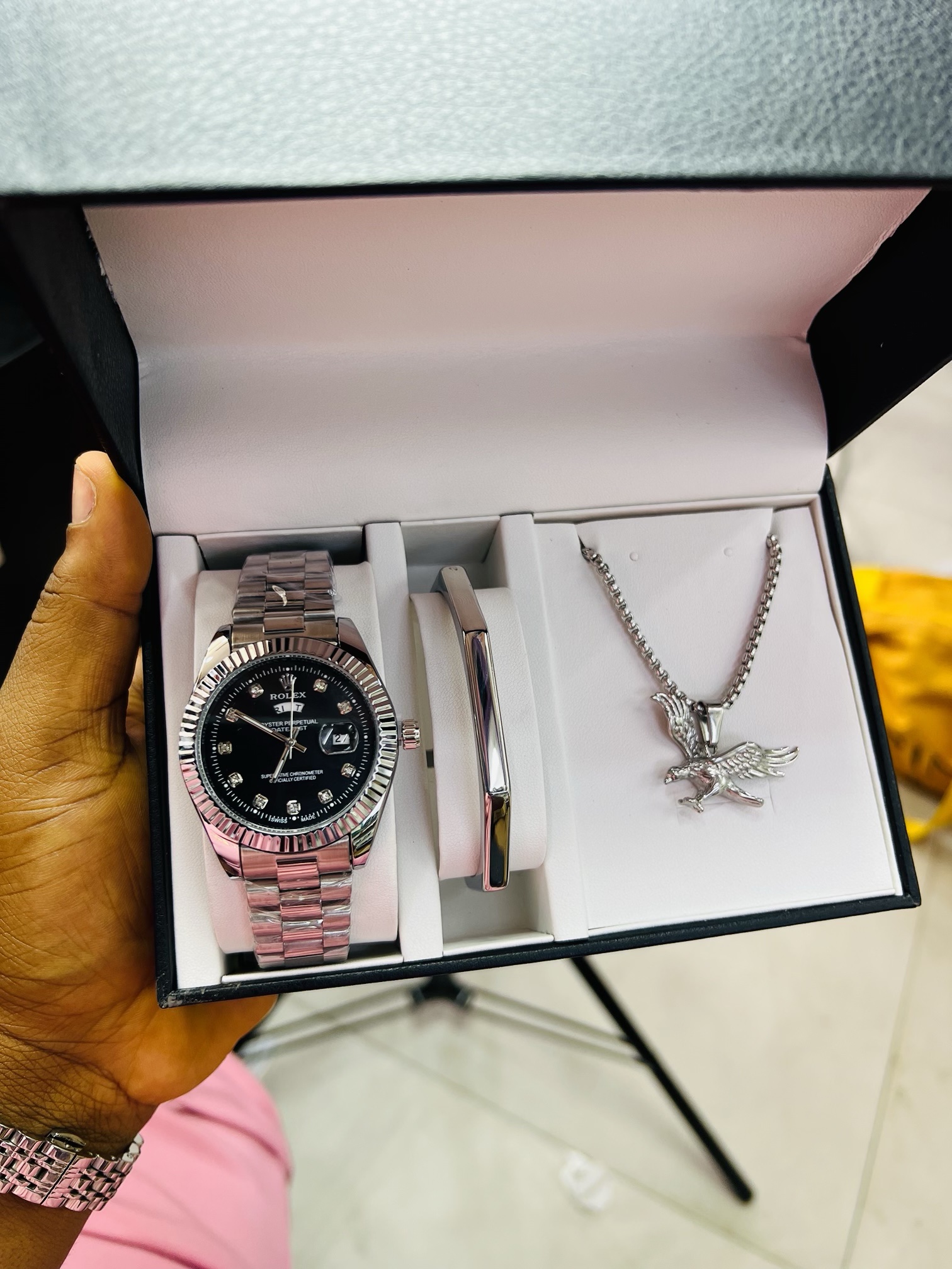 Previous Product Next Product Steel male watch combo no box 004 ₦17,099 Category: Watches 12 in stock Steel male watch combo no box 004 quantity Buy Now Reviews (0) Reviews There are no reviews yet. Be the first to review “Steel male watch combo no box 004” Cancel replyYour email address will not be published. Required fields are marked *Your rating * Rate… Perfect Good Average Not that bad Very poor Your review *Name * Email * Save my name, email, and website in this browser for the next time I comment. Opens in a new window Tweet This Product Opens in a new window Share on Facebook Opens in a new window Pin This Product Opens in a new window Mail This Product Related products Quick View Quick View WatchesT5 black gold face chronograph watch ₦28,000 Buy Now Quick View Out of Stock Quick View WatchesBlack strap Richard Mille with Formica box! ₦22,500 Read more Quick View Quick View WatchesG shock orbit ash red faced boxed ₦10,000 Buy Now