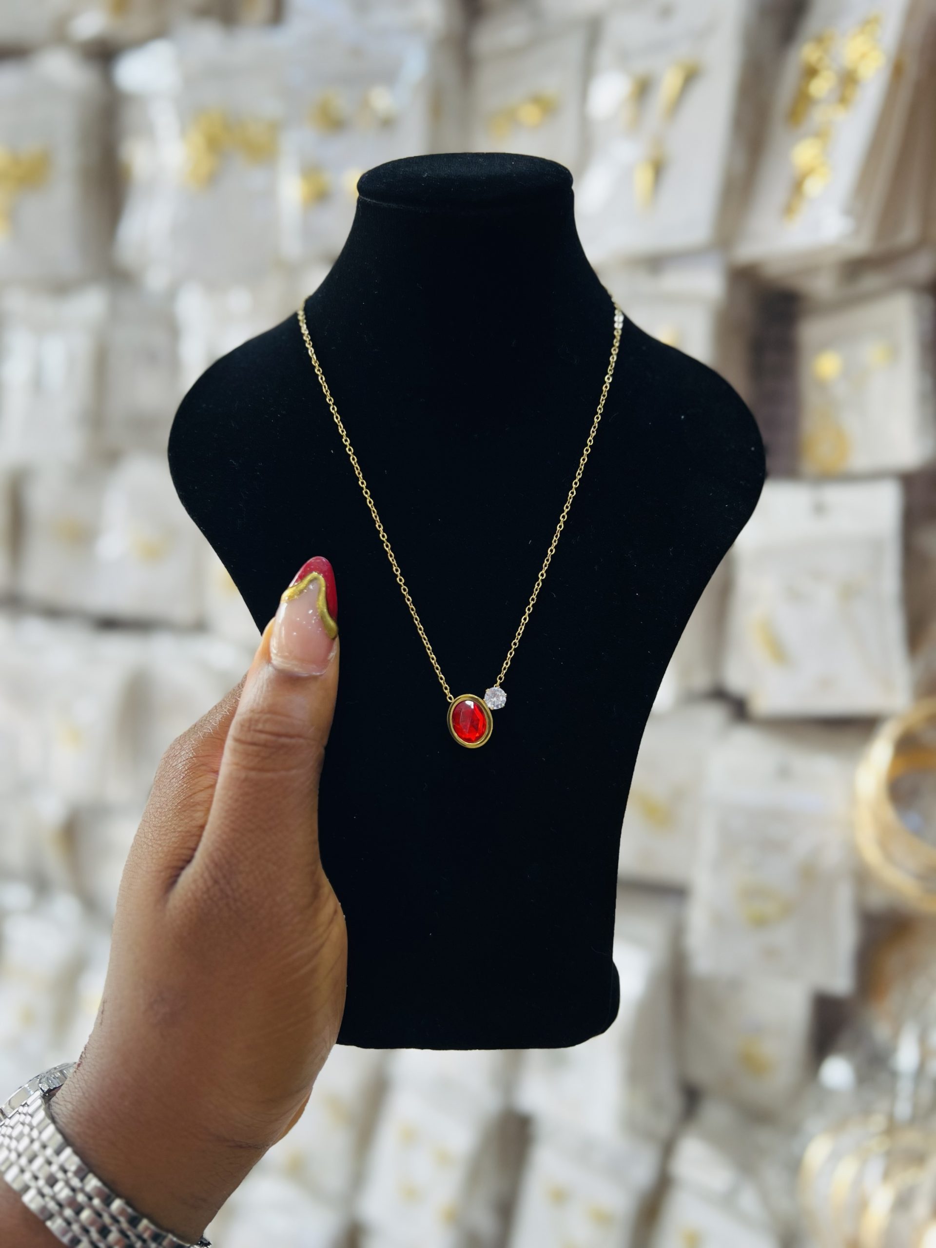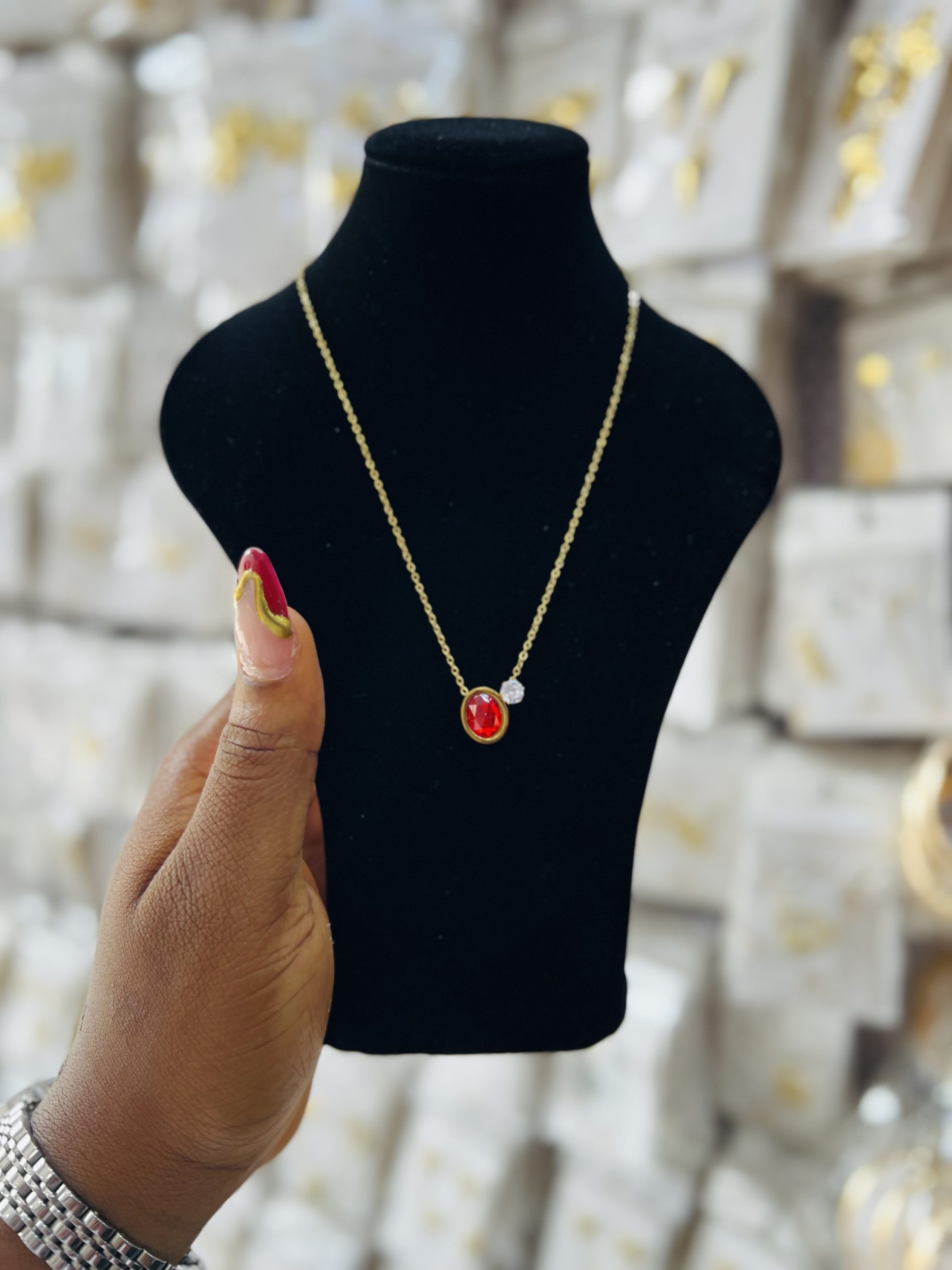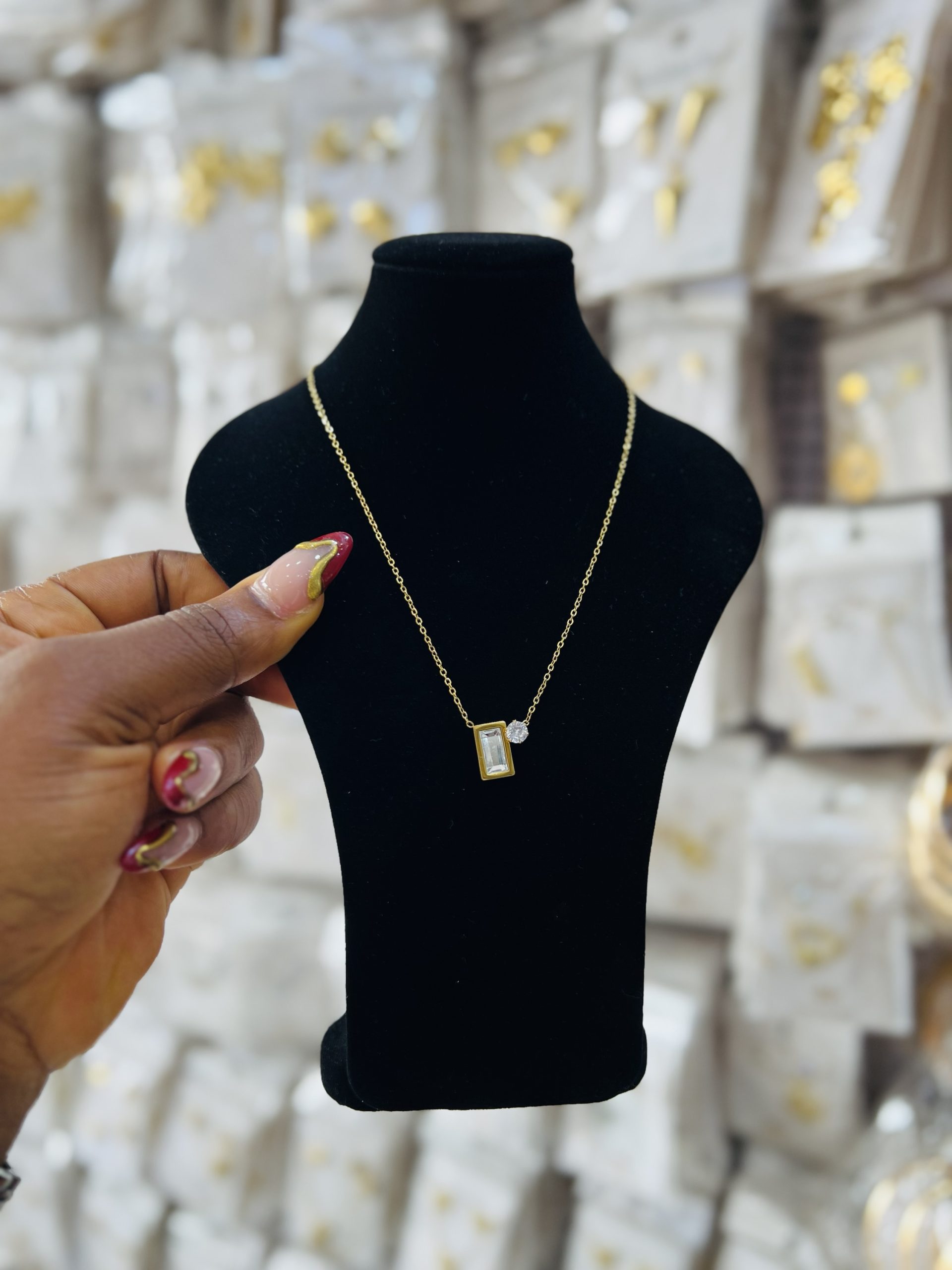 Previous Product Next Product Steel necklace 004 ₦1,399 Category: Necklaces 10 in stock Steel necklace 004 quantity Buy Now Reviews (0) Reviews There are no reviews yet. Be the first to review “Steel necklace 004” Cancel replyYour email address will not be published. Required fields are marked *Your rating * Rate… Perfect Good Average Not that bad Very poor Your review *Name * Email * Save my name, email, and website in this browser for the next time I comment. Opens in a new window Tweet This Product Opens in a new window Share on Facebook Opens in a new window Pin This Product Opens in a new window Mail This Product Related products Quick View Quick View Moissanite Jewelries, NecklacesTeddy Moissanite necklace ₦45,000 Buy Now Quick View Quick View NecklacesTennis gold necklace 018 ₦3,099 Buy Now Quick View Quick View Bracelets, NecklacesFashion arm cuff 004 ₦1,599 Buy Now