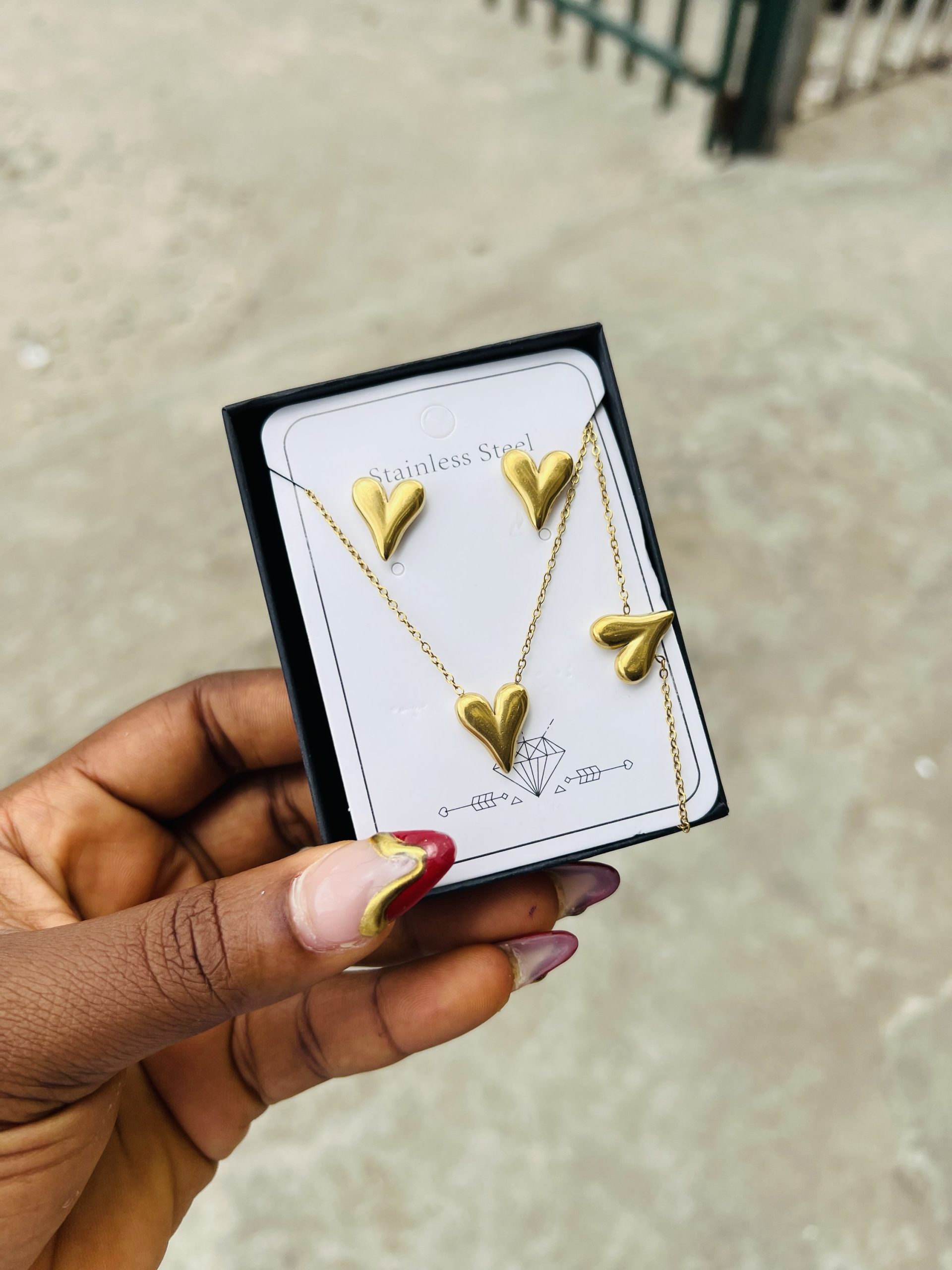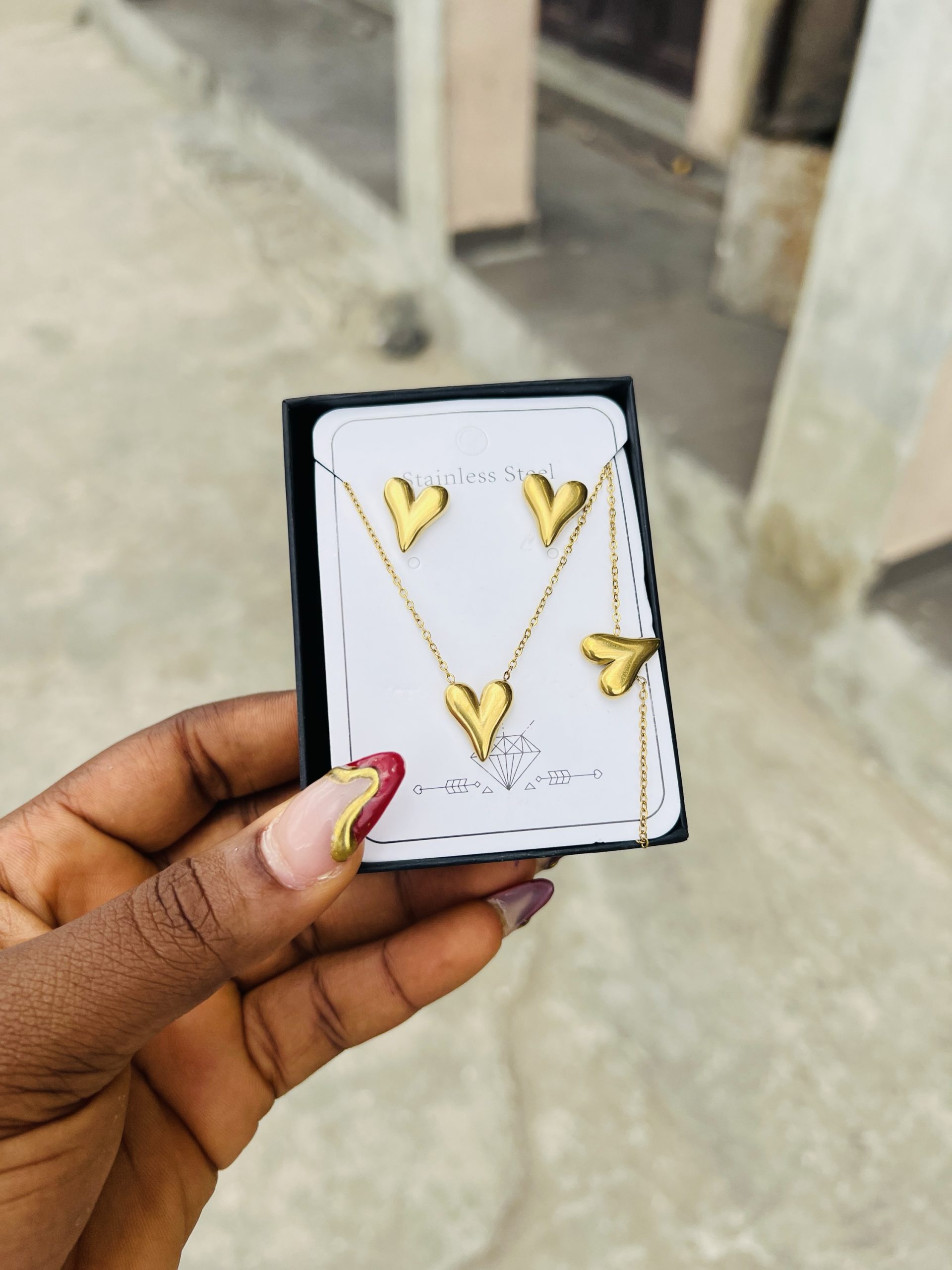 Previous Product Next Product Steel necklace set 004 ₦1,599 Category: Necklaces 10 in stock Steel necklace set 004 quantity Buy Now Reviews (0) Reviews There are no reviews yet. Be the first to review “Steel necklace set 004” Cancel replyYour email address will not be published. Required fields are marked *Your rating * Rate… Perfect Good Average Not that bad Very poor Your review *Name * Email * Save my name, email, and website in this browser for the next time I comment. Opens in a new window Tweet This Product Opens in a new window Share on Facebook Opens in a new window Pin This Product Opens in a new window Mail This Product Related products Quick View Out of Stock Quick View Earrings, NecklacesStainless steel gold set 004 ₦1,500 Read more Quick View Quick View Earrings, NecklacesYM PARTY COMBO SET OWAMBE STYLE ₦4,000 Buy Now Quick View Quick View NecklacesTennis gold necklace 012 ₦3,099 Buy Now
