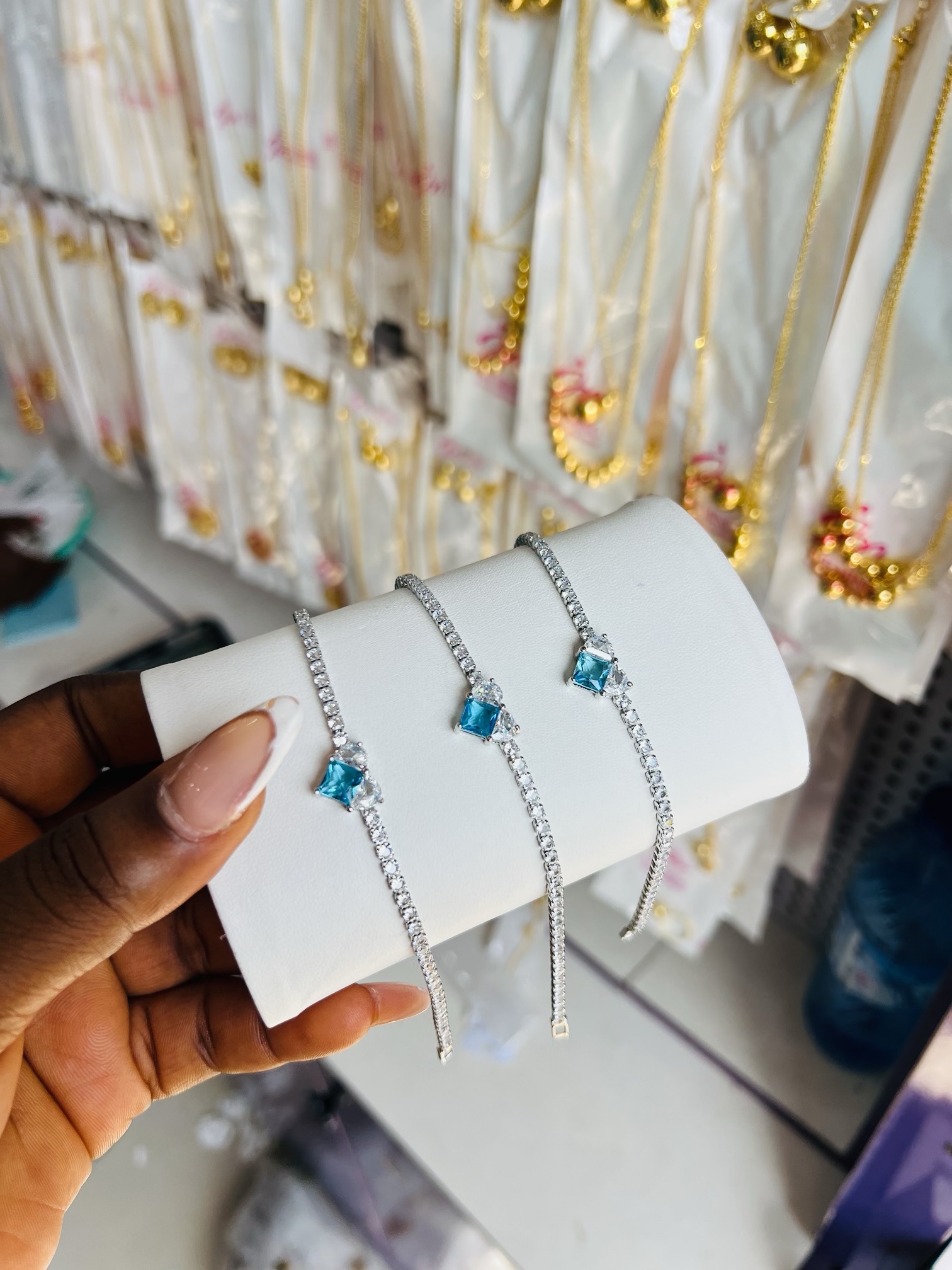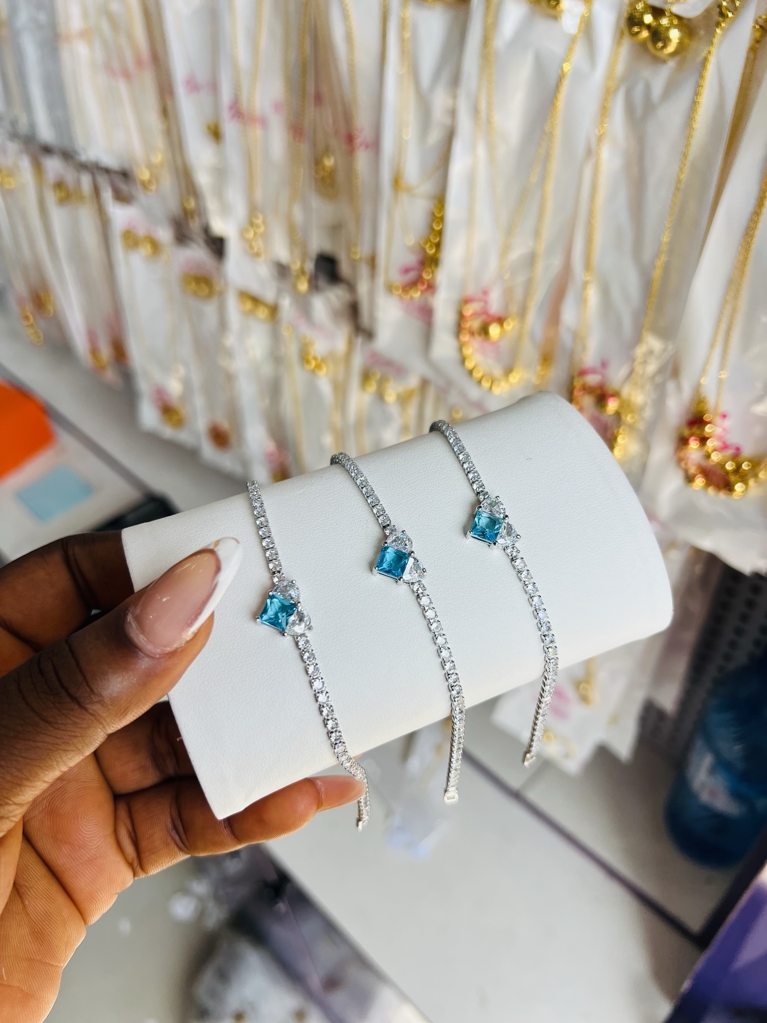 Previous Product Next Product Tennis bracelet 029 ₦2,200 Category: Bracelets 24 in stock Tennis bracelet 029 quantity Buy Now Reviews (0) Reviews There are no reviews yet. Be the first to review “Tennis bracelet 029” Cancel replyYour email address will not be published. Required fields are marked *Your rating * Rate… Perfect Good Average Not that bad Very poor Your review *Name * Email * Save my name, email, and website in this browser for the next time I comment. Opens in a new window Tweet This Product Opens in a new window Share on Facebook Opens in a new window Pin This Product Opens in a new window Mail This Product Related products Quick View Quick View BraceletsBoho beads 039 ₦1,500 Buy Now Quick View Quick View Bracelets, Earrings, Necklaces, RingsMD SILVER LUXURY OWAMBE SET ₦18,000 Buy Now Quick View Quick View BraceletsTennis bracelet 008 ₦2,200 Buy Now