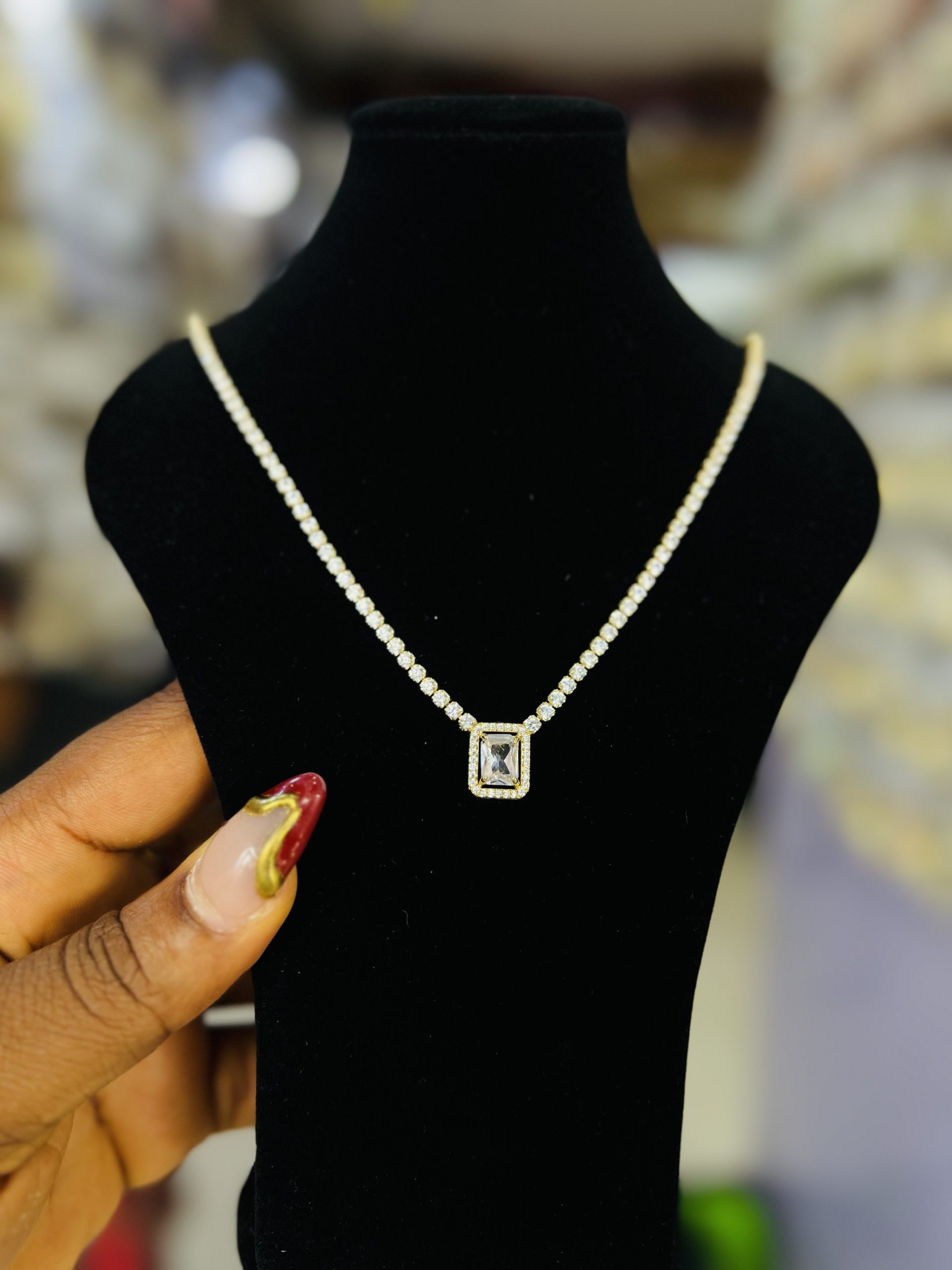 Previous Product Next Product Tennis gold necklace 018 ₦3,099 Category: Necklaces 21 in stock Tennis gold necklace 018 quantity Buy Now Reviews (0) Reviews There are no reviews yet. Be the first to review “Tennis gold necklace 018” Cancel replyYour email address will not be published. Required fields are marked *Your rating * Rate… Perfect Good Average Not that bad Very poor Your review *Name * Email * Save my name, email, and website in this browser for the next time I comment. Opens in a new window Tweet This Product Opens in a new window Share on Facebook Opens in a new window Pin This Product Opens in a new window Mail This Product Related products Quick View Quick View Earrings, NecklacesYM COMBO 5 ball gold set ₦3,000 Buy Now Quick View Quick View Moissanite Jewelries, NecklacesTeekanne Moissanite Necklace ₦45,000 Buy Now Quick View Quick View NecklacesFashion vintage necklace and earring party sets ₦7,500 Buy Now