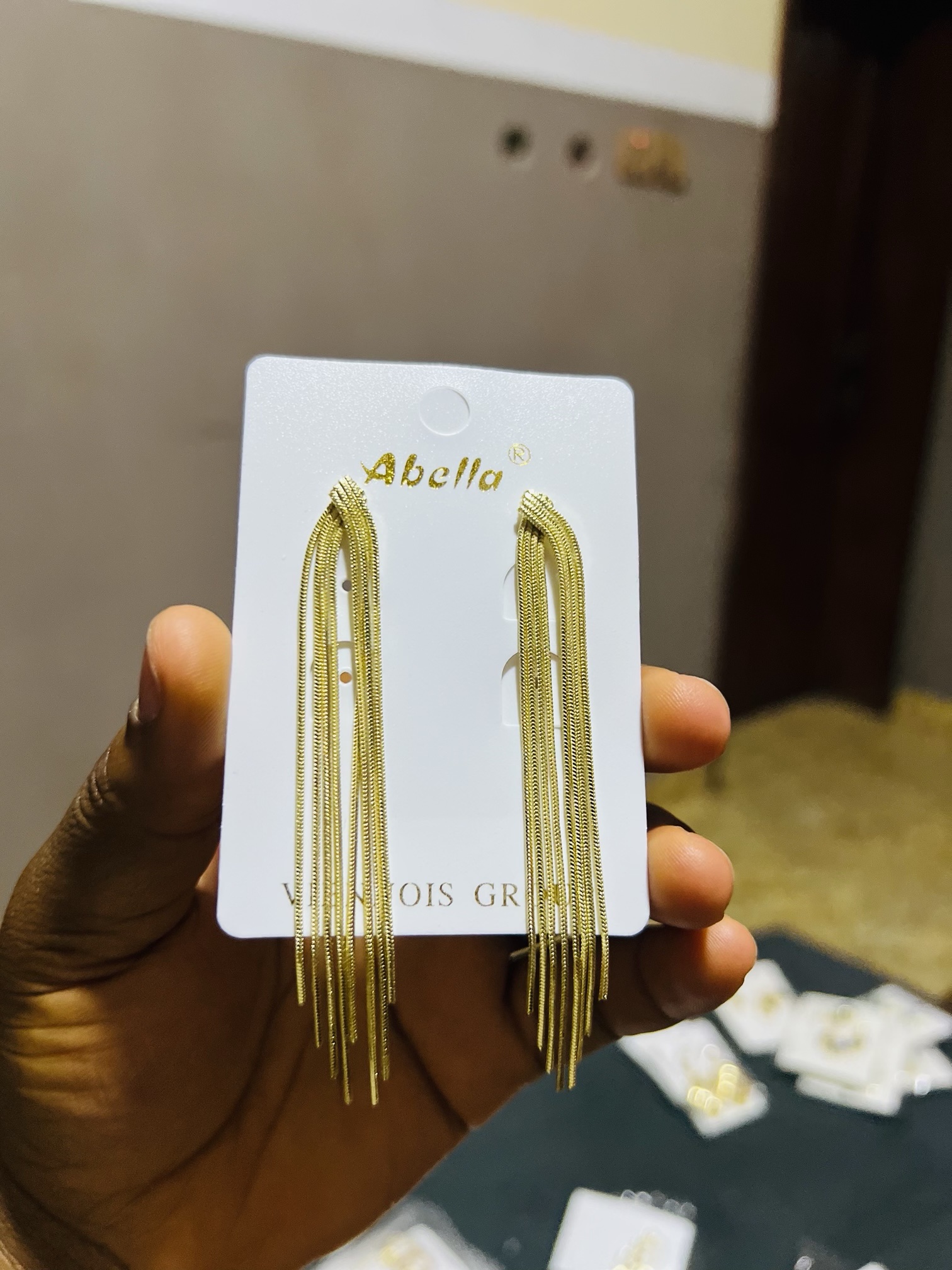 Previous Product Next Product Viennios earrings 027 ₦4,699 Category: Earrings 8 in stock Viennios earrings 027 quantity Buy Now Reviews (0) Reviews There are no reviews yet. Be the first to review “Viennios earrings 027” Cancel replyYour email address will not be published. Required fields are marked *Your rating * Rate… Perfect Good Average Not that bad Very poor Your review *Name * Email * Save my name, email, and website in this browser for the next time I comment. Opens in a new window Tweet This Product Opens in a new window Share on Facebook Opens in a new window Pin This Product Opens in a new window Mail This Product Related products Quick View Out of Stock Quick View EarringsViennios earrings 001 ₦3,599 Read more Quick View Out of Stock Quick View EarringsSunbelle earrings 020 ₦3,000 Read more Quick View Out of Stock Quick View EarringsViennios earrings 021 ₦4,898 Read more