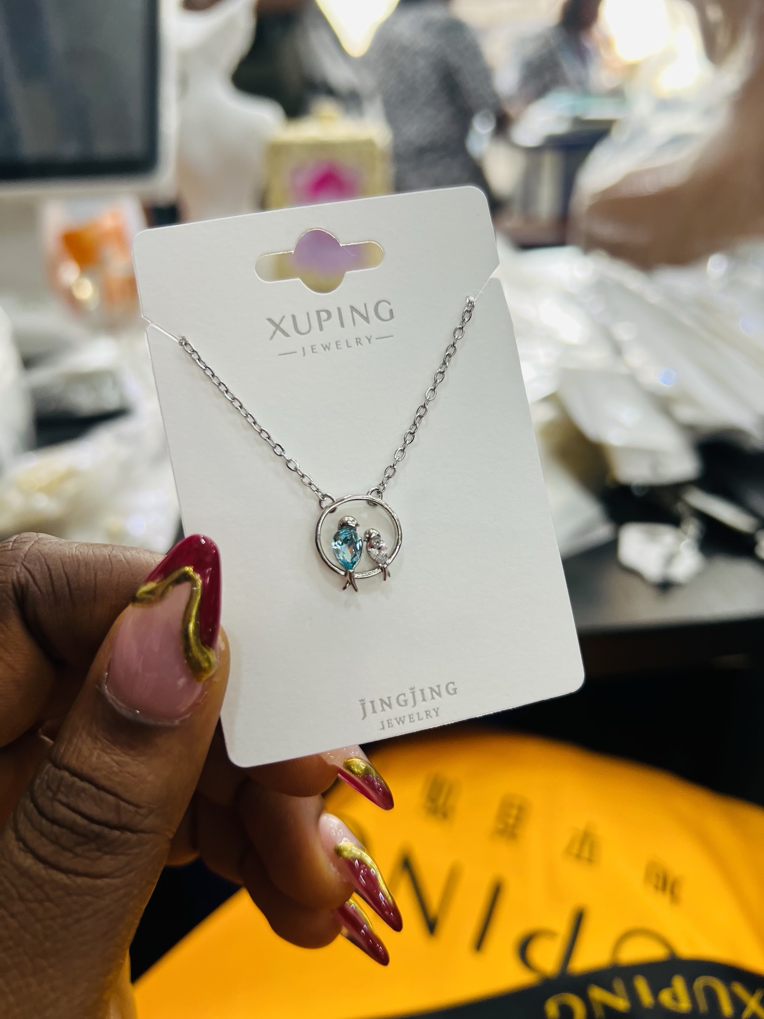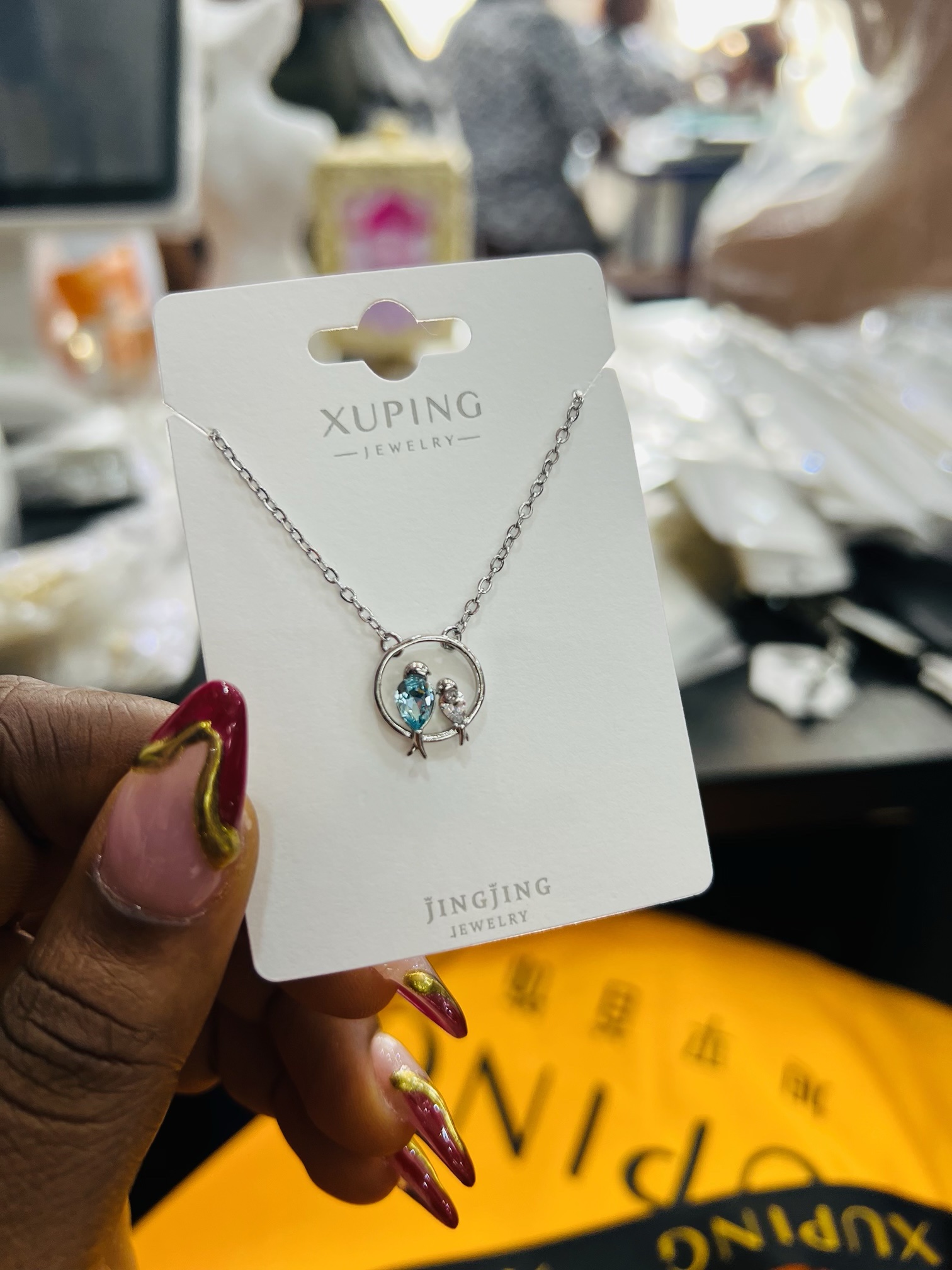 Previous Product Next Product Xuping silver love bird necklace ₦4,599 Category: Necklaces 21 in stock Xuping silver love bird necklace quantity Buy Now Reviews (0) Reviews There are no reviews yet. Be the first to review “Xuping silver love bird necklace” Cancel replyYour email address will not be published. Required fields are marked *Your rating * Rate… Perfect Good Average Not that bad Very poor Your review *Name * Email * Save my name, email, and website in this browser for the next time I comment. Opens in a new window Tweet This Product Opens in a new window Share on Facebook Opens in a new window Pin This Product Opens in a new window Mail This Product Related products Quick View Quick View Earrings, NecklacesCherry dainty necklace set 002 ₦1,700 Buy Now Quick View Quick View Earrings, NecklacesStainless steel gold set 004 ₦1,500 Buy Now Quick View Quick View NecklacesComplete tennis Cz pink set ₦7,599 Buy Now
