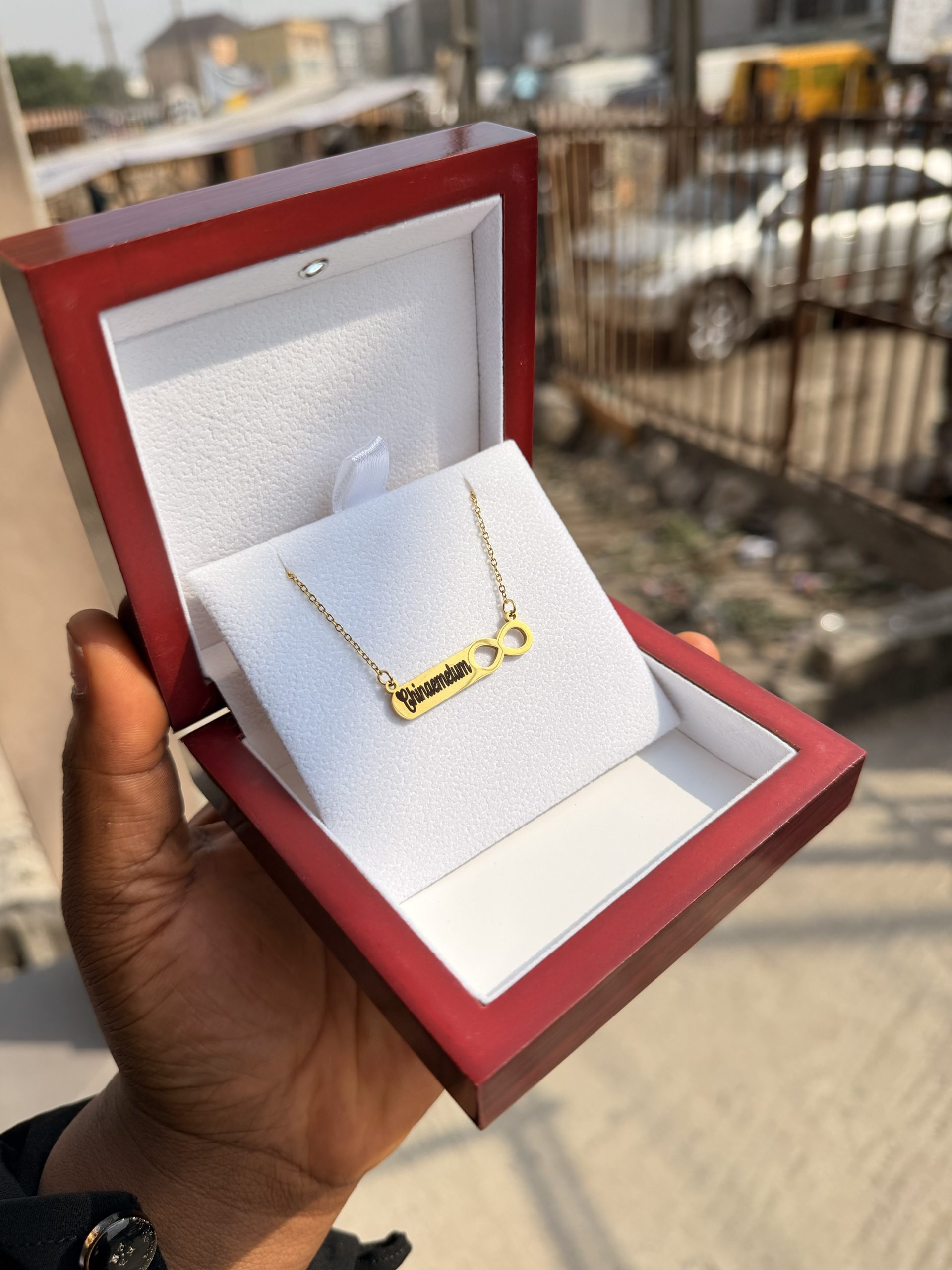 Previous Product Next Product 15mm engraved 2 toned bracelet with paper box ₦8,300 SKU: 53334 Category: Customizables 167 in stock 53334 15mm engraved 2 toned bracelet with paper box quantity Buy Now Reviews (0) Reviews There are no reviews yet. Be the first to review “15mm engraved 2 toned bracelet with paper box” Cancel replyYour email address will not be published. Required fields are marked *Your rating * Rate… Perfect Good Average Not that bad Very poor Your review *Name * Email * Save my name, email, and website in this browser for the next time I comment. Opens in a new window Tweet This Product Opens in a new window Share on Facebook Opens in a new window Pin This Product Opens in a new window Mail This Product Related products Quick View Quick View CustomizablesBlack flat engraved necklace with paper box ₦6,800 Buy Now Quick View Quick View CustomizablesExtra emoji’s ₦500 Buy Now Quick View Quick View CustomizablesPresidential rebirth with love engraved bracelet ₦18,000 Buy Now
