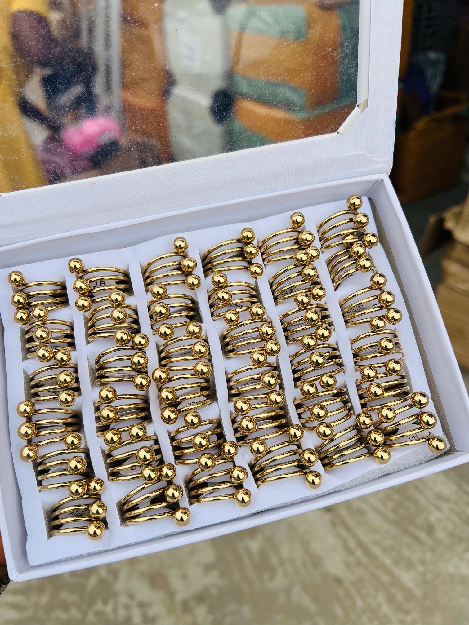 Previous Product Next Product A box of stainless steel rings (36pcs) 008 ₦17,099 Category: Rings 8 in stock A box of stainless steel rings (36pcs) 008 quantity Buy Now Reviews (0) Reviews There are no reviews yet. Be the first to review “A box of stainless steel rings (36pcs) 008” Cancel replyYour email address will not be published. Required fields are marked *Your rating * Rate… Perfect Good Average Not that bad Very poor Your review *Name * Email * Save my name, email, and website in this browser for the next time I comment. Opens in a new window Tweet This Product Opens in a new window Share on Facebook Opens in a new window Pin This Product Opens in a new window Mail This Product Related products Quick View Out of Stock Quick View RingsCz gold adjustable ring ₦4,500 Read more Quick View Quick View RingsWild cut oval wedding ring size 8 ₦9,599 Buy Now Quick View Quick View Moissanite Jewelries, RingsQueen Elizabeth Moissanite Ring ₦70,000 Buy Now