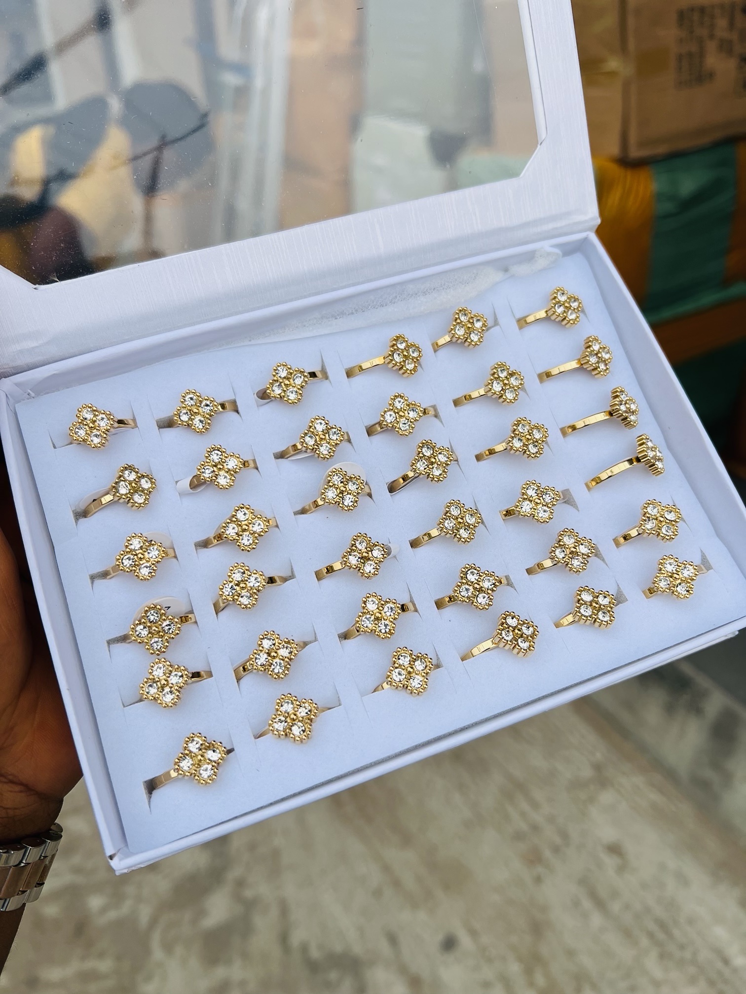 Previous Product Next Product A box of stainless steel rings (36pcs) 010 ₦17,099 Category: Rings 5 in stock A box of stainless steel rings (36pcs) 010 quantity Buy Now Reviews (0) Reviews There are no reviews yet. Be the first to review “A box of stainless steel rings (36pcs) 010” Cancel replyYour email address will not be published. Required fields are marked *Your rating * Rate… Perfect Good Average Not that bad Very poor Your review *Name * Email * Save my name, email, and website in this browser for the next time I comment. Opens in a new window Tweet This Product Opens in a new window Share on Facebook Opens in a new window Pin This Product Opens in a new window Mail This Product Related products Quick View Quick View RingsWild cut oval wedding ring size 8 ₦9,599 Buy Now Quick View Quick View RingsDeep cut square wedding ring size 10 ₦9,599 Buy Now Quick View Quick View RingsXuping ring 007 ₦4,599 Buy Now