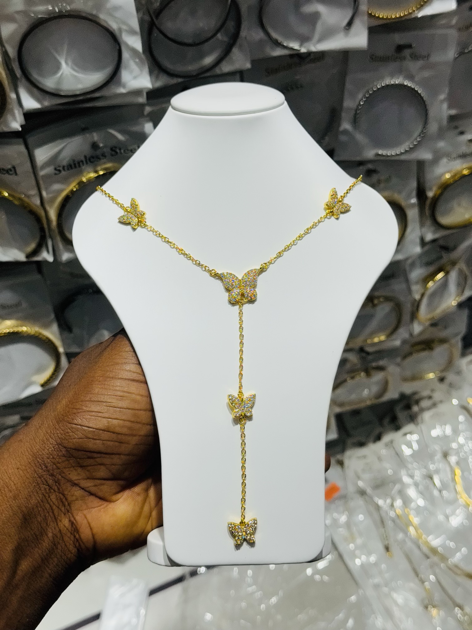 Previous Product Next Product Butterfly silver dropping necklace ₦3,200 SKU: 56839 Category: Necklaces 47 in stock 56839 Butterfly silver dropping necklace quantity Buy Now Reviews (0) Reviews There are no reviews yet. Be the first to review “Butterfly silver dropping necklace” Cancel replyYour email address will not be published. Required fields are marked *Your rating * Rate… Perfect Good Average Not that bad Very poor Your review *Name * Email * Save my name, email, and website in this browser for the next time I comment. Opens in a new window Tweet This Product Opens in a new window Share on Facebook Opens in a new window Pin This Product Opens in a new window Mail This Product Related products Quick View Quick View NecklacesMD Gold VCA Set ₦5,500 Buy Now Quick View Quick View Moissanite Jewelries, NecklacesTeddy Moissanite necklace ₦45,000 Buy Now Quick View Quick View Bracelets, Earrings, Necklaces, RingsMulticolor Steel Set ₦9,000 Buy Now