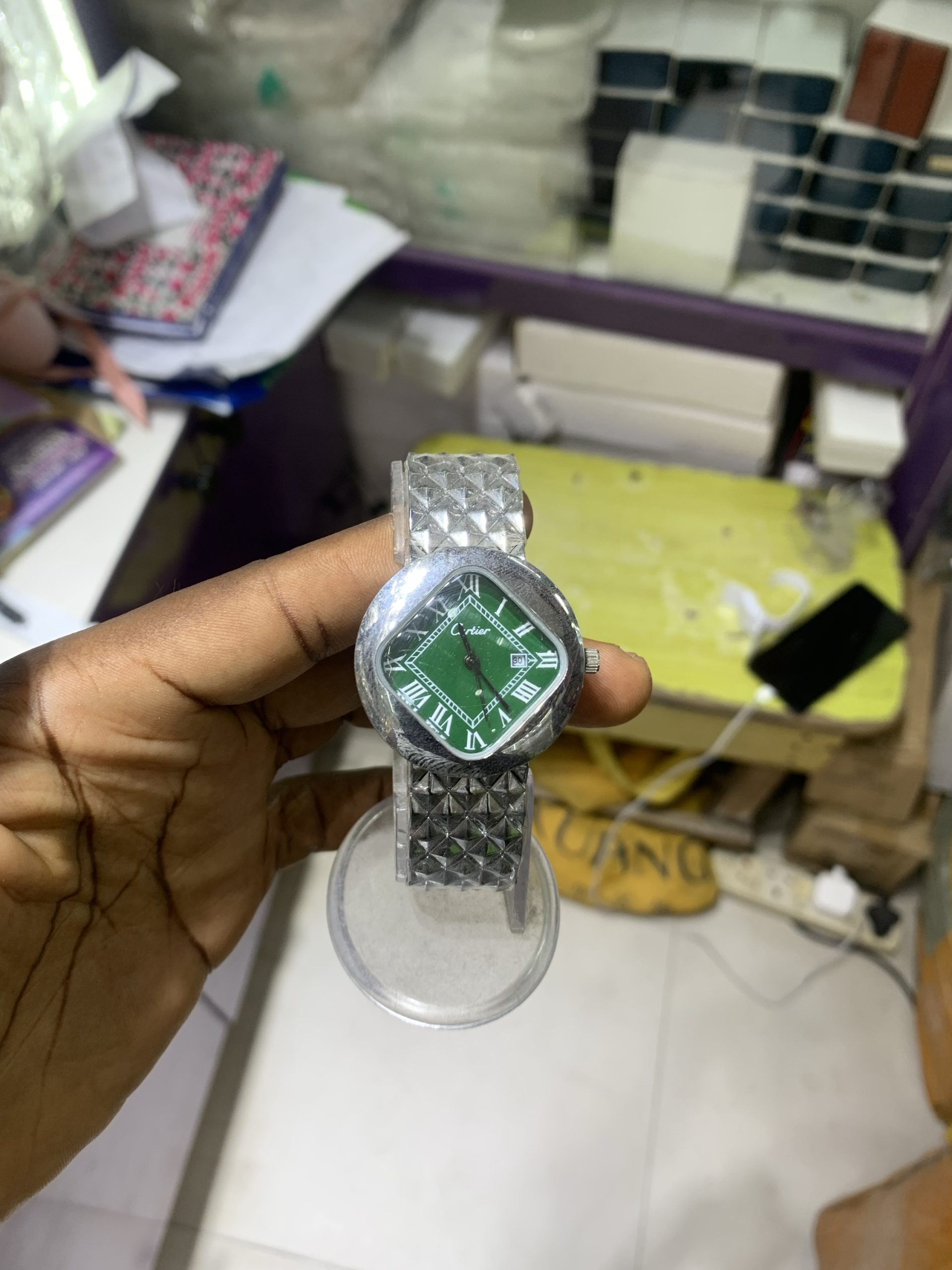 Previous Product Next Product Cartier green face watch ₦9,500 SKU: 59343 Category: Watches 1 in stock 59343 Cartier green face watch quantity Buy Now Reviews (0) Reviews There are no reviews yet. Be the first to review “Cartier green face watch” Cancel replyYour email address will not be published. Required fields are marked *Your rating * Rate… Perfect Good Average Not that bad Very poor Your review *Name * Email * Save my name, email, and website in this browser for the next time I comment. Opens in a new window Tweet This Product Opens in a new window Share on Facebook Opens in a new window Pin This Product Opens in a new window Mail This Product Related products Quick View Quick View WatchesBlack female Rolex ₦10,000 Buy Now Quick View Quick View WatchesGrey G-shock watch ₦10,000 Buy Now Quick View Quick View WatchesExtri Silver vintage watch ₦16,000 Buy Now