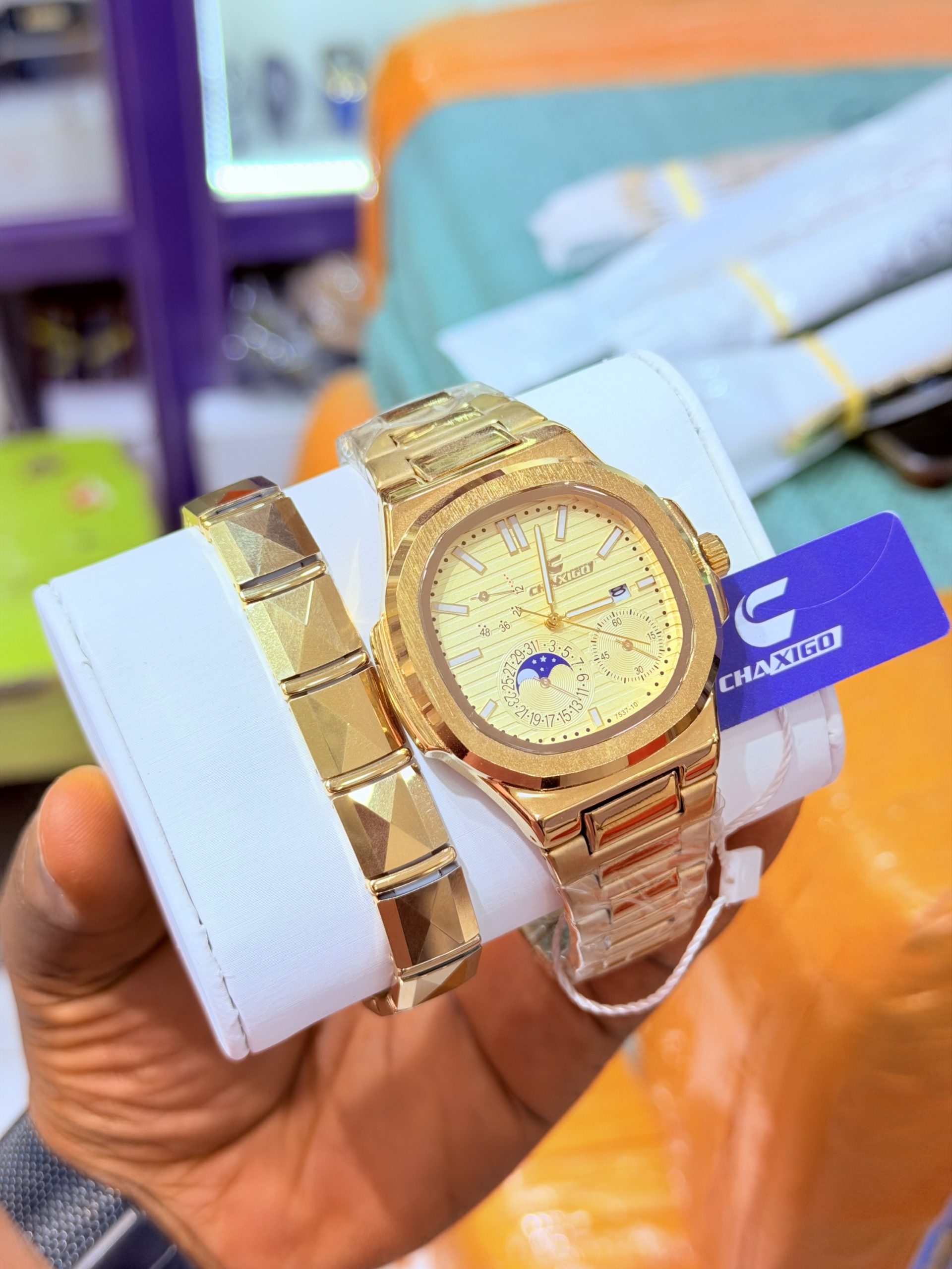 Previous Product Next Product Chaxigo orange combo boxed ₦17,000 Category: Watches 11 in stock Chaxigo orange combo boxed quantity Buy Now Reviews (0) Reviews There are no reviews yet. Be the first to review “Chaxigo orange combo boxed” Cancel replyYour email address will not be published. Required fields are marked *Your rating * Rate… Perfect Good Average Not that bad Very poor Your review *Name * Email * Save my name, email, and website in this browser for the next time I comment. Opens in a new window Tweet This Product Opens in a new window Share on Facebook Opens in a new window Pin This Product Opens in a new window Mail This Product Related products Quick View Quick View WatchesRebirth mixed tone black face unisex watch ₦10,500 Buy Now Quick View Quick View WatchesG shock stone face ₦40,000 Buy Now Quick View Quick View WatchesSilver Chanel watch ₦11,500 Buy Now