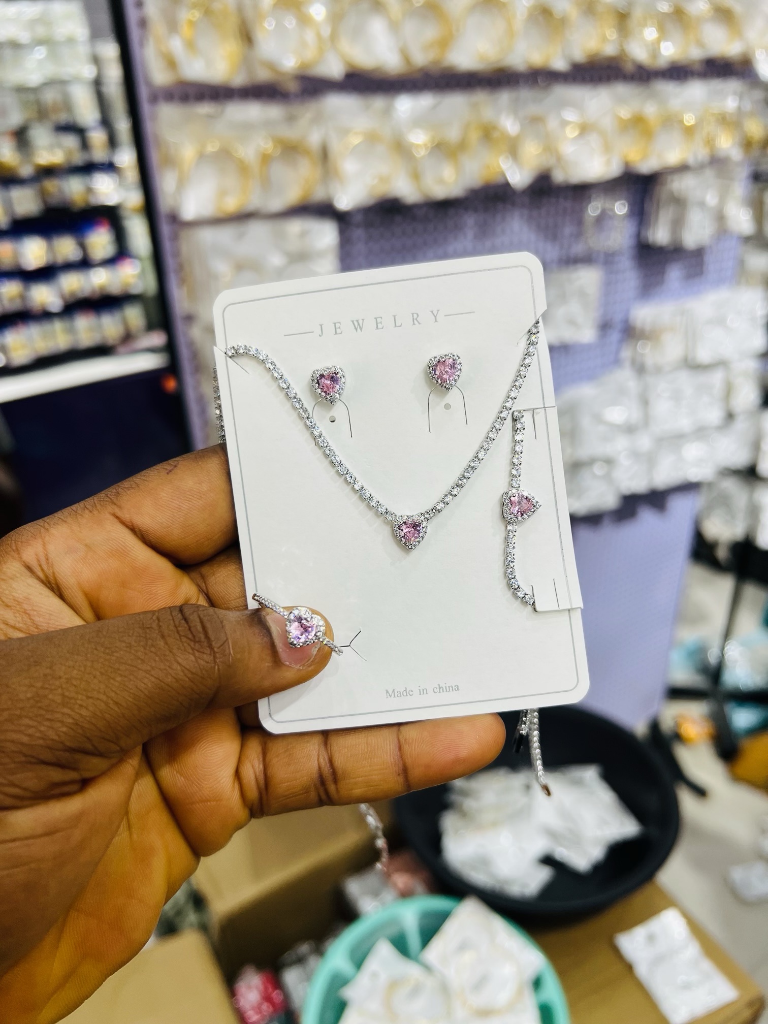 Previous Product Next Product Cz pink love set ₦8,000 SKU: 56439 Category: Necklaces 16 in stock 56439 Cz pink love set quantity Buy Now Reviews (0) Reviews There are no reviews yet. Be the first to review “Cz pink love set” Cancel replyYour email address will not be published. Required fields are marked *Your rating * Rate… Perfect Good Average Not that bad Very poor Your review *Name * Email * Save my name, email, and website in this browser for the next time I comment. Opens in a new window Tweet This Product Opens in a new window Share on Facebook Opens in a new window Pin This Product Opens in a new window Mail This Product Related products Quick View Quick View NecklacesXuping chain (12) 002 ₦22,000 Buy Now Quick View Quick View Bracelets, Earrings, Necklaces, RingsMulticolor Steel Set ₦9,000 Buy Now Quick View Quick View NecklacesGold bridal set ₦9,500 Buy Now