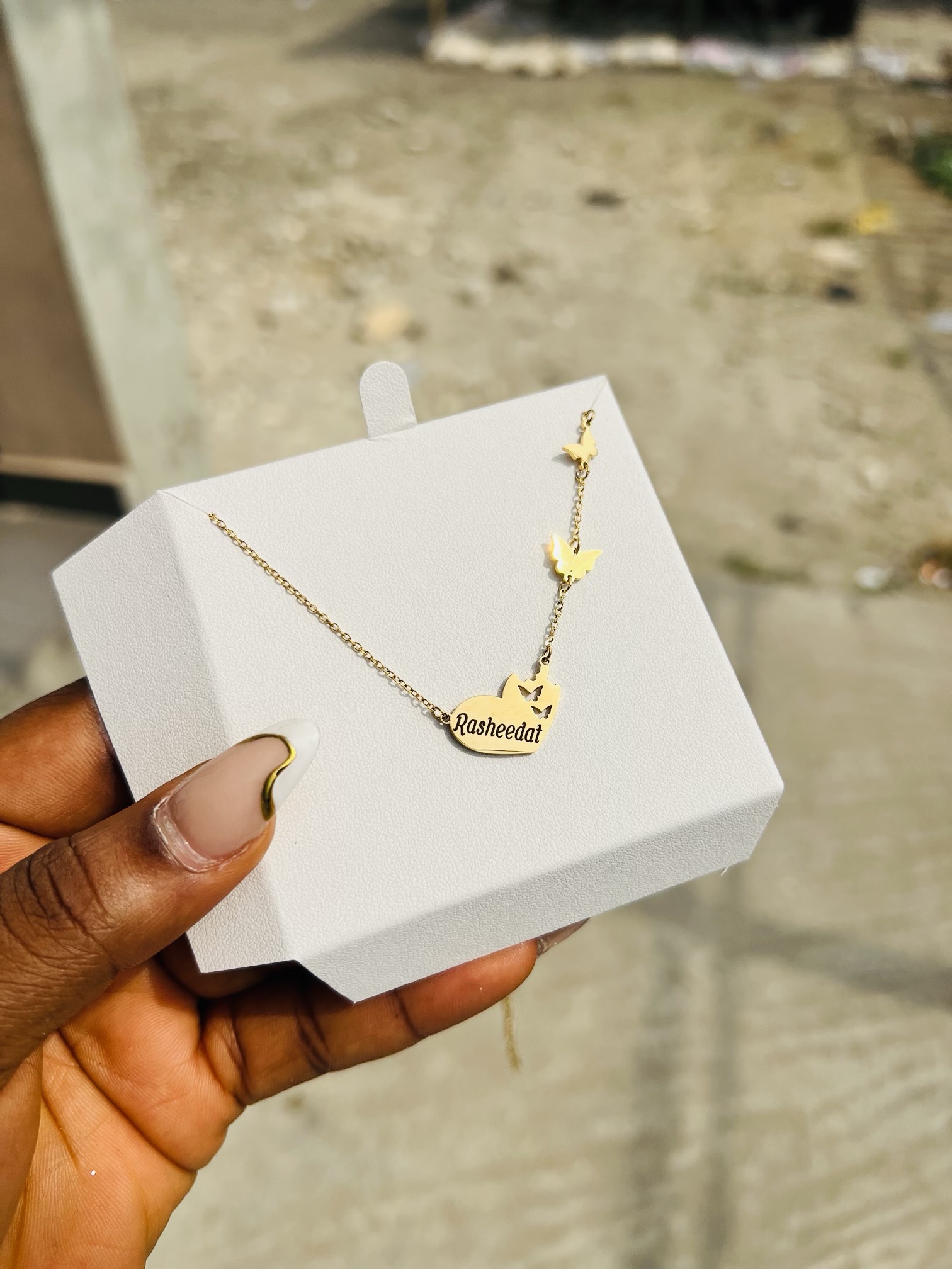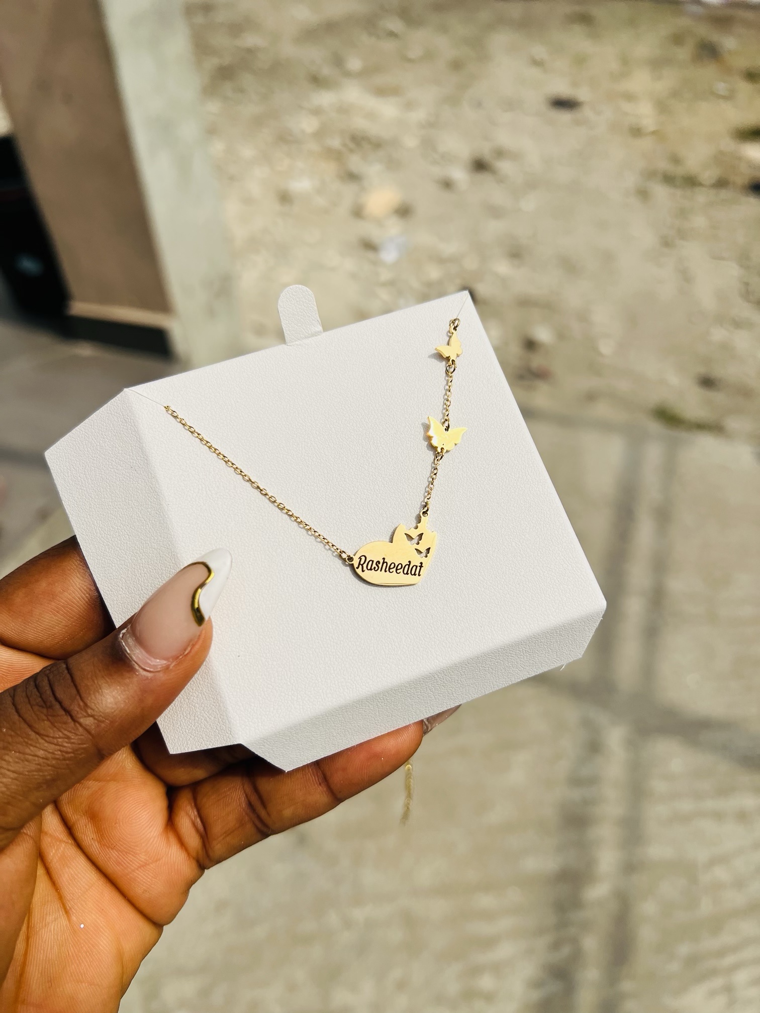 Previous Product Next Product Engraved 3 step butterfly necklace ₦6,500 Category: Customizables 50 in stock Engraved 3 step butterfly necklace quantity Buy Now Reviews (0) Reviews There are no reviews yet. Be the first to review “Engraved 3 step butterfly necklace” Cancel replyYour email address will not be published. Required fields are marked *Your rating * Rate… Perfect Good Average Not that bad Very poor Your review *Name * Email * Save my name, email, and website in this browser for the next time I comment. Opens in a new window Tweet This Product Opens in a new window Share on Facebook Opens in a new window Pin This Product Opens in a new window Mail This Product Related products Quick View Quick View CustomizablesSilver heart shaped locket with paper box ₦15,900 Buy Now Quick View Quick View CustomizablesGold Engraved block necklace ₦4,500 Buy Now Quick View Quick View CustomizablesGold stretchy bracelet ₦6,599 Buy Now