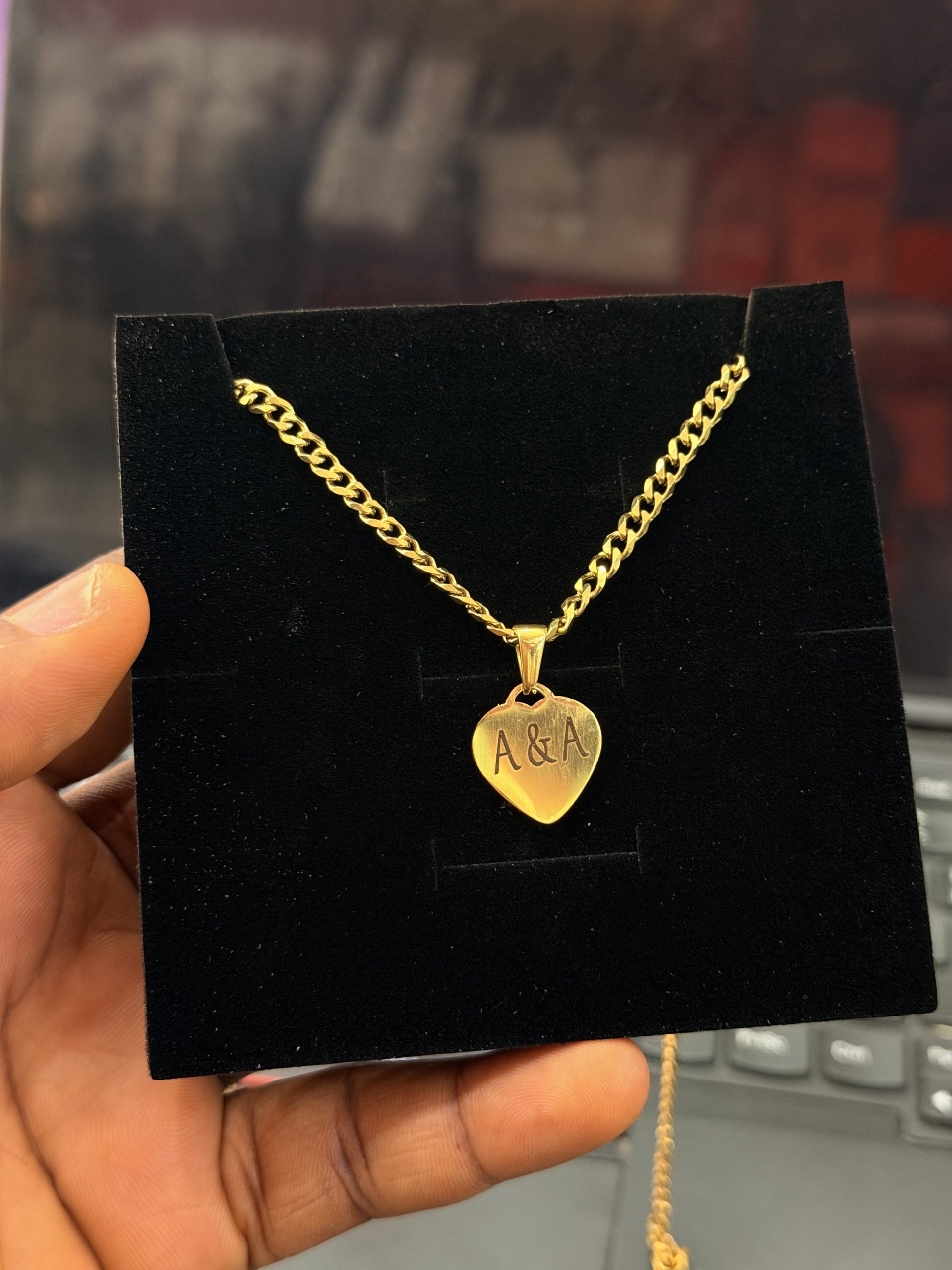 1 review for Engraved big heart shape necklace with paper box