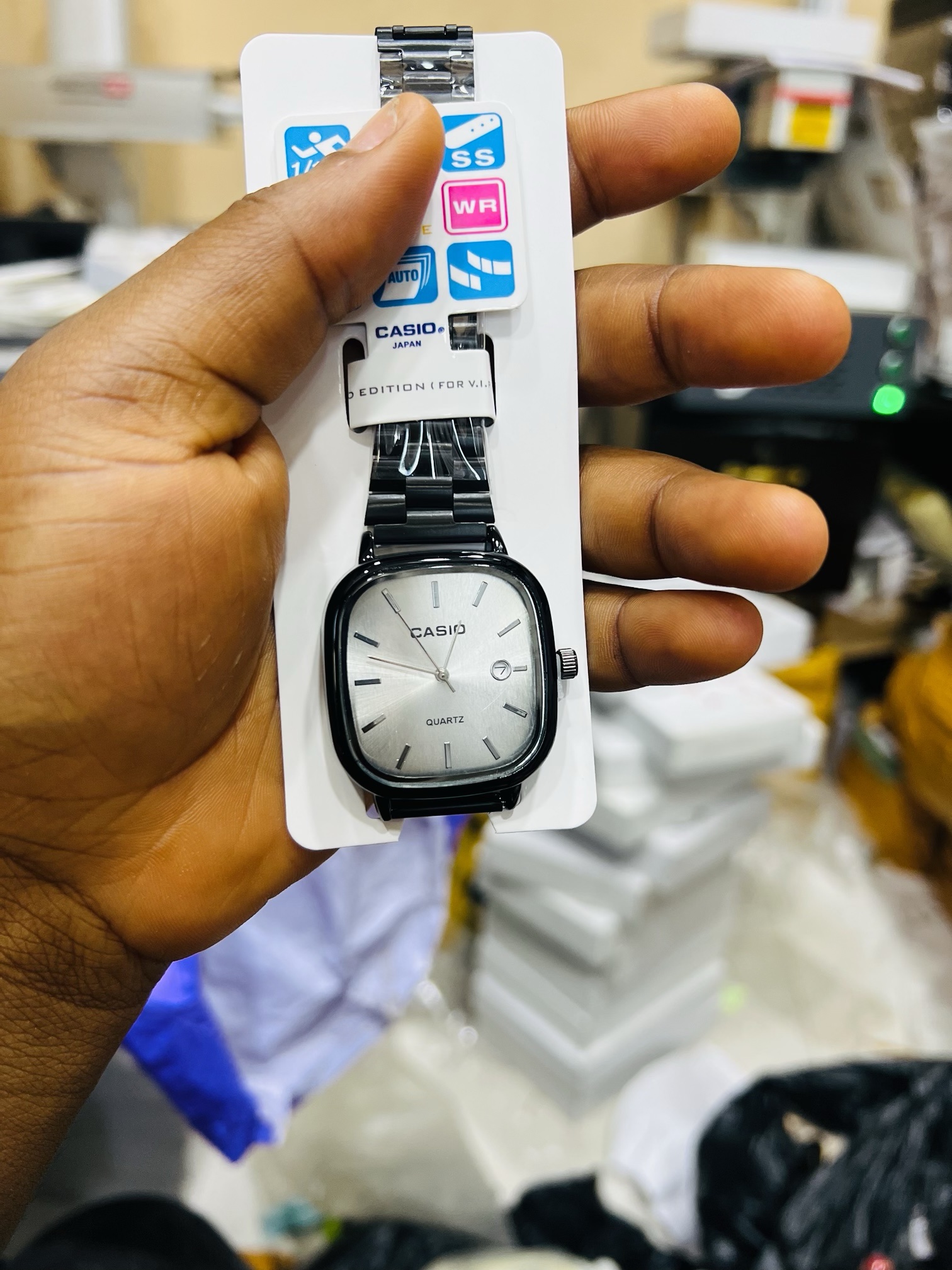 Previous Product Next Product Engraved Casio black white face with paper box ₦12,000 SKU: 56375 Category: Customizables 95 in stock 56375 Engraved Casio black white face with paper box quantity Buy Now Reviews (0) Reviews There are no reviews yet. Be the first to review “Engraved Casio black white face with paper box” Cancel replyYour email address will not be published. Required fields are marked *Your rating * Rate… Perfect Good Average Not that bad Very poor Your review *Name * Email * Save my name, email, and website in this browser for the next time I comment. Opens in a new window Tweet This Product Opens in a new window Share on Facebook Opens in a new window Pin This Product Opens in a new window Mail This Product Related products Quick View Quick View CustomizablesExtra emoji’s ₦500 Buy Now Quick View Quick View Customizables12mm Gold Rolex bracelet with paper box ₦8,300 Buy Now Quick View Quick View CustomizablesBACK ENGRAVINGS/BOX ENGRAVING ₦1,500 Buy Now