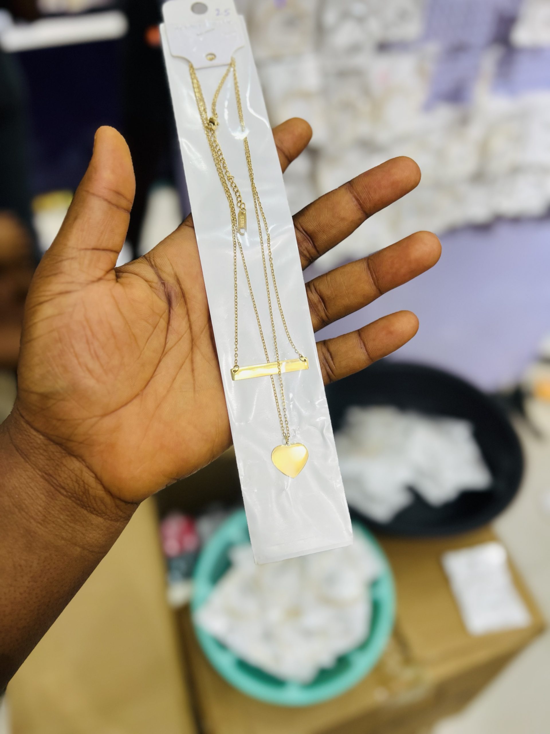 Previous Product Next Product Engraved double heart necklace with box ₦6,800 SKU: 56460 Category: Customizables 25 in stock 56460 Engraved double heart necklace with box quantity Buy Now Reviews (0) Reviews There are no reviews yet. Be the first to review “Engraved double heart necklace with box” Cancel replyYour email address will not be published. Required fields are marked *Your rating * Rate… Perfect Good Average Not that bad Very poor Your review *Name * Email * Save my name, email, and website in this browser for the next time I comment. Opens in a new window Tweet This Product Opens in a new window Share on Facebook Opens in a new window Pin This Product Opens in a new window Mail This Product Related products Quick View Quick View CustomizablesEngraved gold simple bracelet with box ₦6,800 Buy Now Quick View Quick View CustomizablesGold heart shape locket with paper box ₦15,900 Buy Now Quick View Quick View CustomizablesBlack flat engraved necklace with paper box ₦6,800 Buy Now