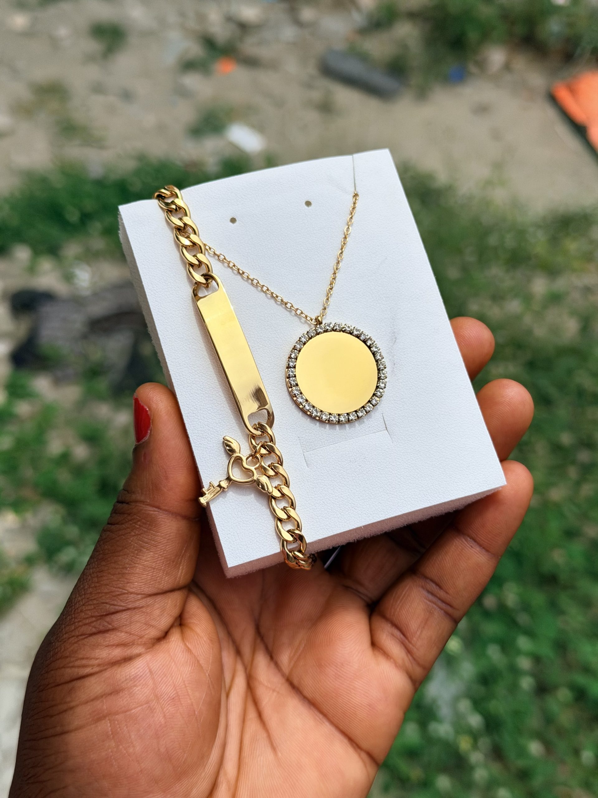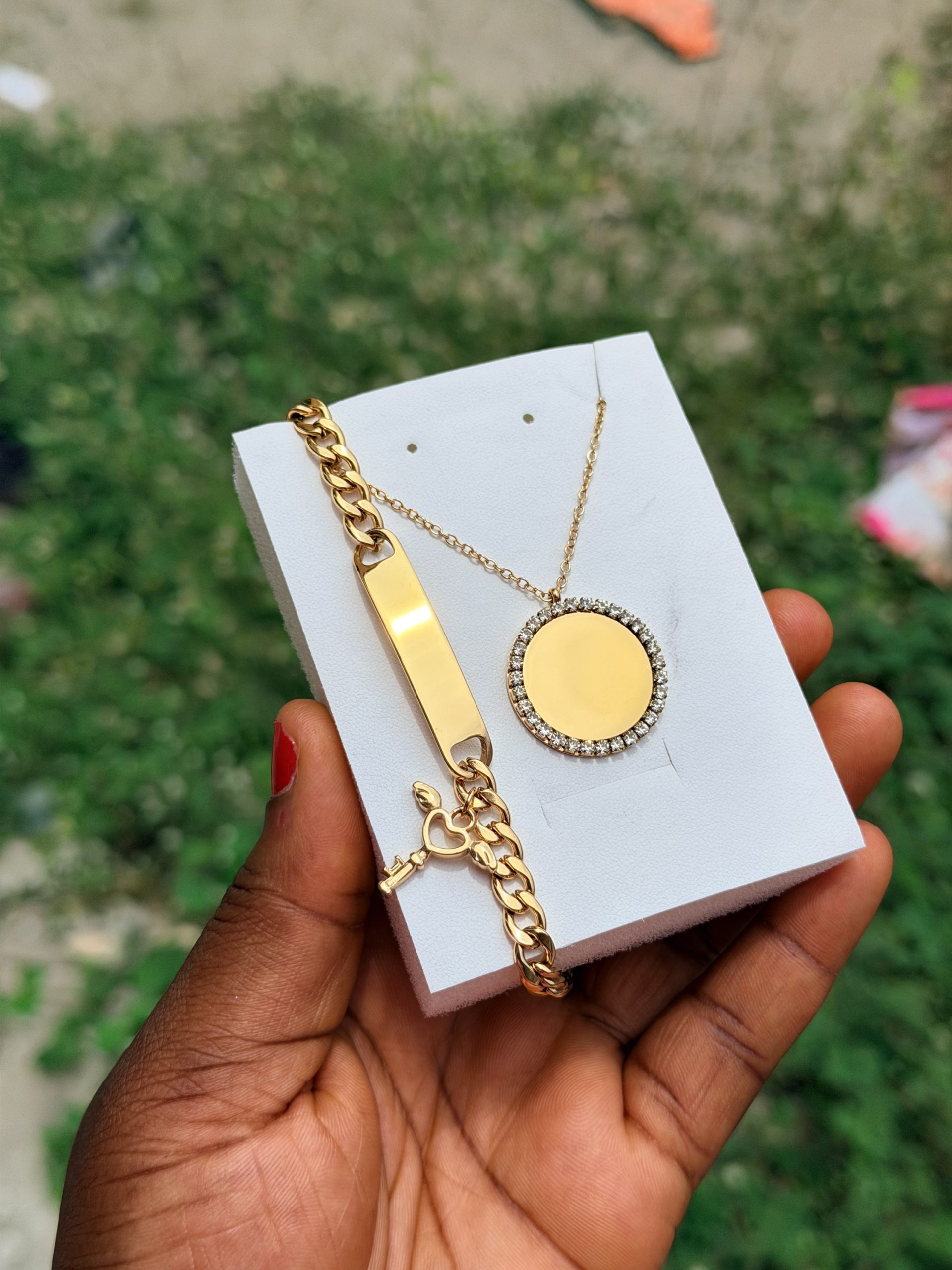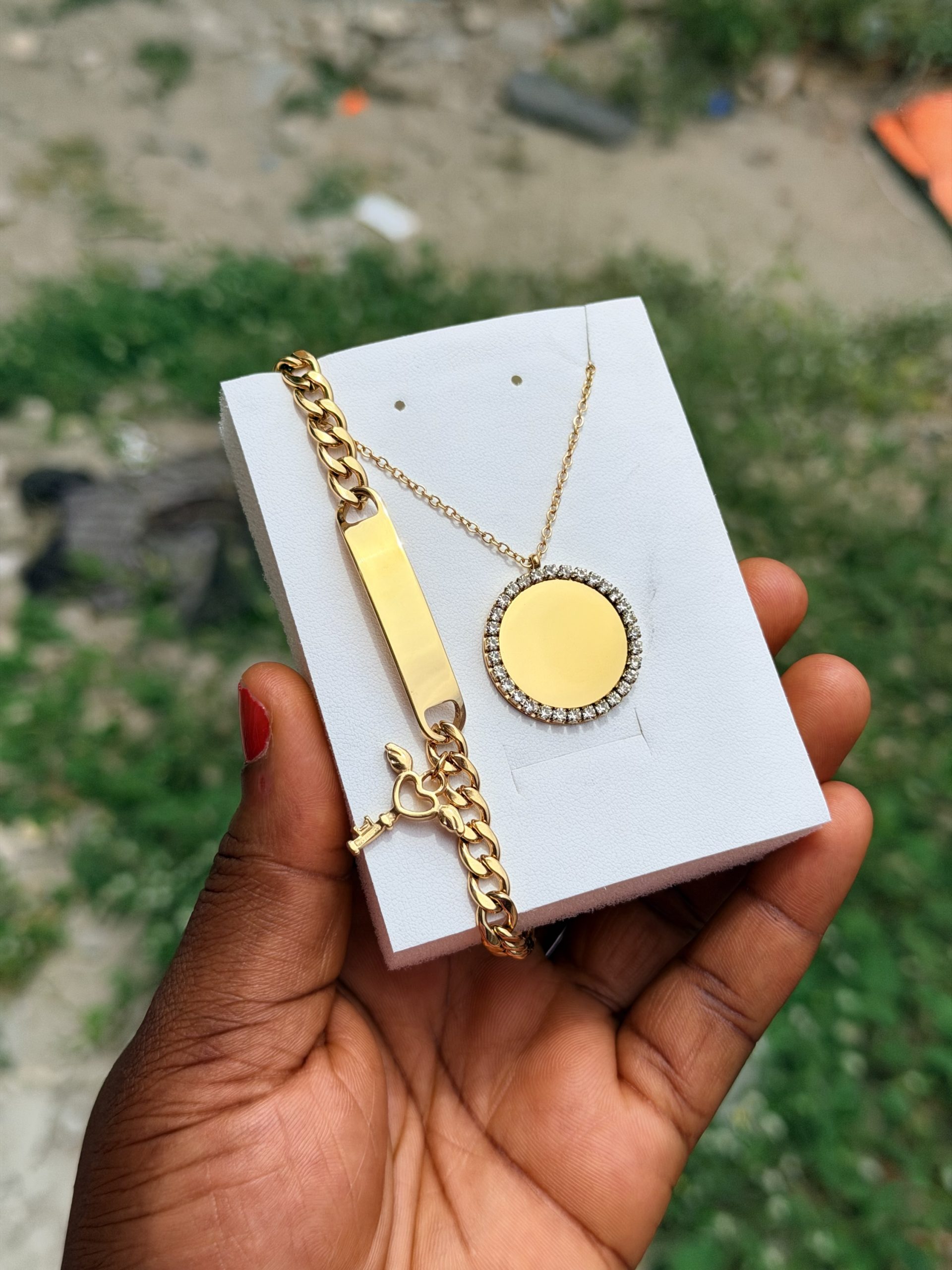 Previous Product Next Product Engraved female combo 012 ₦10,000 SKU: 62323 Category: Customizables 18 in stock 62323 Engraved female combo 012 quantity Buy Now Reviews (0) Reviews There are no reviews yet. Be the first to review “Engraved female combo 012” Cancel replyYour email address will not be published. Required fields are marked *Your rating * Rate… Perfect Good Average Not that bad Very poor Your review *Name * Email * Save my name, email, and website in this browser for the next time I comment. Opens in a new window Tweet This Product Opens in a new window Share on Facebook Opens in a new window Pin This Product Opens in a new window Mail This Product Related products Quick View Quick View CustomizablesRotating frame stand ₦15,000 Buy Now Quick View Quick View CustomizablesEngraved gold white mini Cuban ₦6,000 Buy Now Quick View Quick View CustomizablesEngraved infinity dropping necklace ₦6,000 Buy Now