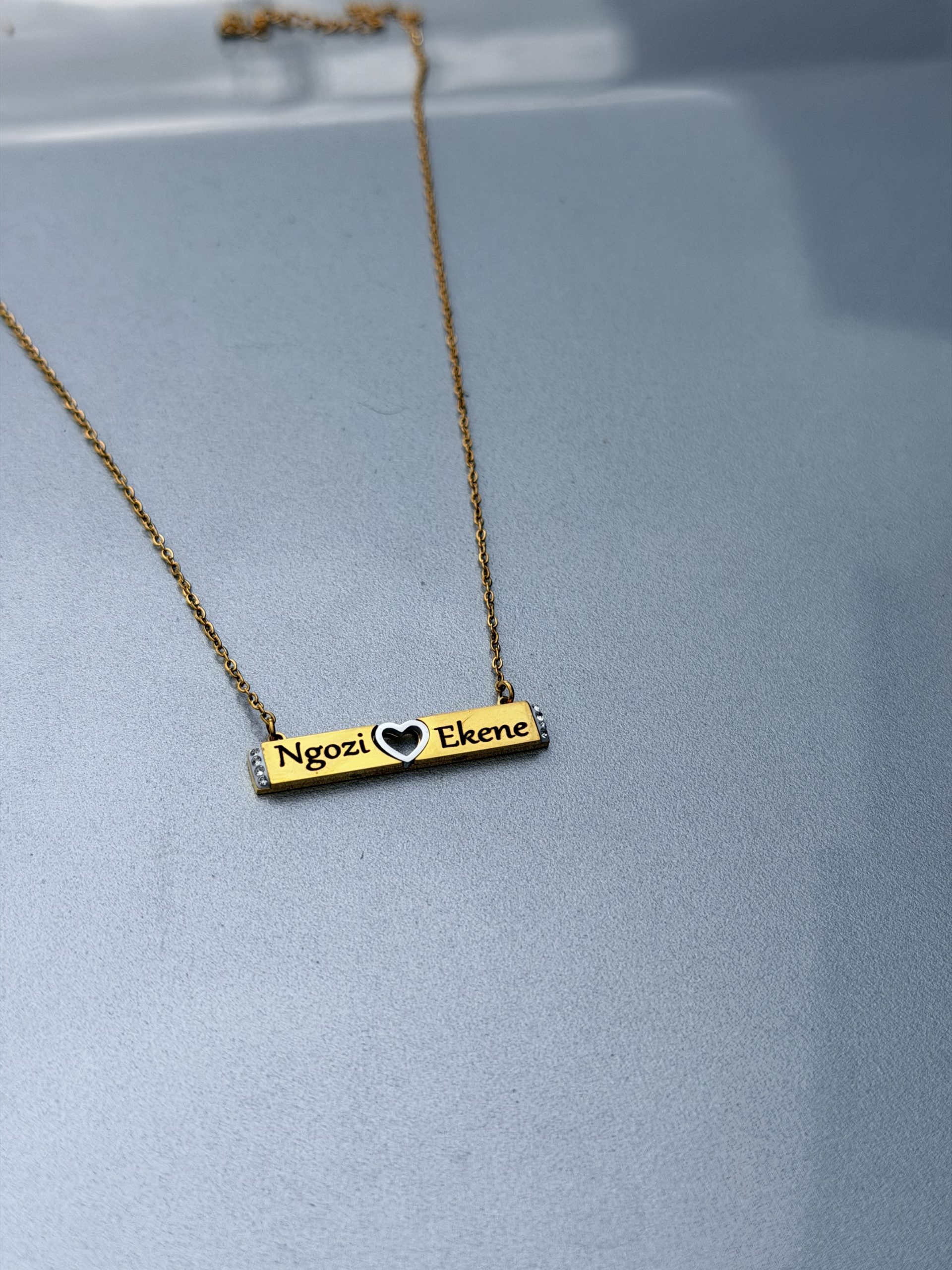 Carry love close to your heart. Engrave your name and the name of someone special on this beautiful necklace.