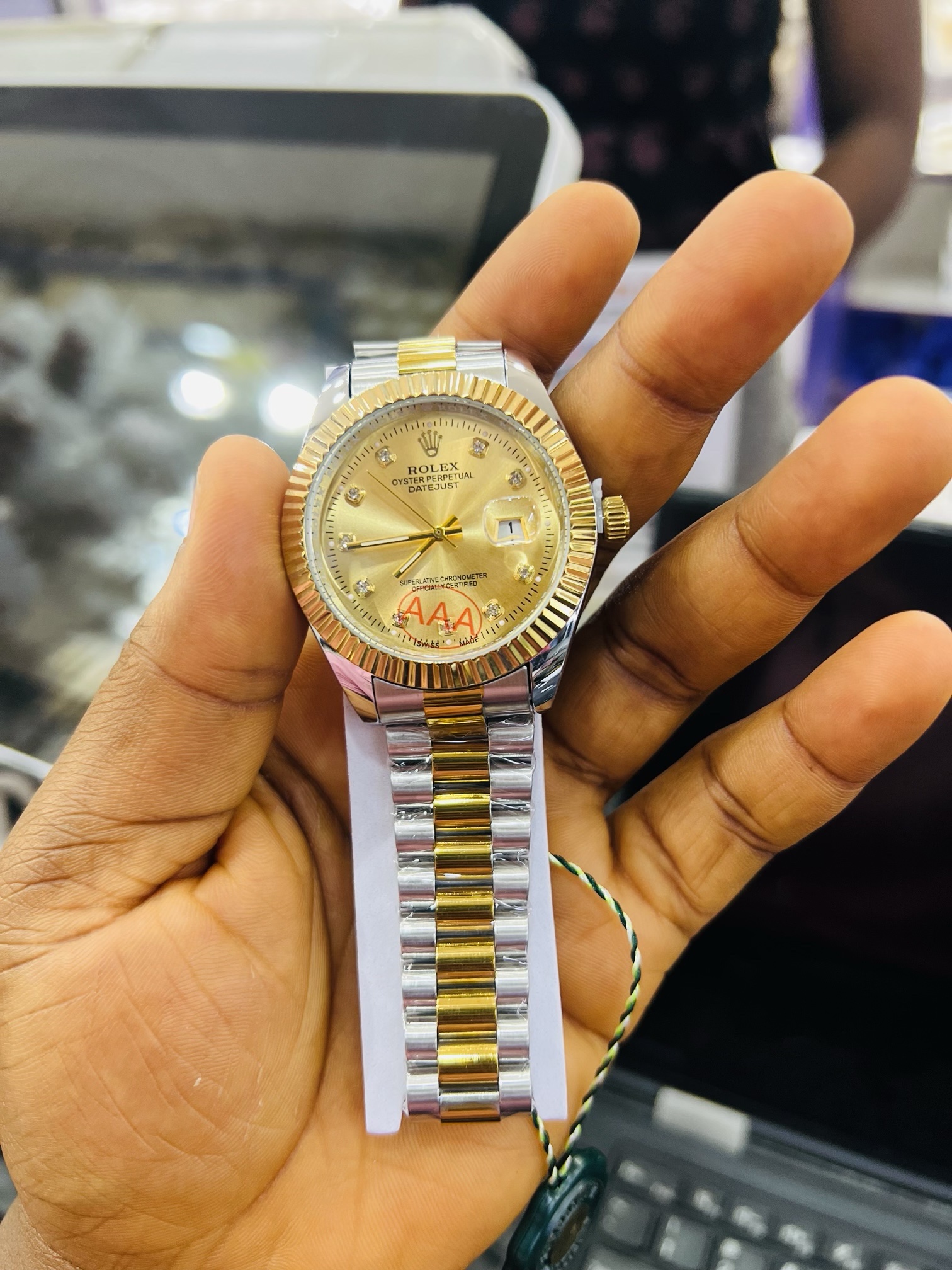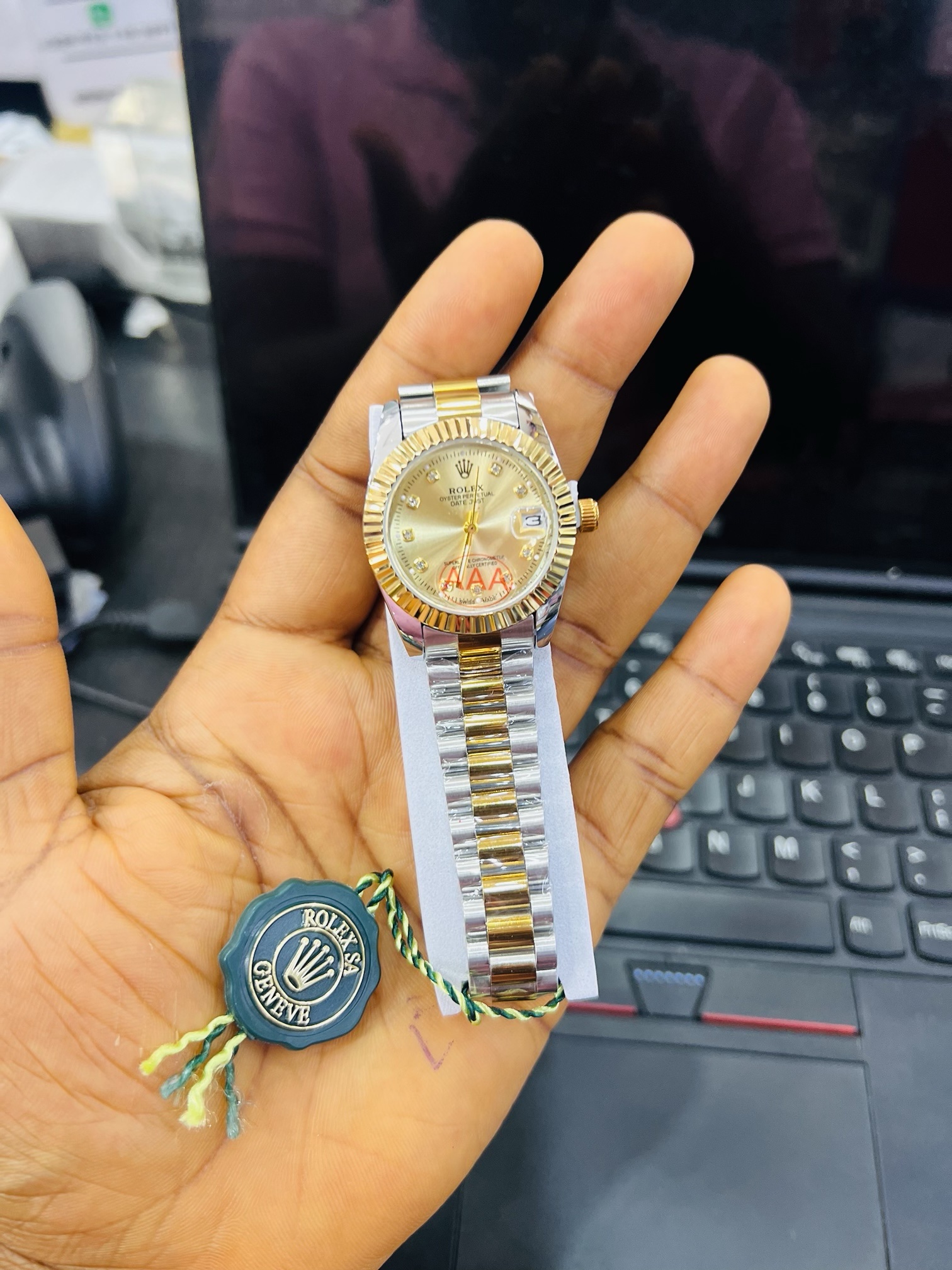 Previous Product Next Product Engraved Rolex female gold two toned watch with paper box ₦15,500 SKU: 57685 Category: Customizables 148 in stock 57685 Engraved Rolex female gold two toned watch with paper box quantity Buy Now Reviews (0) Reviews There are no reviews yet. Be the first to review “Engraved Rolex female gold two toned watch with paper box” Cancel replyYour email address will not be published. Required fields are marked *Your rating * Rate… Perfect Good Average Not that bad Very poor Your review *Name * Email * Save my name, email, and website in this browser for the next time I comment. Opens in a new window Tweet This Product Opens in a new window Share on Facebook Opens in a new window Pin This Product Opens in a new window Mail This Product Related products Quick View Quick View CustomizablesRotating frame stand ₦15,000 Buy Now Quick View Quick View CustomizablesGold heart shape locket with paper box ₦15,900 Buy Now Quick View Quick View CustomizablesEngraved Silver flat Necklace 002 ₦6,800 Buy Now